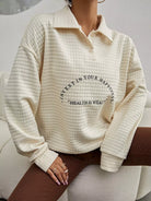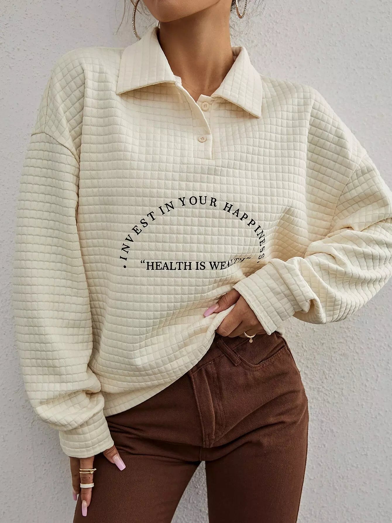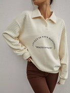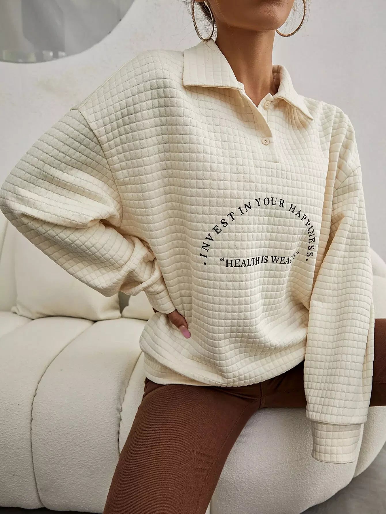 Slogan Graphic Drop Shoulder Textured Sweatshirt