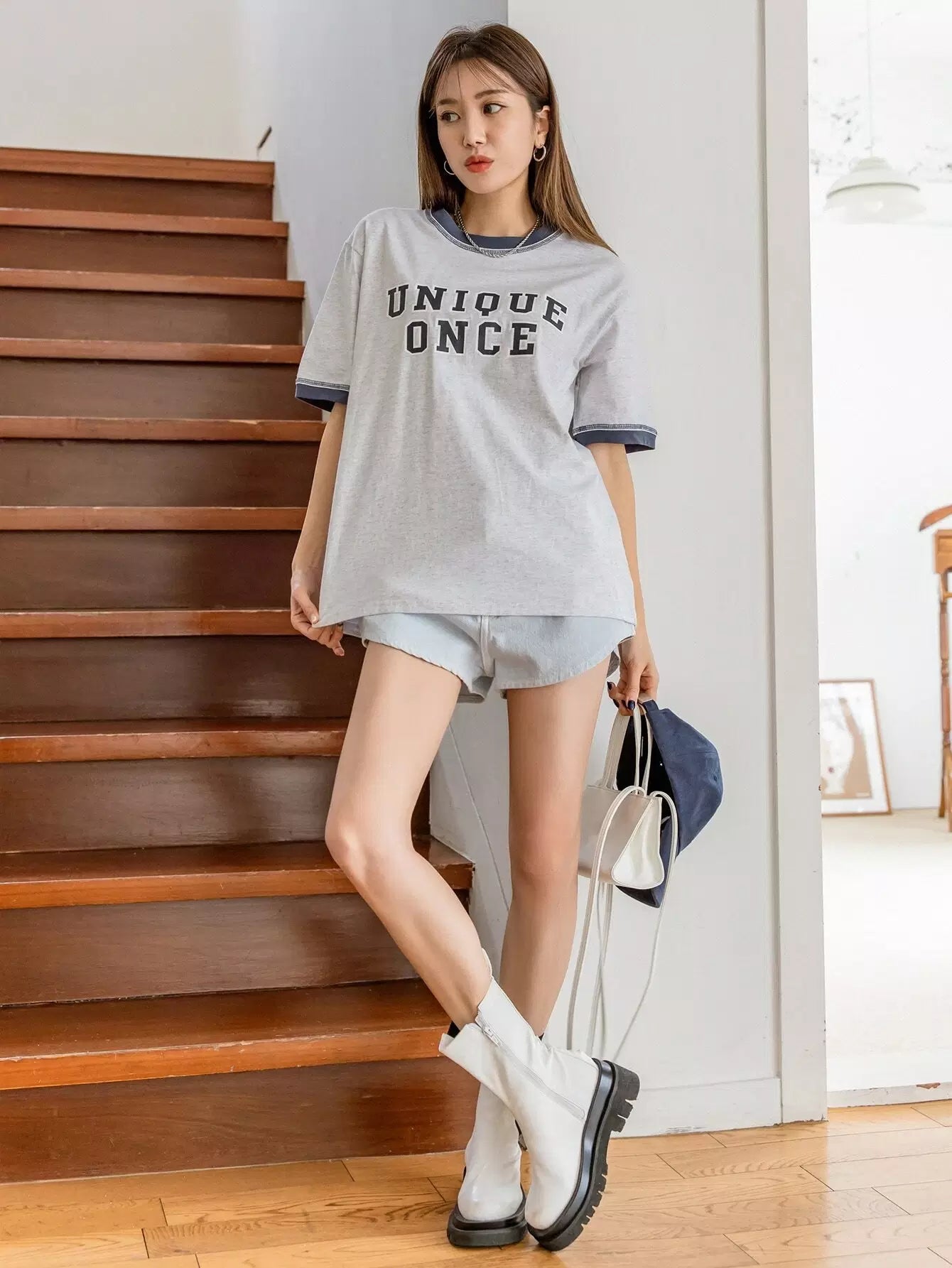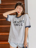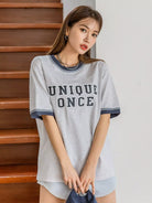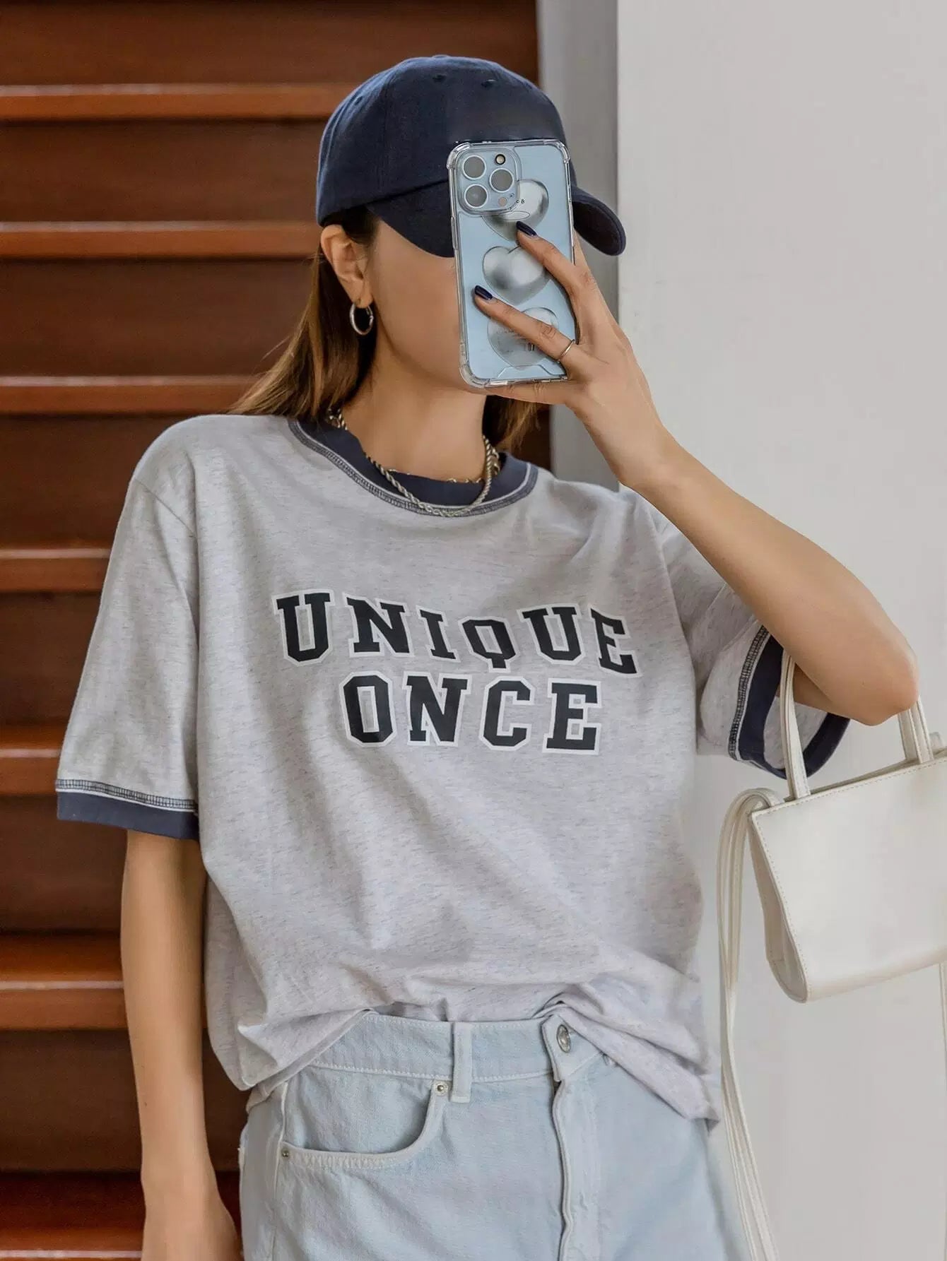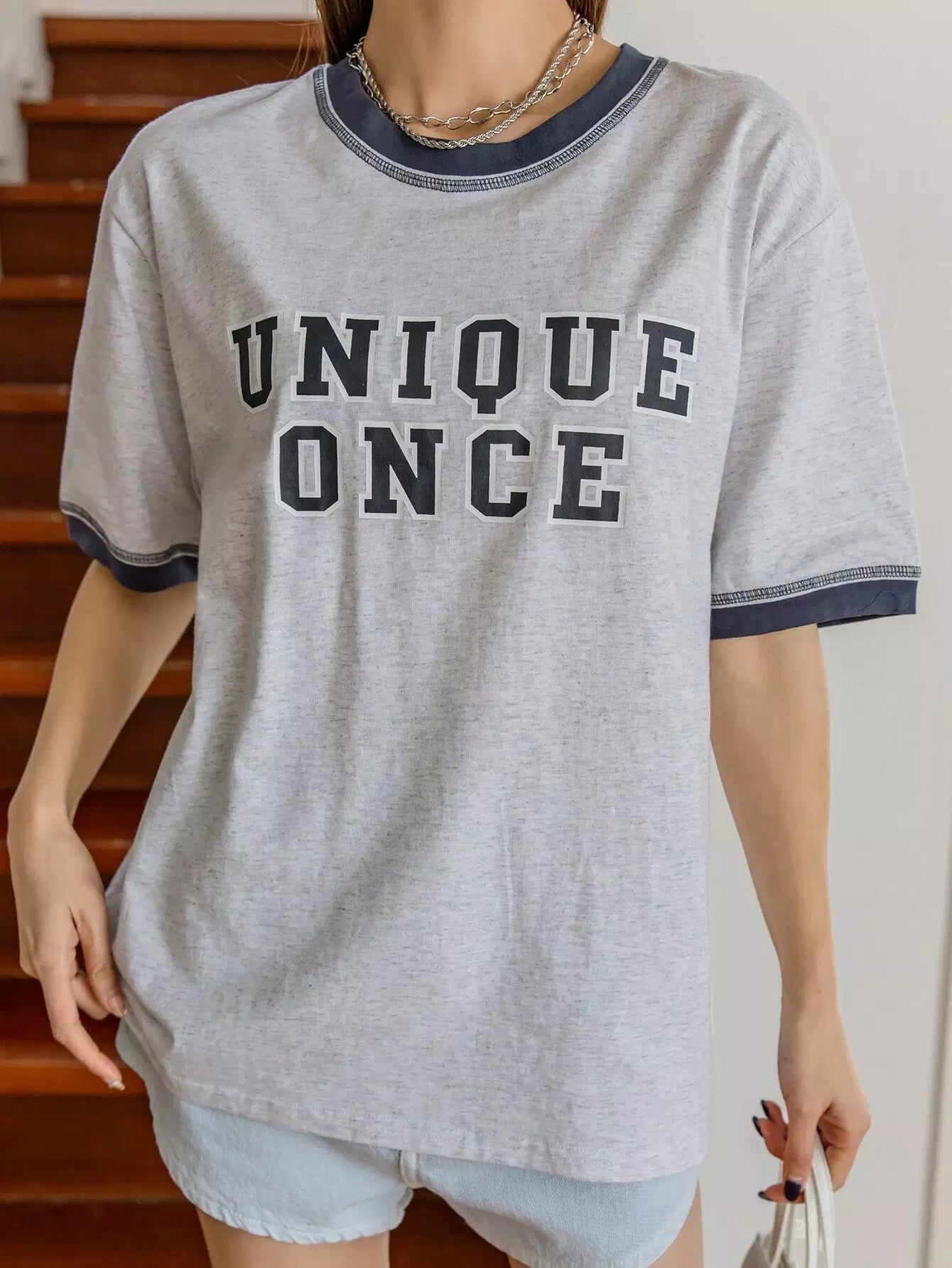 Slogan Graphic Top-stitching Contrast Trim Tee