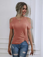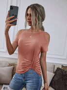 Solid Cold Shoulder Draped Hem Tee