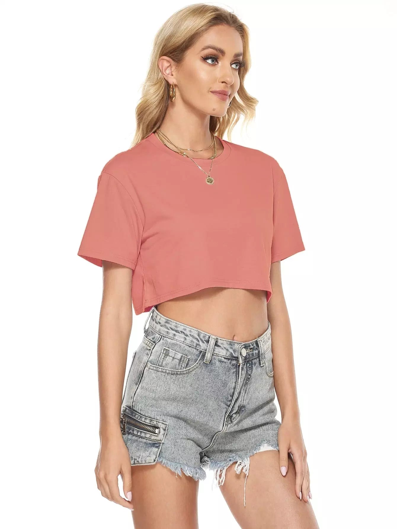 Solid Round Neck Crop Tee