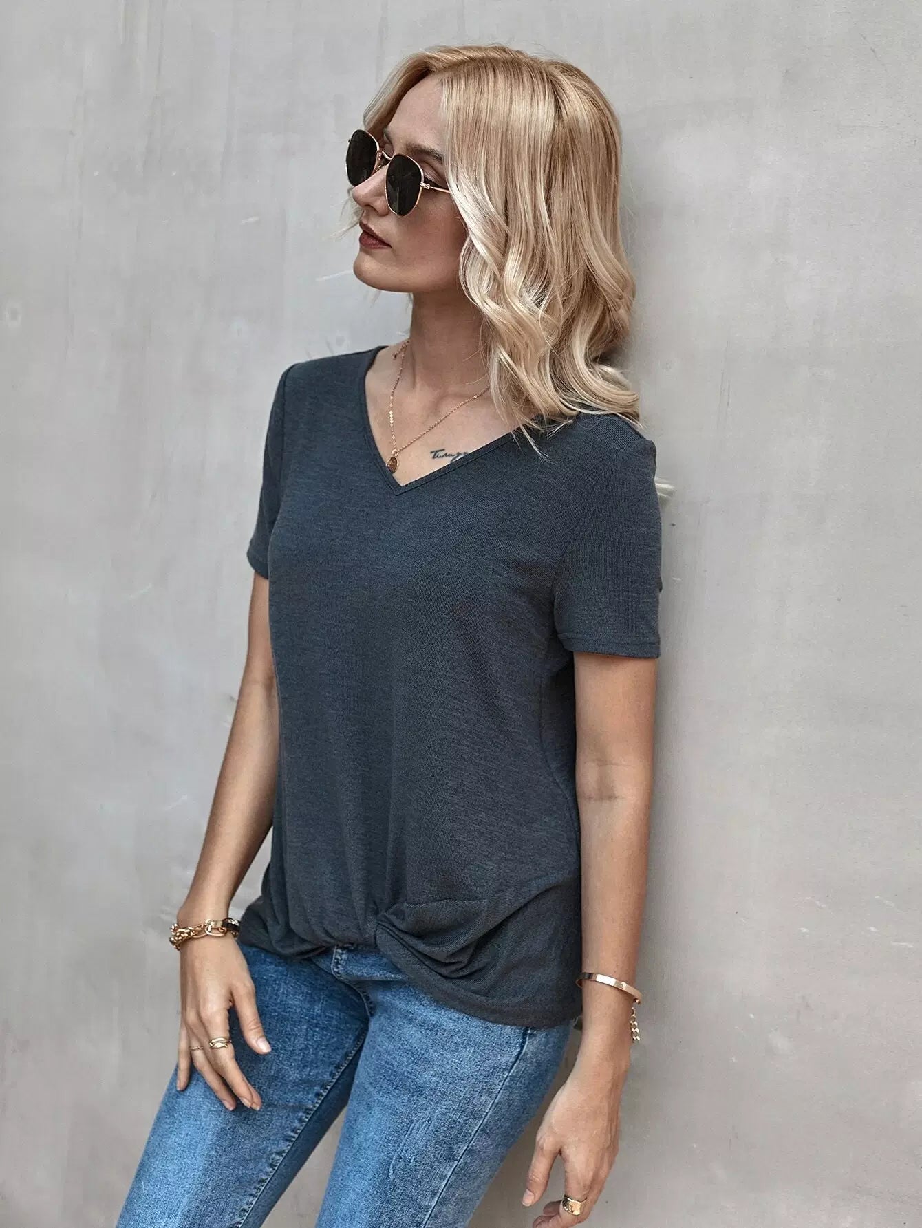 Solid Twist Front Tee