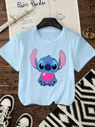 Spring/Summer Women's Graphic T-Shirt, Casual Cute Heart-Shaped Stitch Cutstone Print Girl T-Shirt, Retro