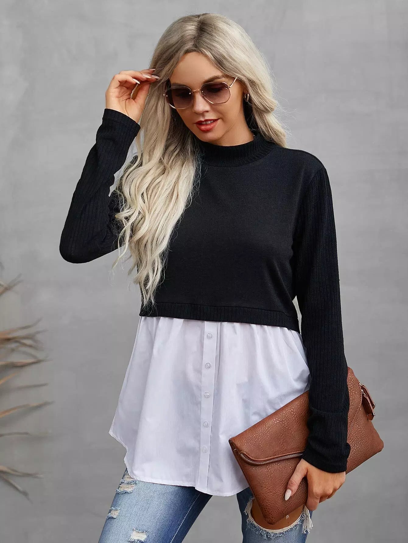 Stand Collar Crop Tee Without Blouse