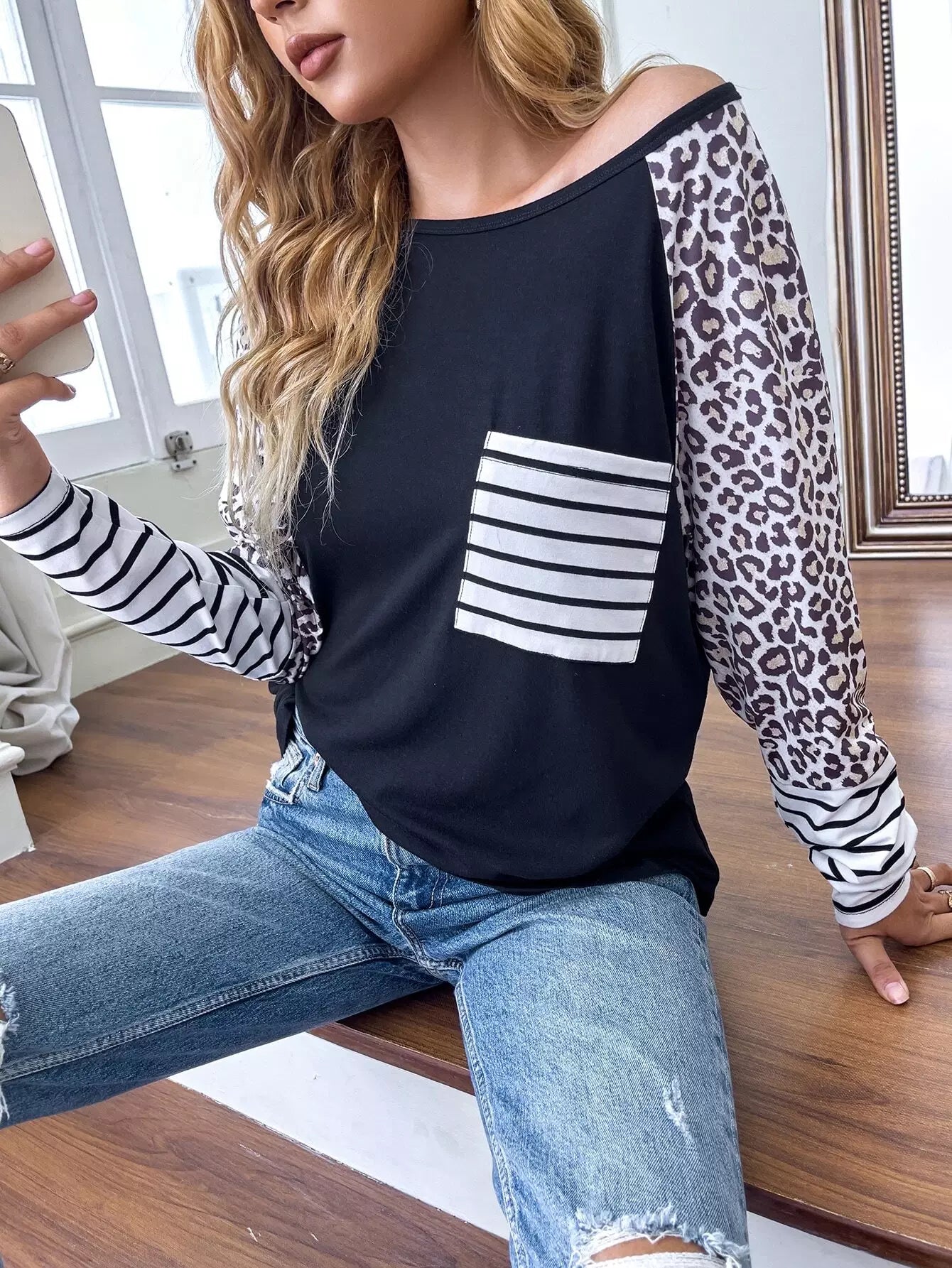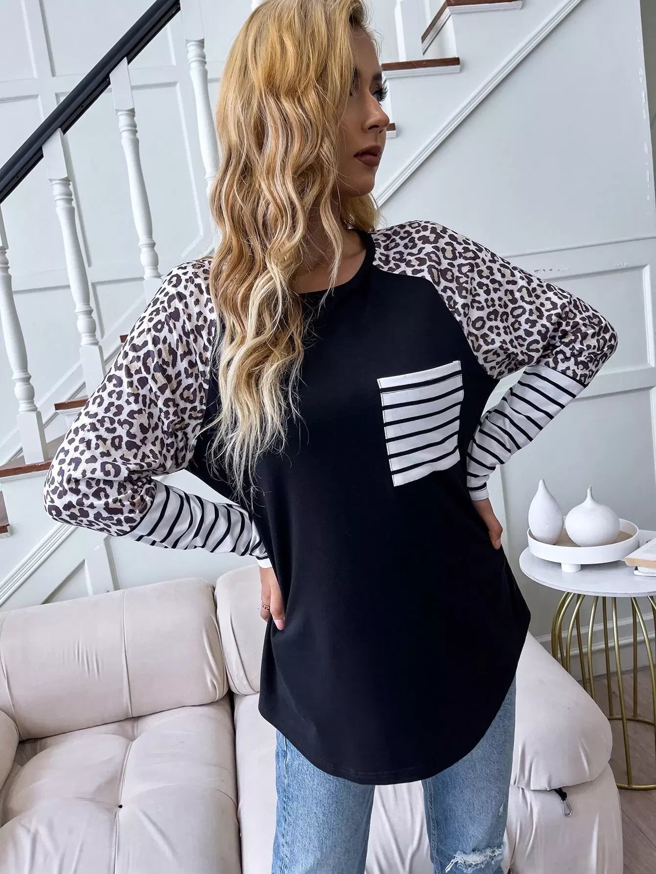 Striped & Leopard Print Tee