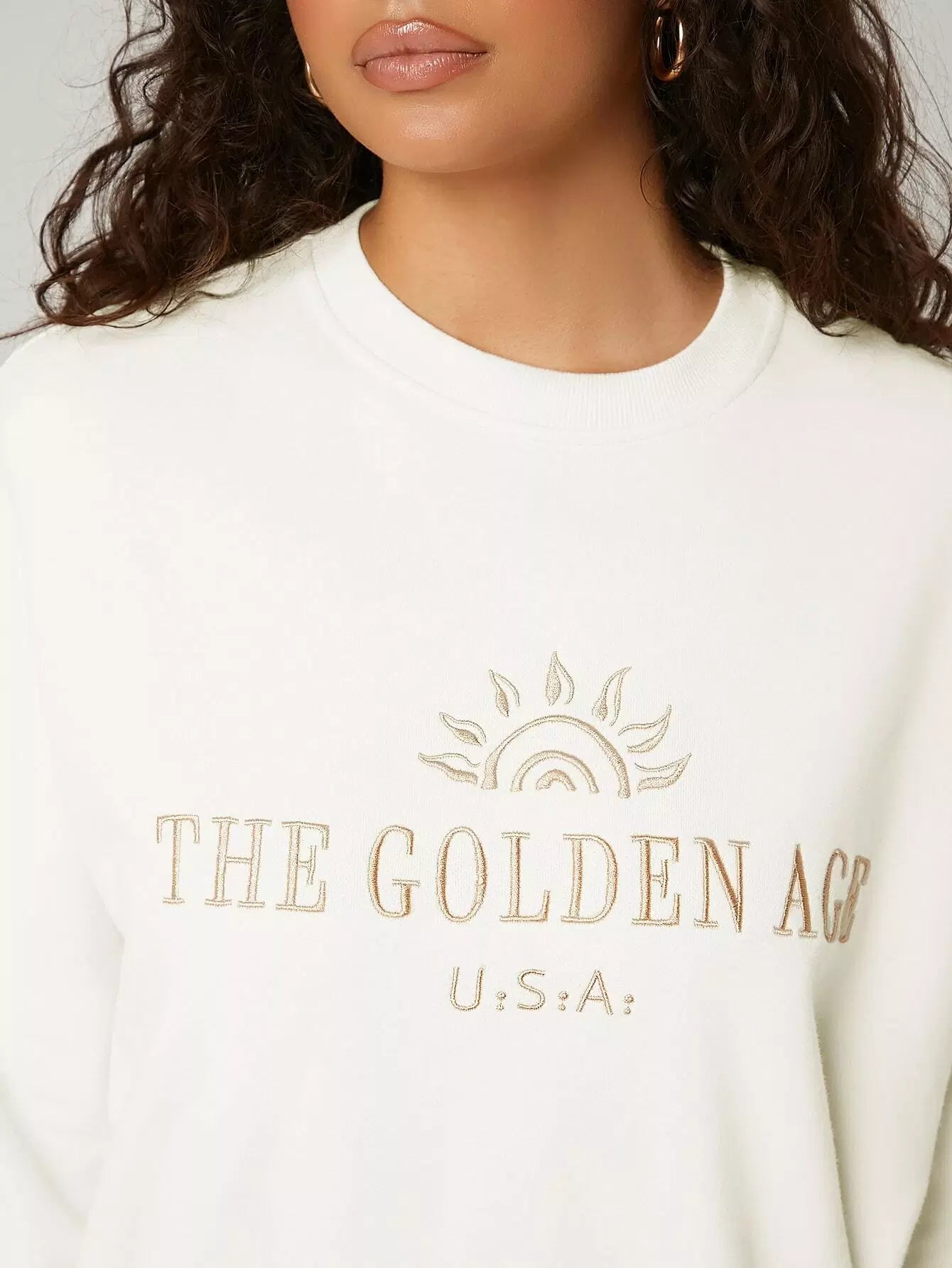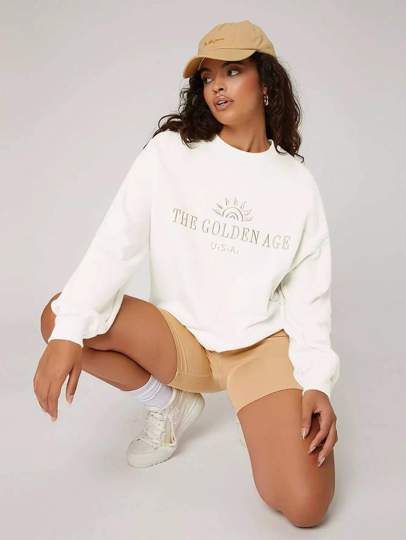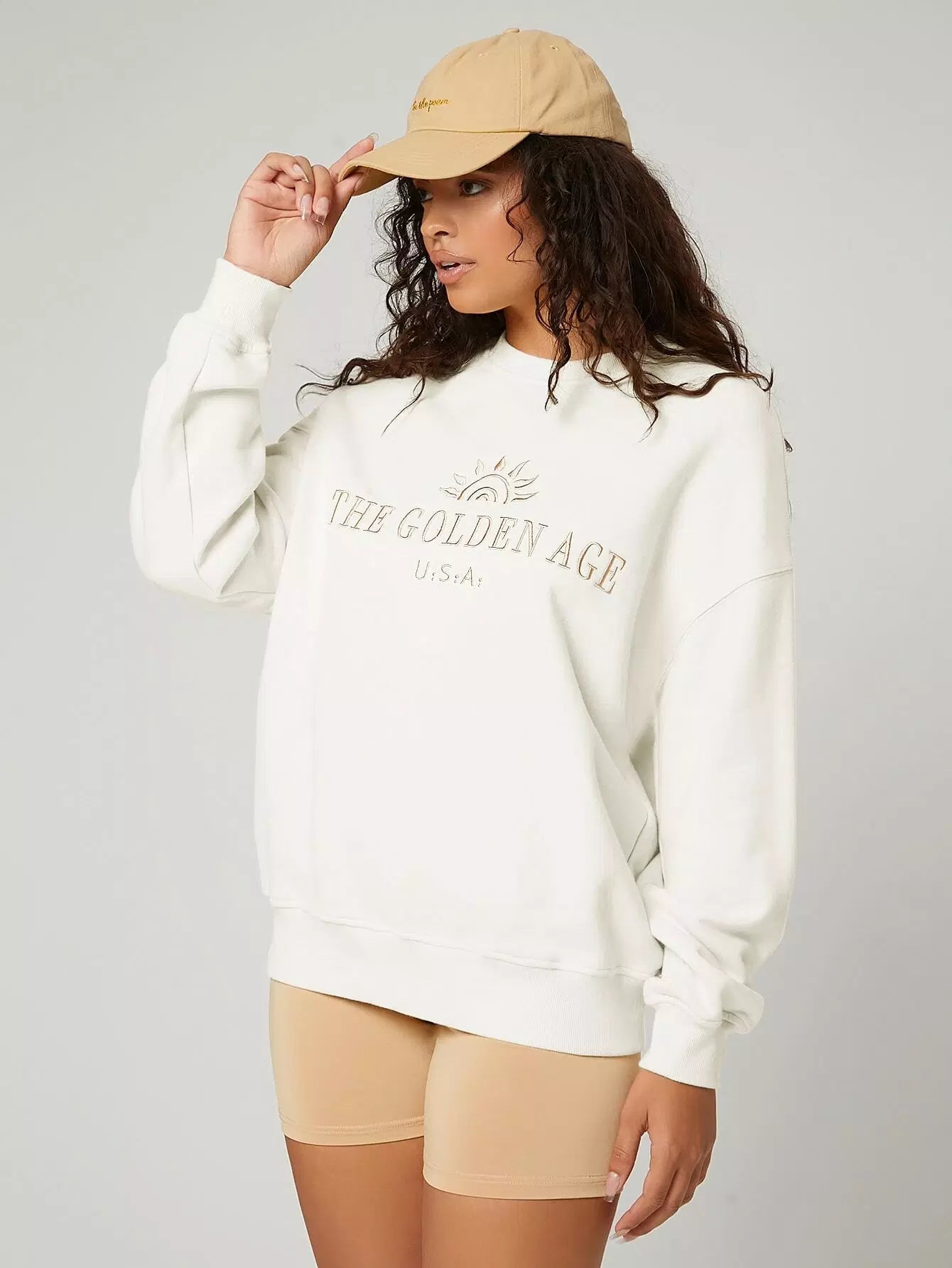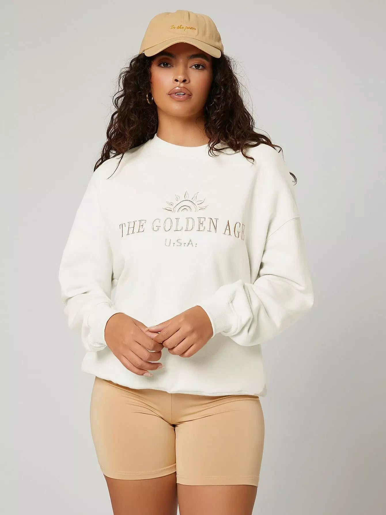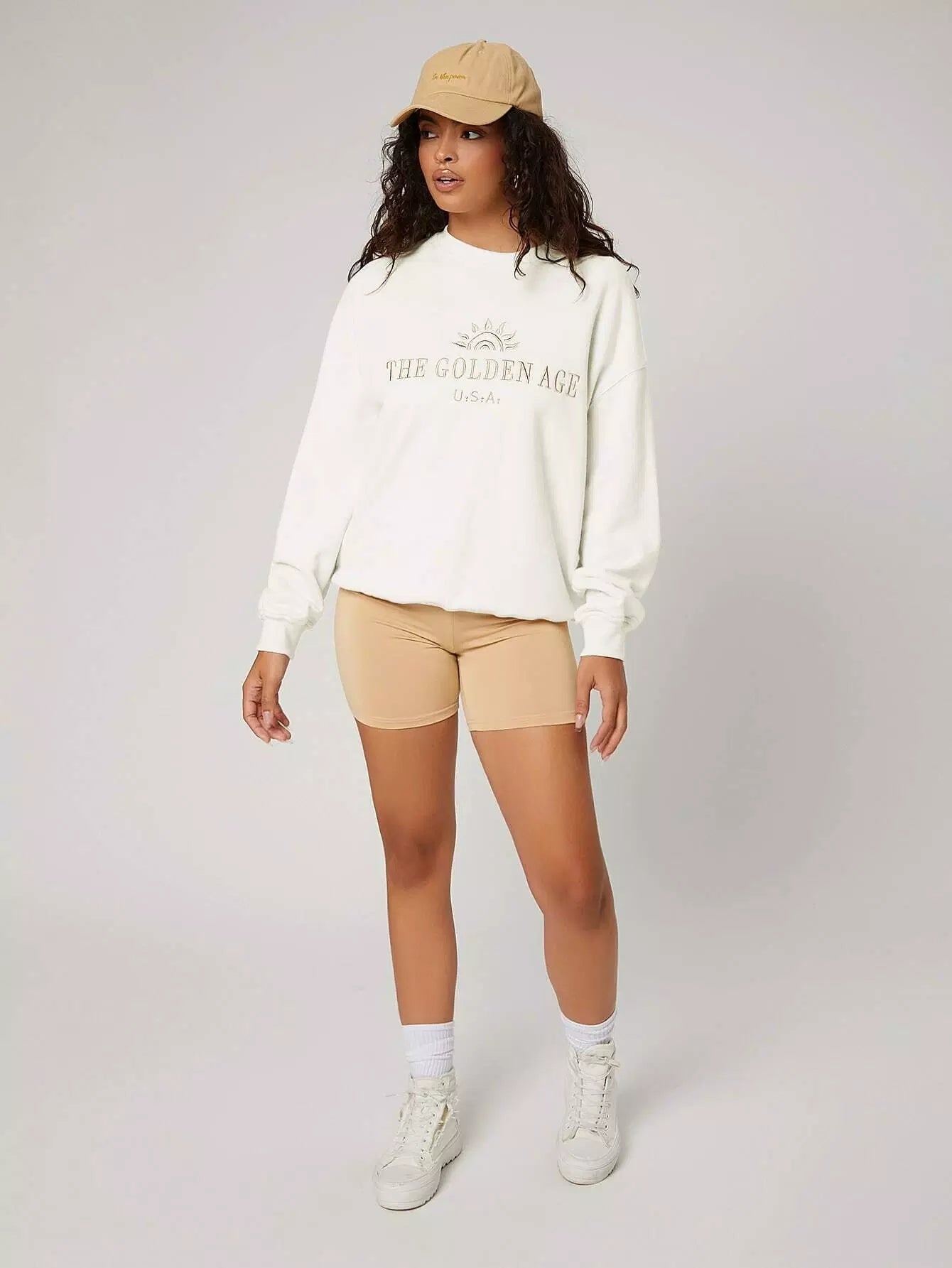 Sun & Letter Embroidery Drop Shoulder Sweatshirt