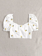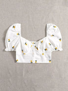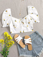 Women - Sweetheart Neck Ruched Bust Floral Embroidery Blouse