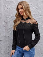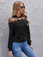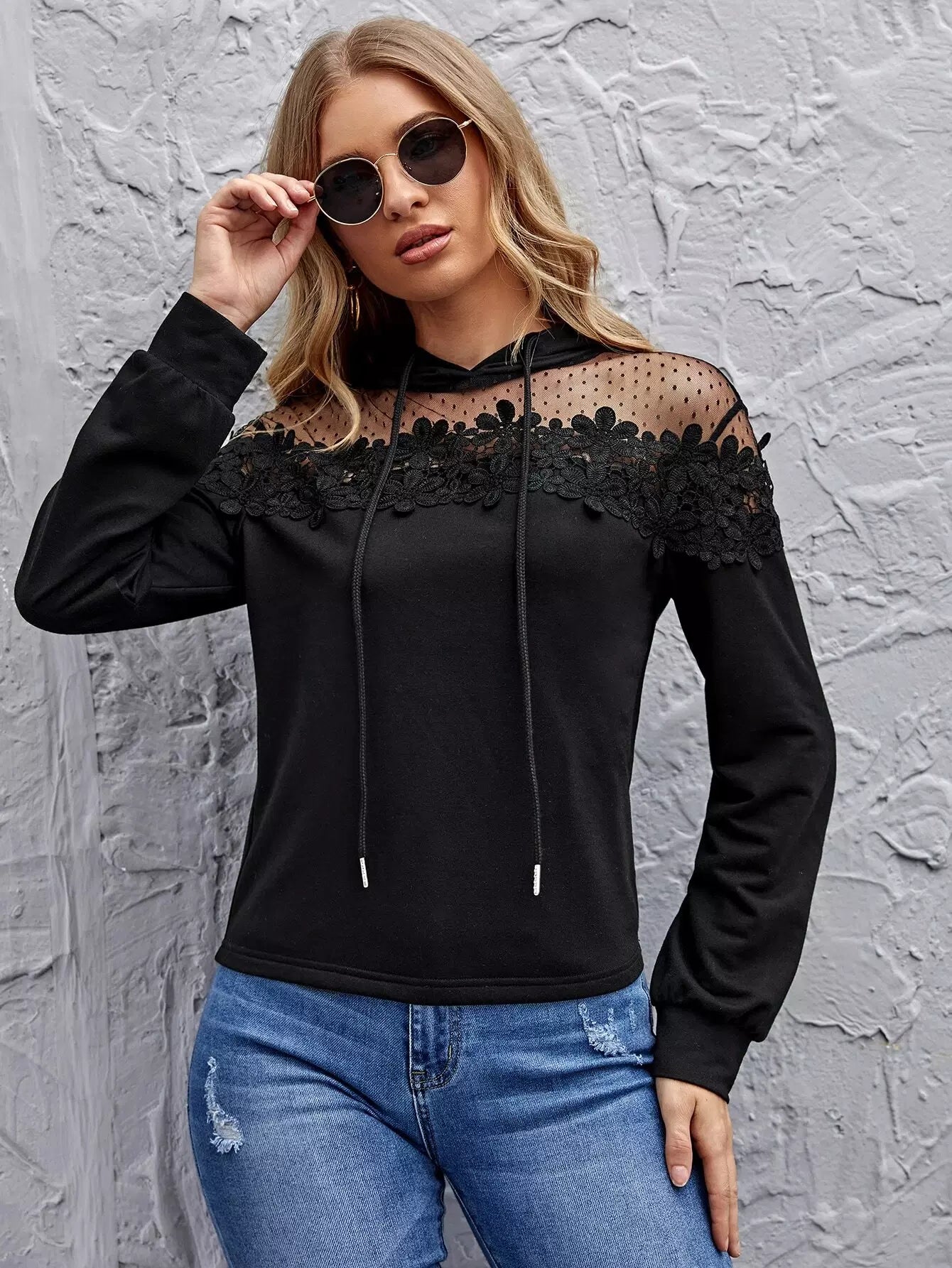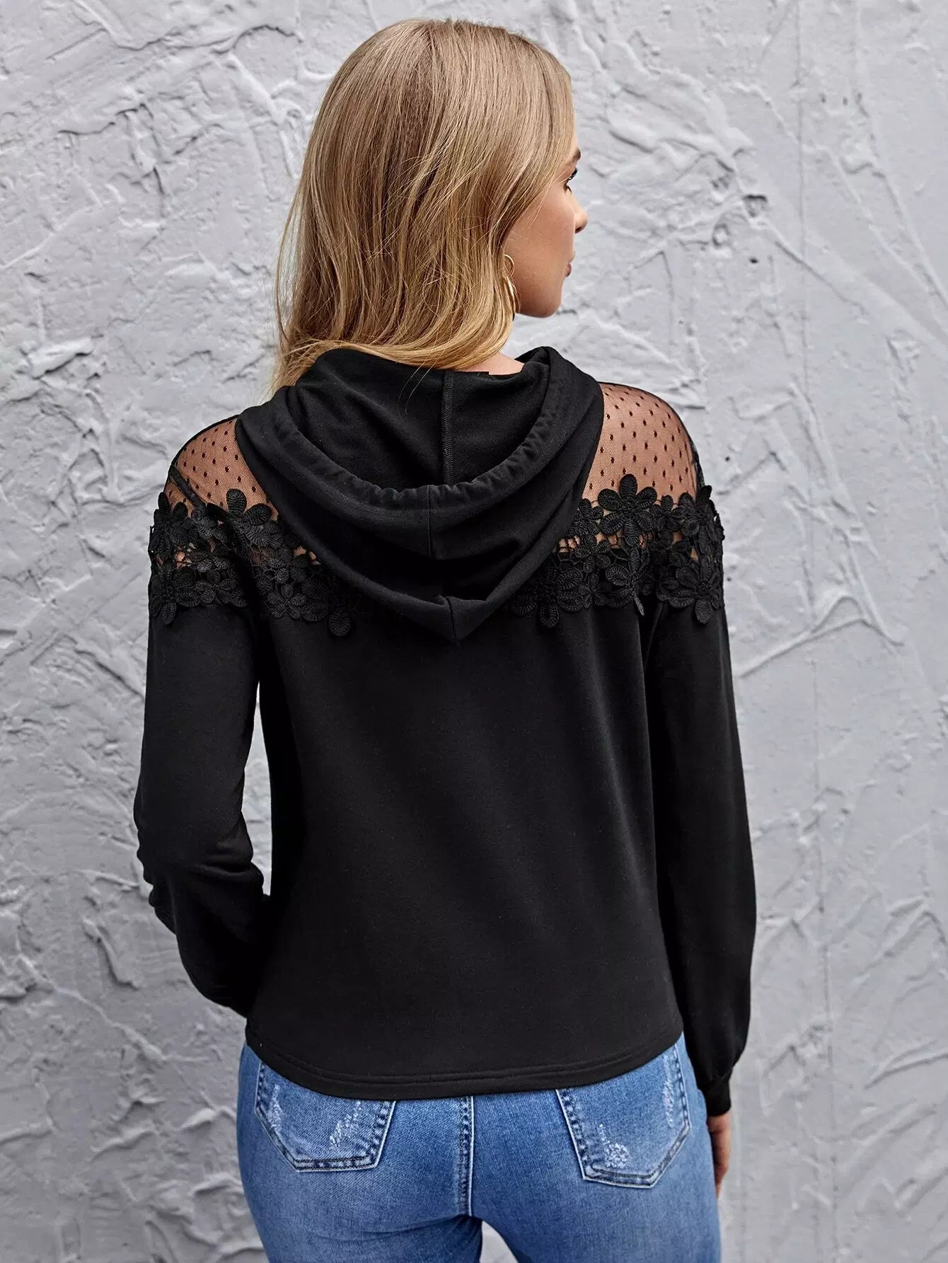 Swiss Dot Mesh Shoulder Lace Appliques Front Hoodie
