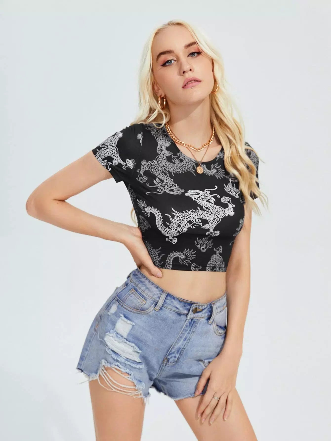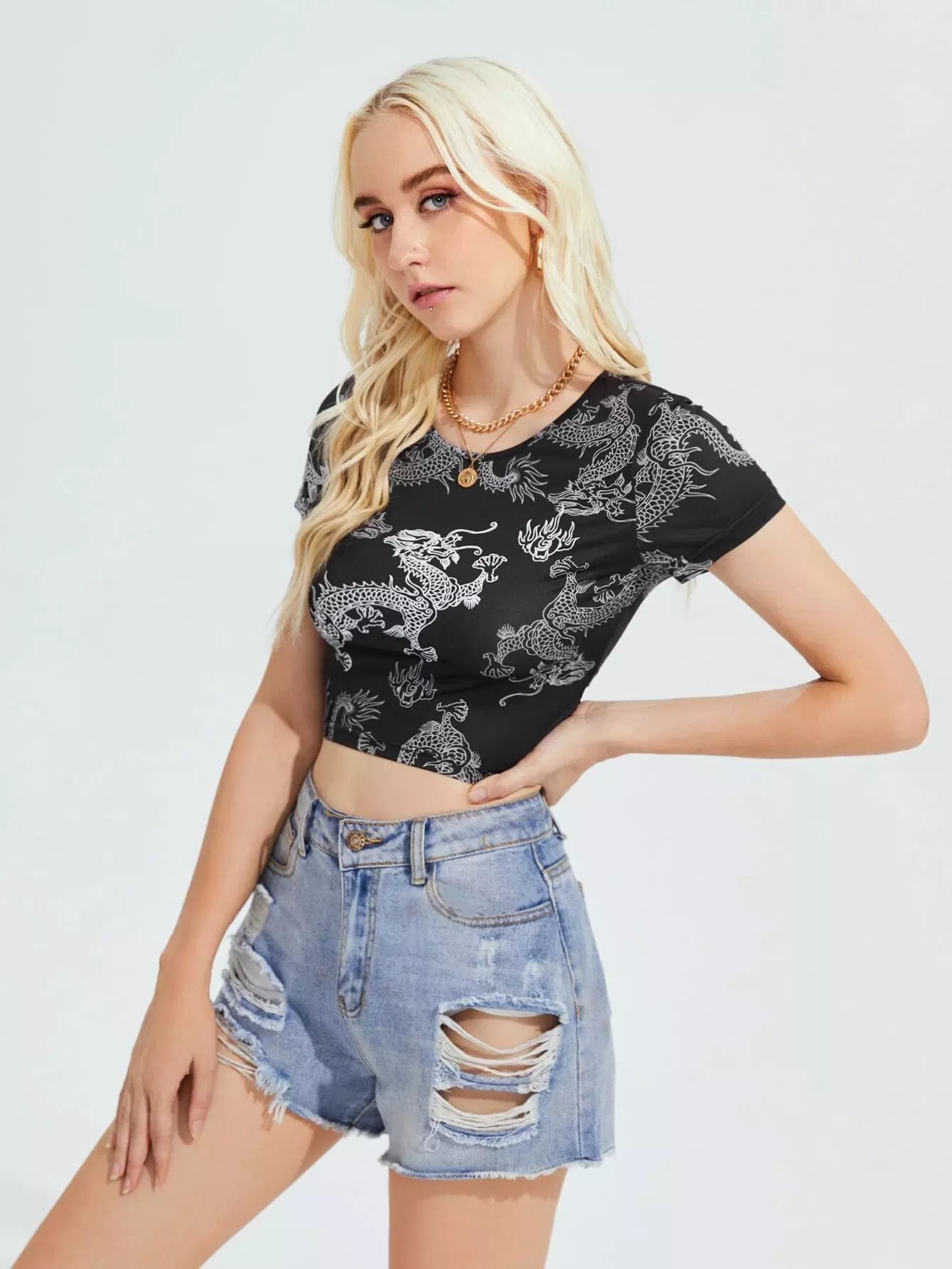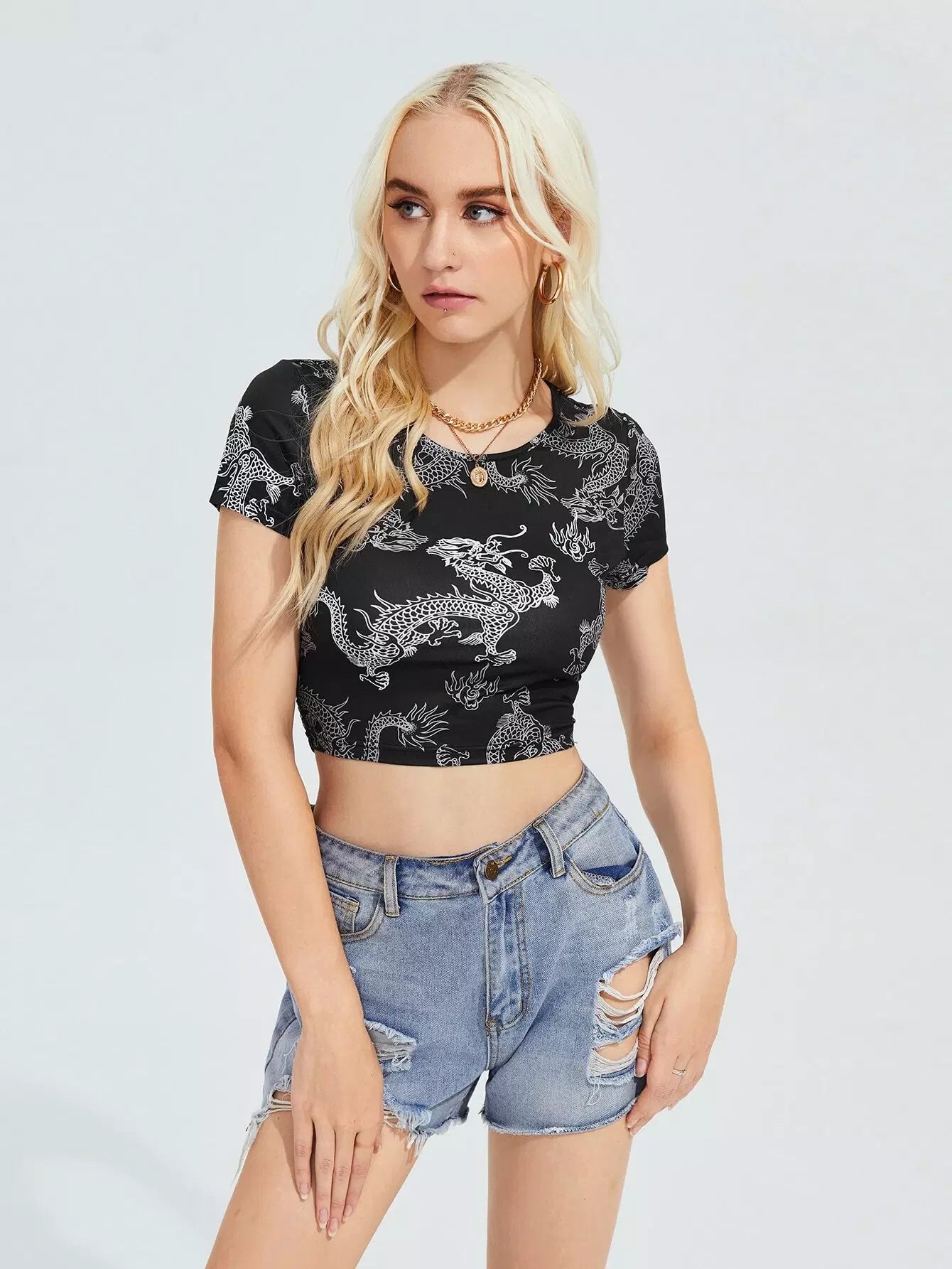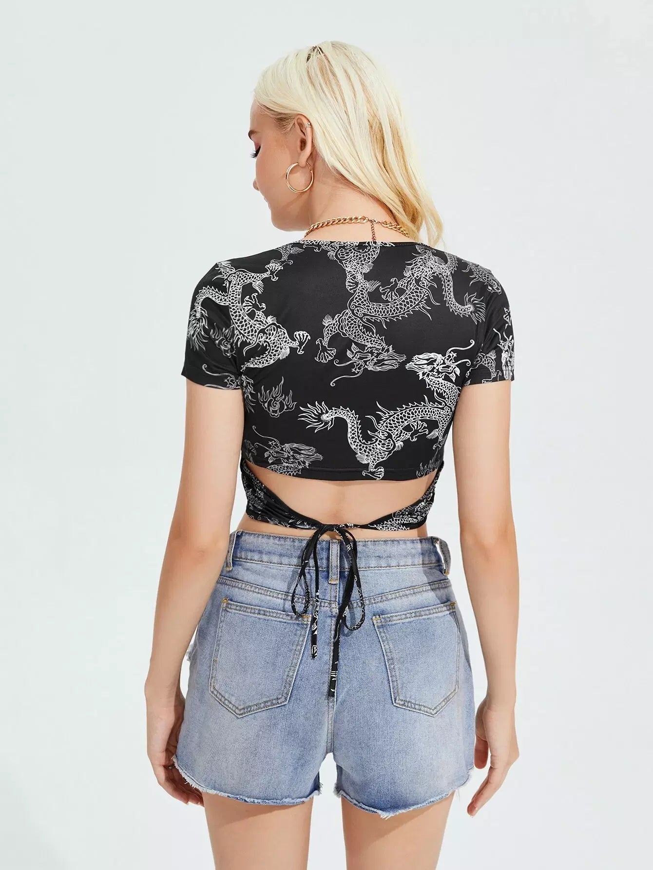 Tie Back Chinese Dragon Print Tee