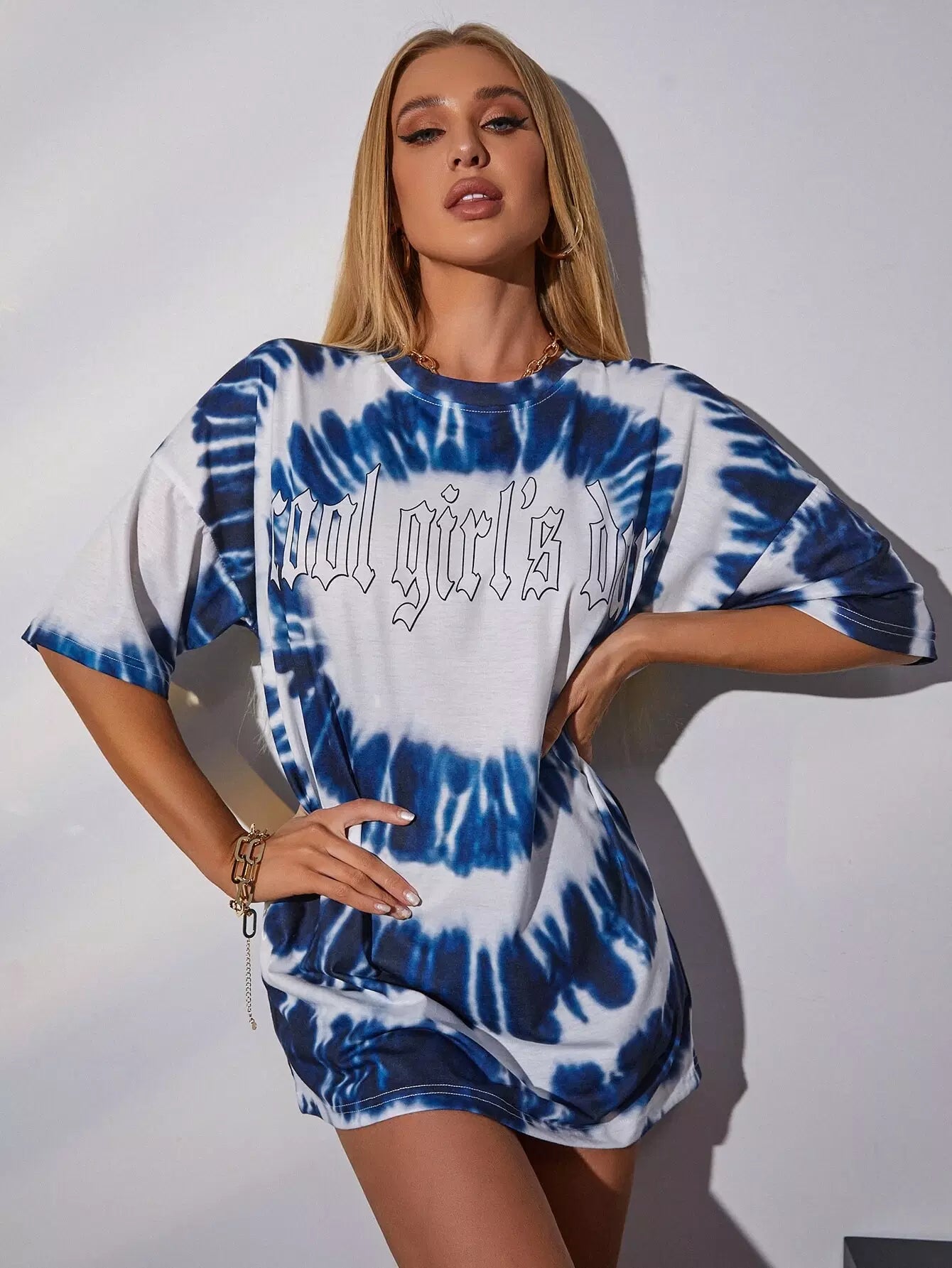 Tie Dye Slogan Graphic Drop Shoulder Tee