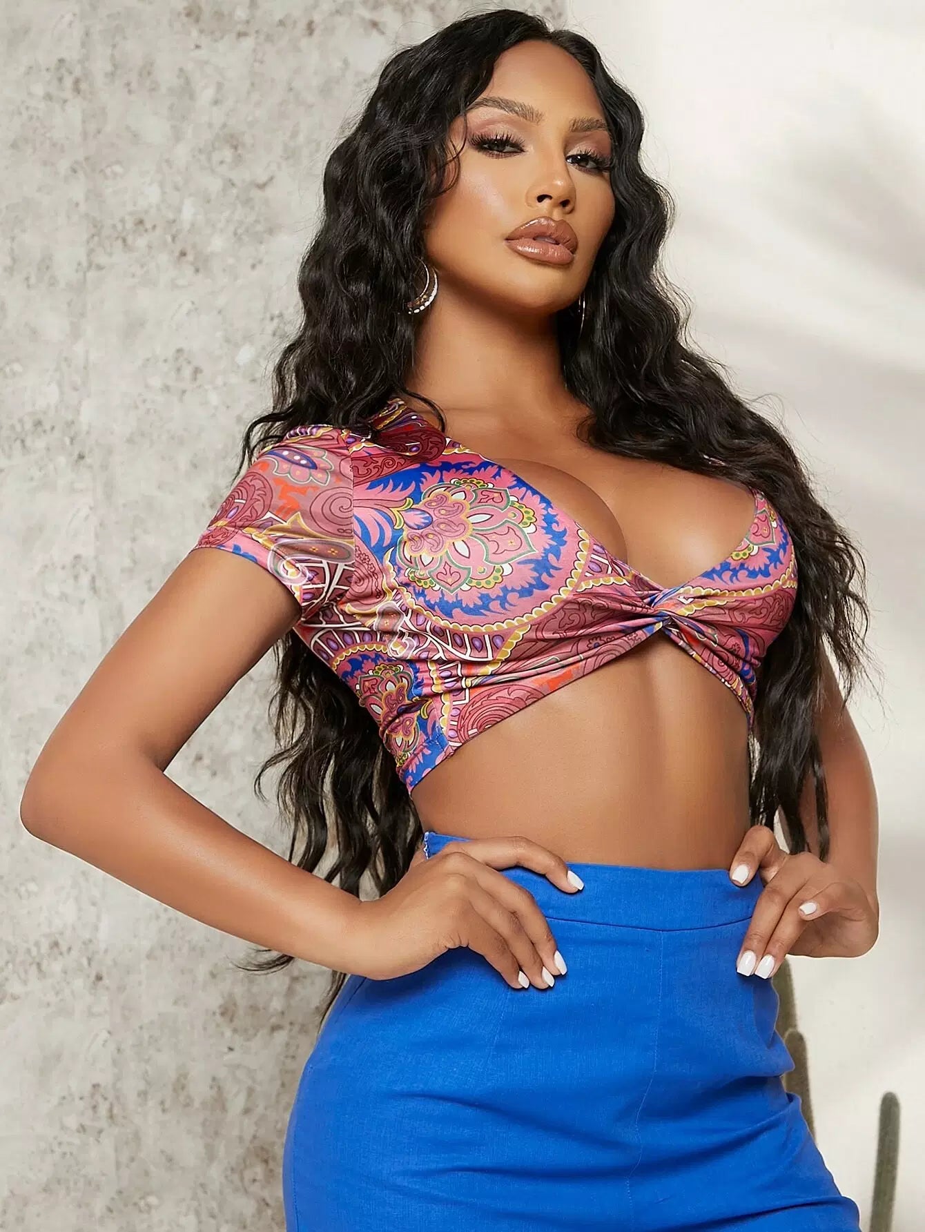 Twist Front Paisley Print Crop Top