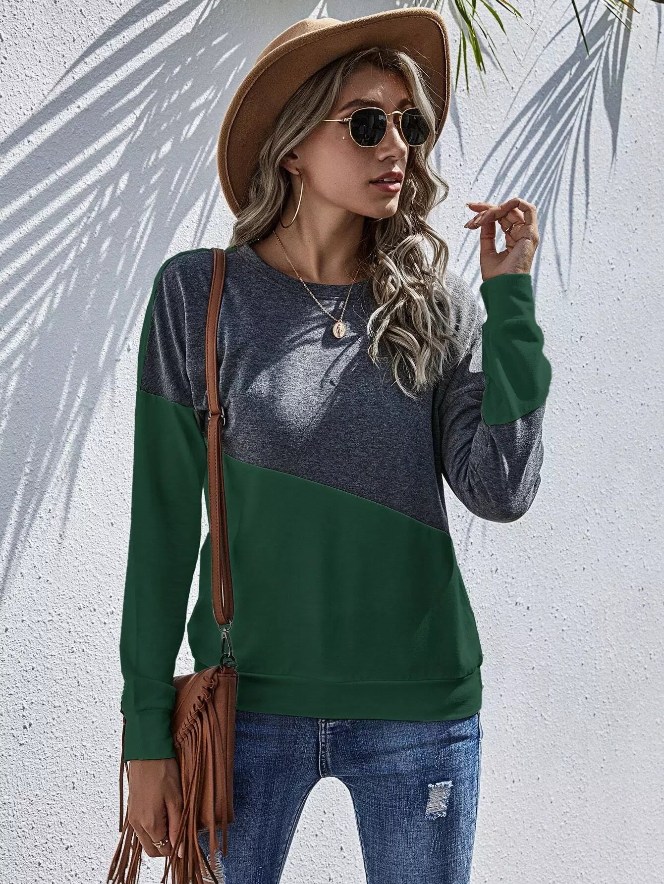 Two Tone Drop Shoulder Sweatshirt