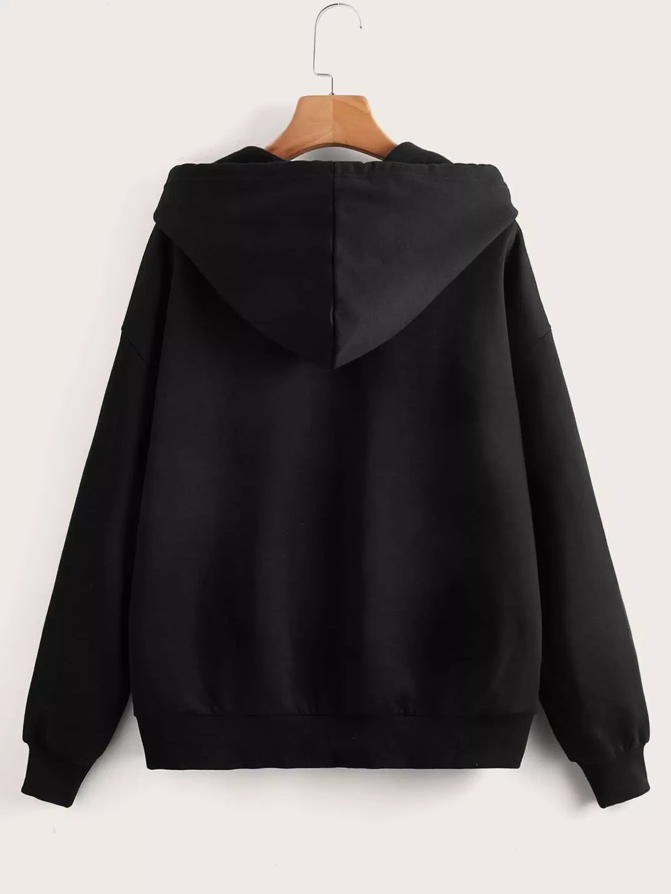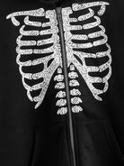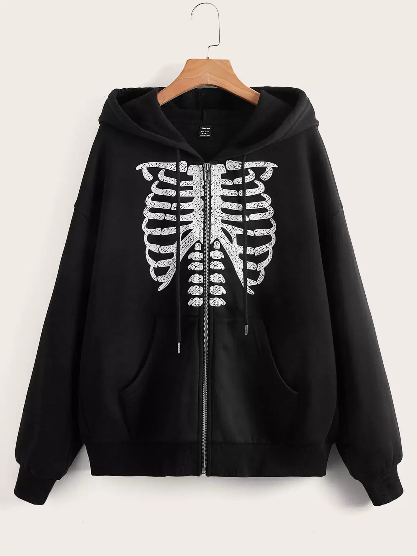 Women Skeleton Print Zipper Up Drawstring Hooded Sweatshirt
