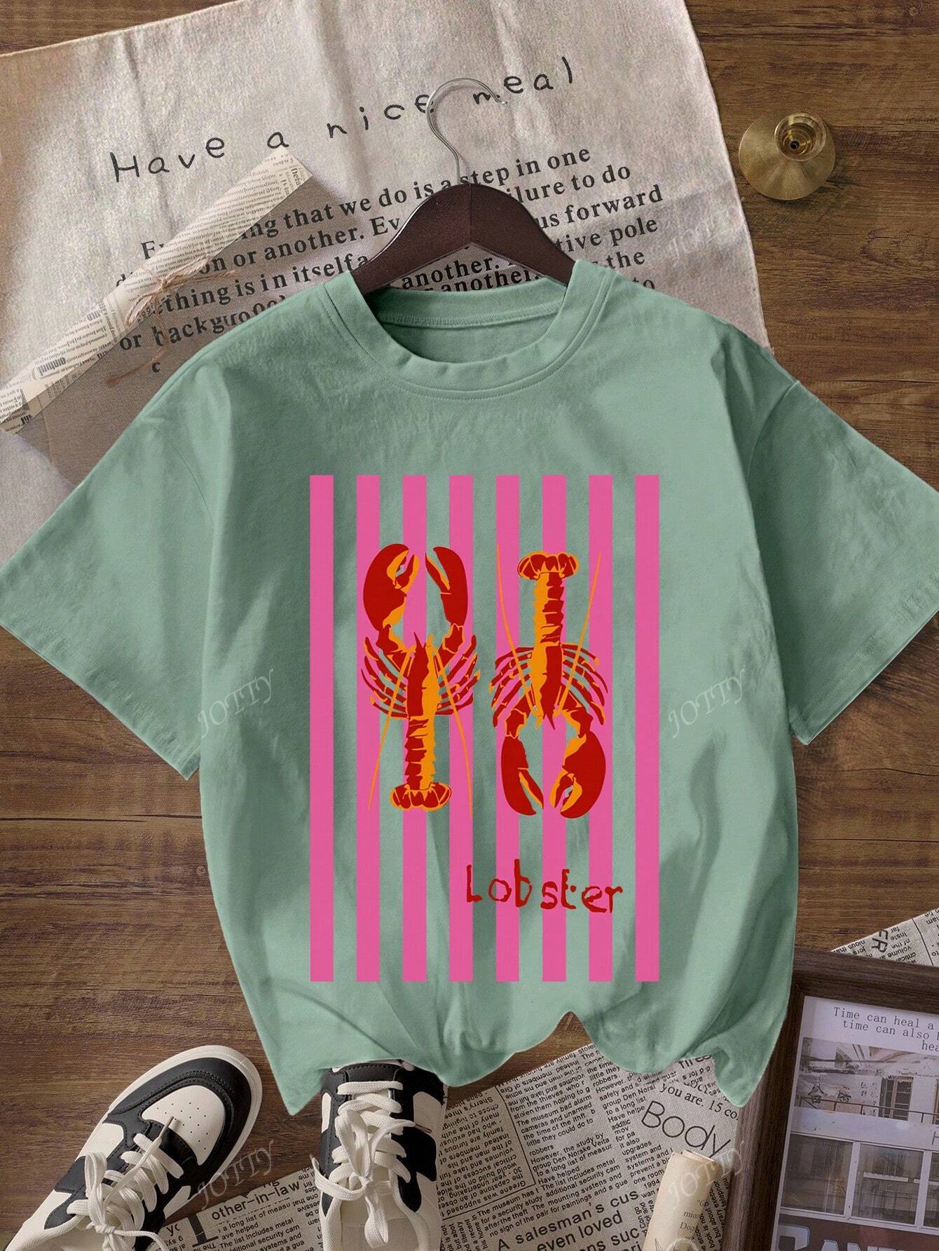 Women's Casual Lobster Pattern Printed Round Neck Short Sleeve T-Shirt, Summer