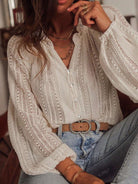 Women's Single-Breasted V-Neck Long Sleeve Blouse, Loose & Versatile, Elegant & Fashionable