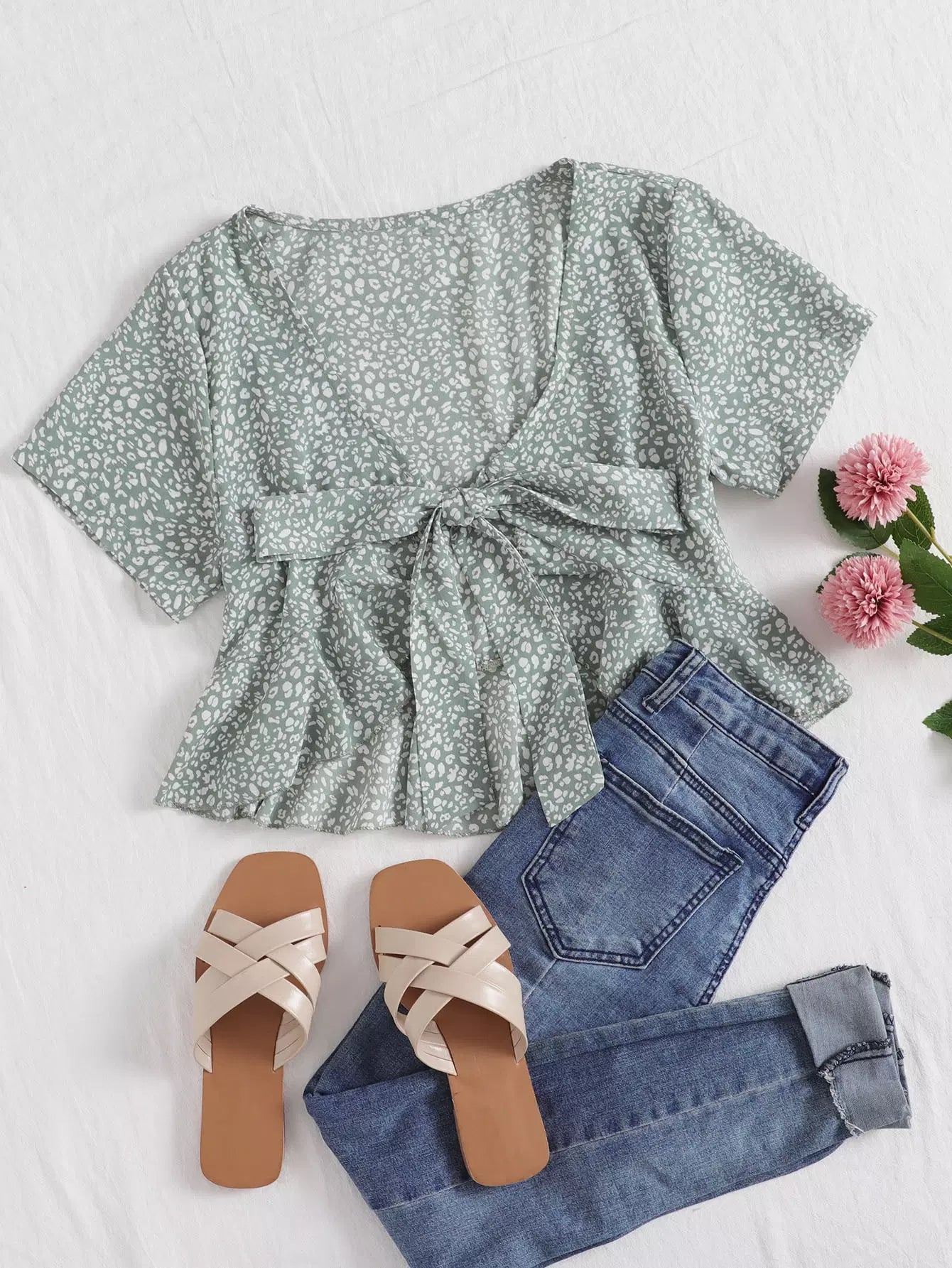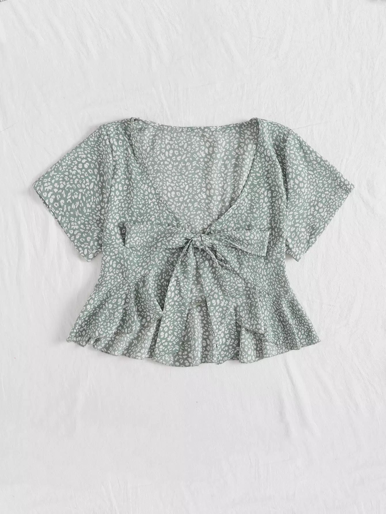 All Over Print Tie Front Top