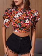 Allover Floral Tie Backless Crop Blouse