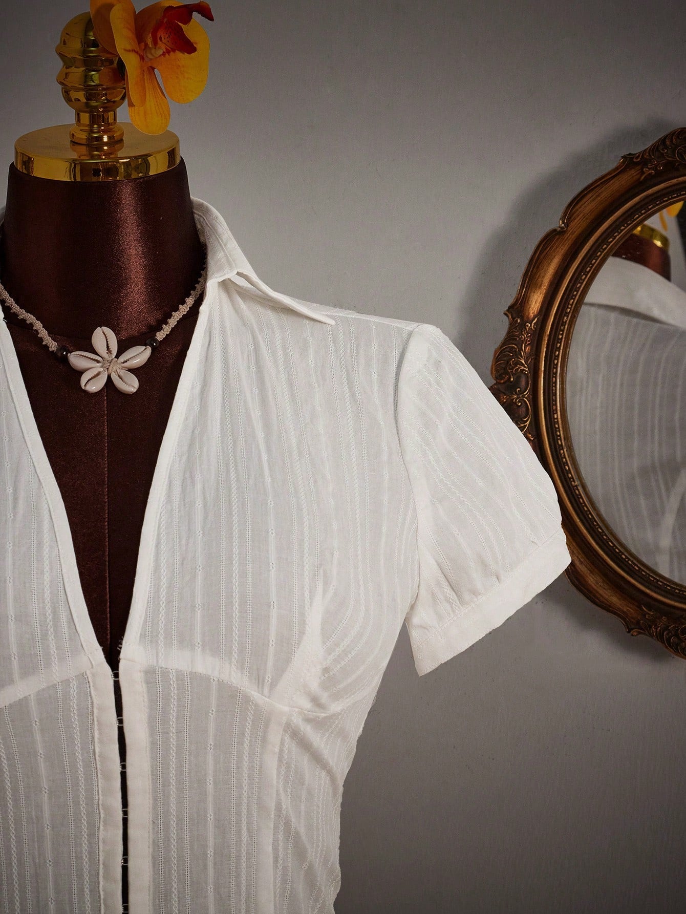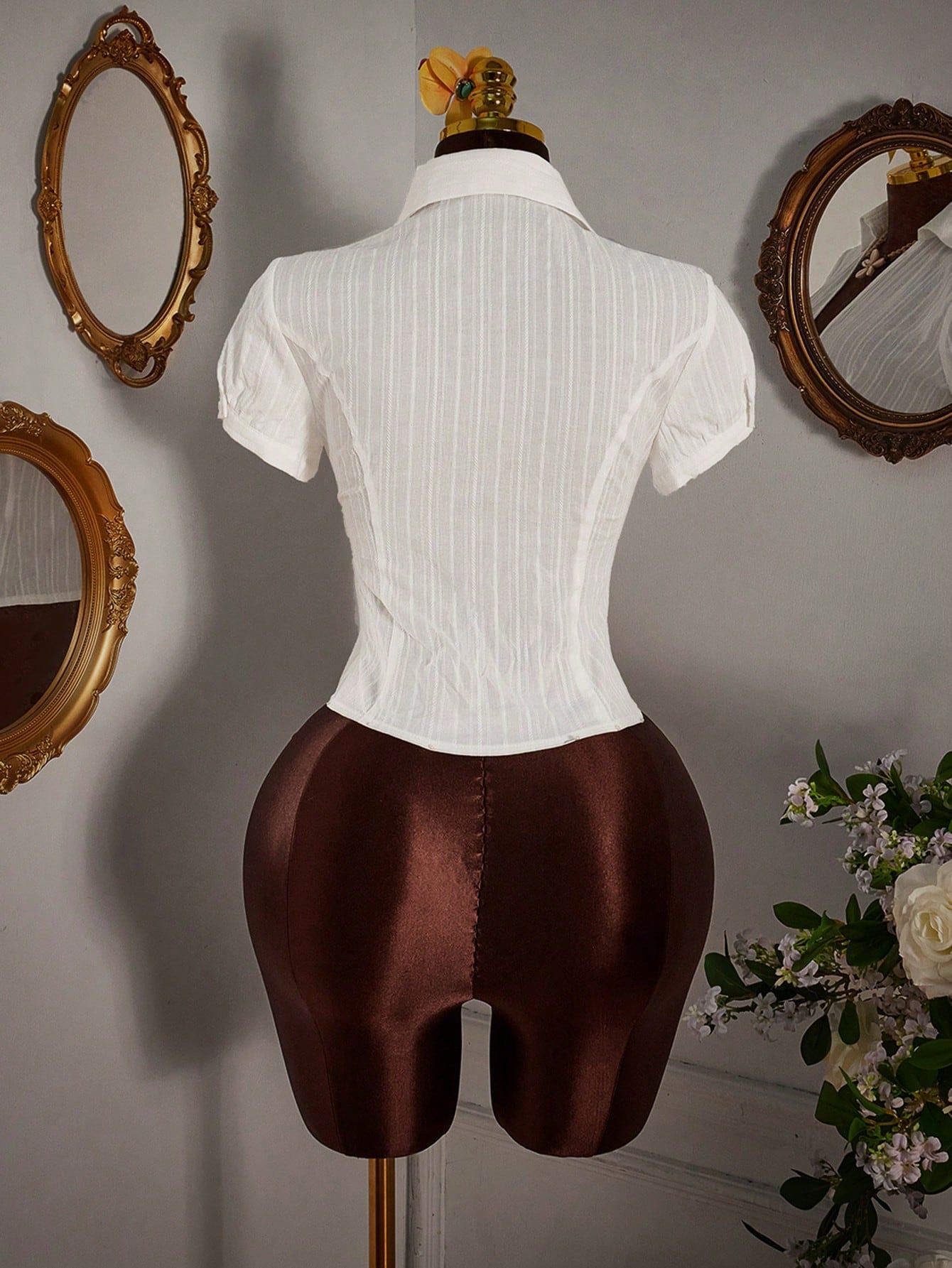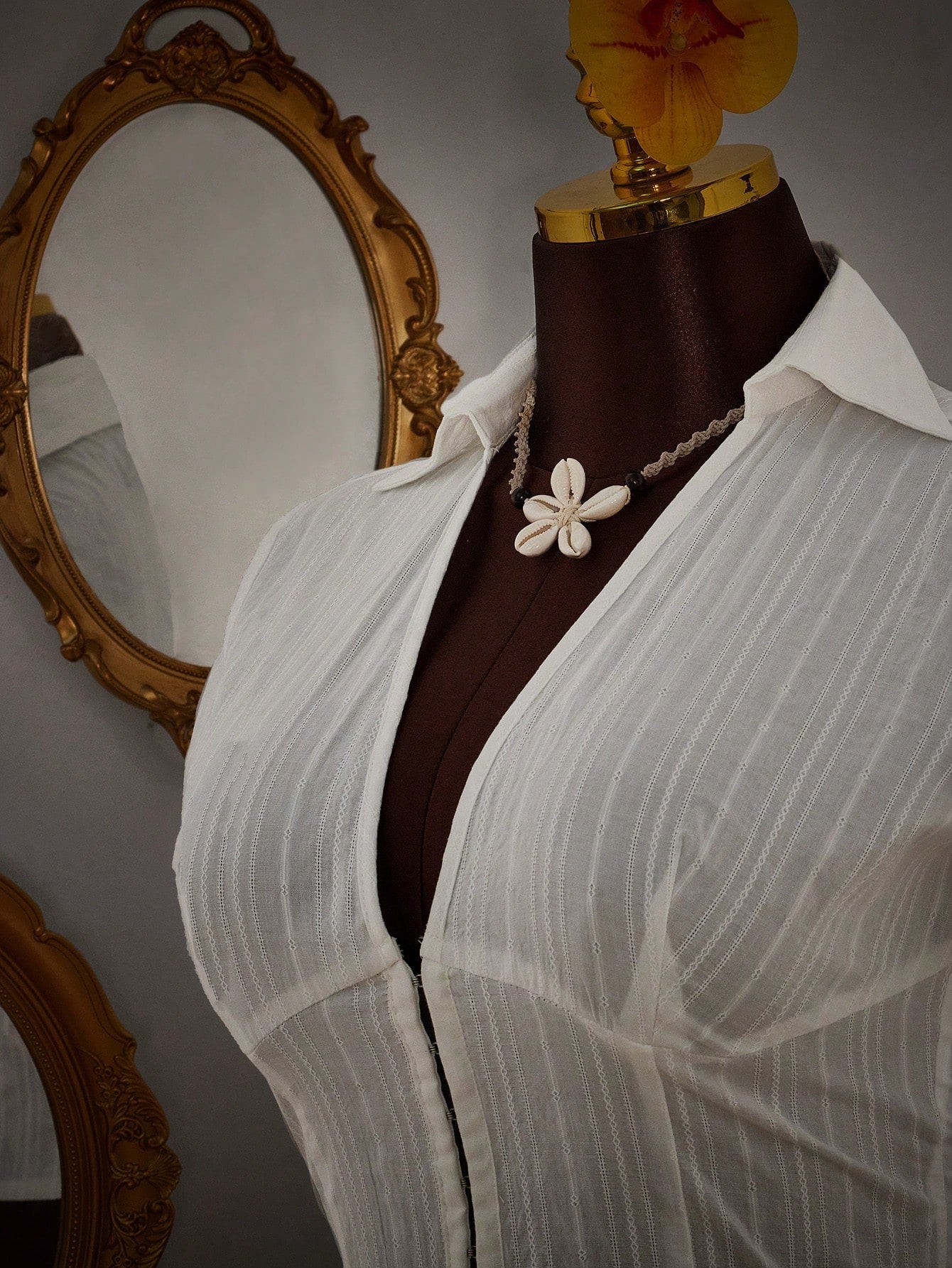 Amplova 1pc Women's Slim Fit V-Neck Polo Collar Metal Button Shirt