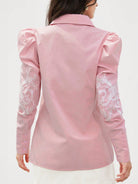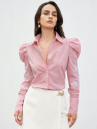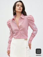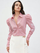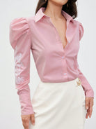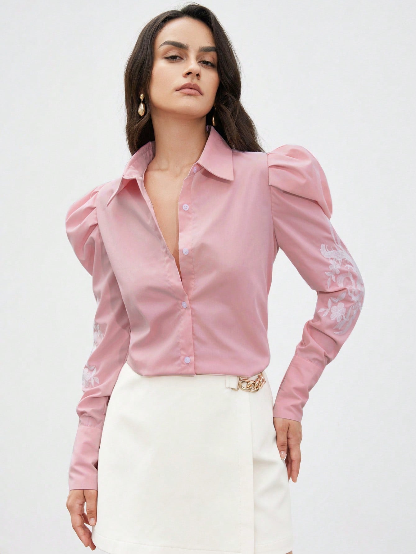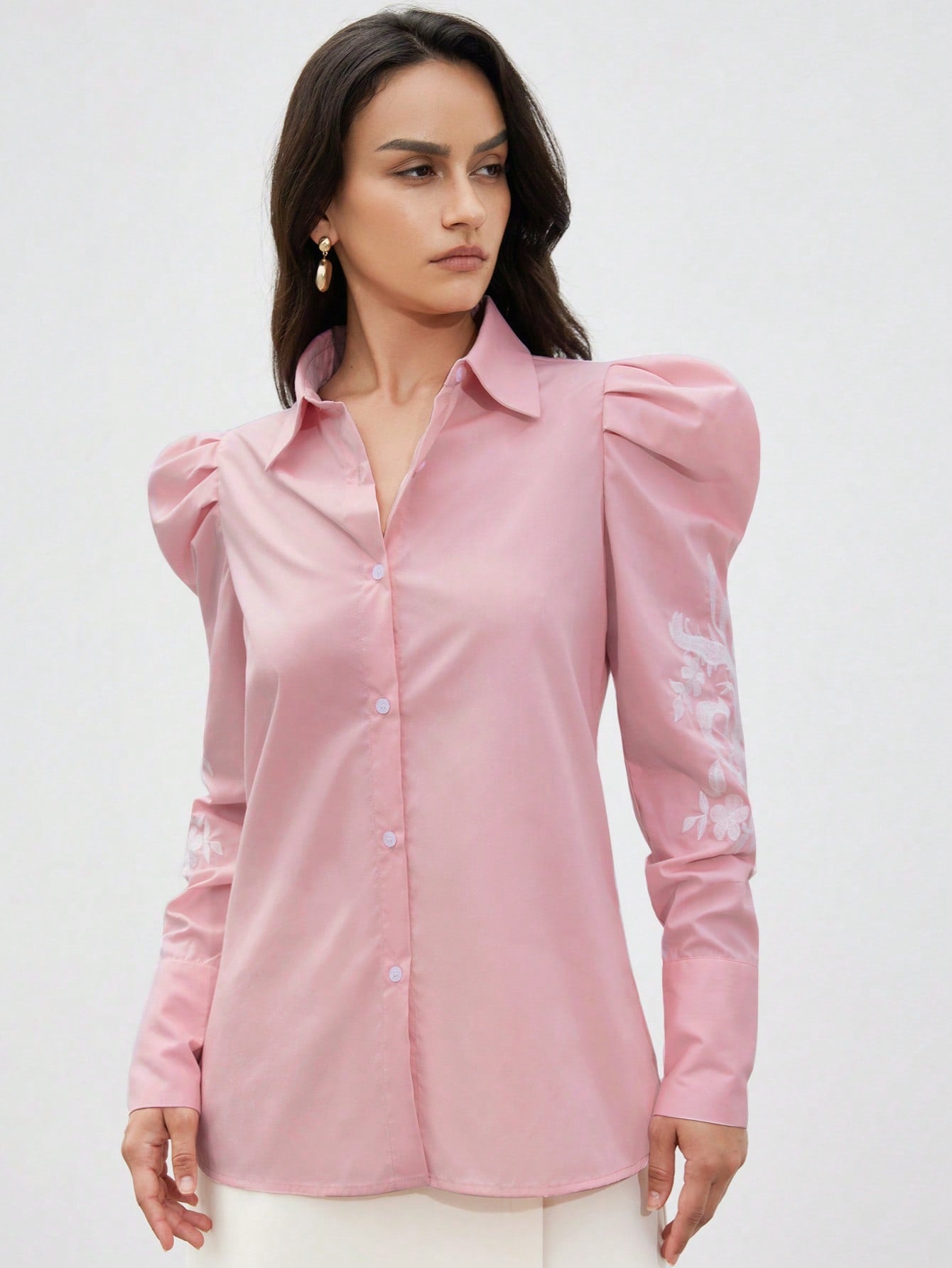 Aveloria Modichic Ladies' Floral Embroidery Puff Sleeve Buttoned Shirt With Long Sleeves Elegant Business