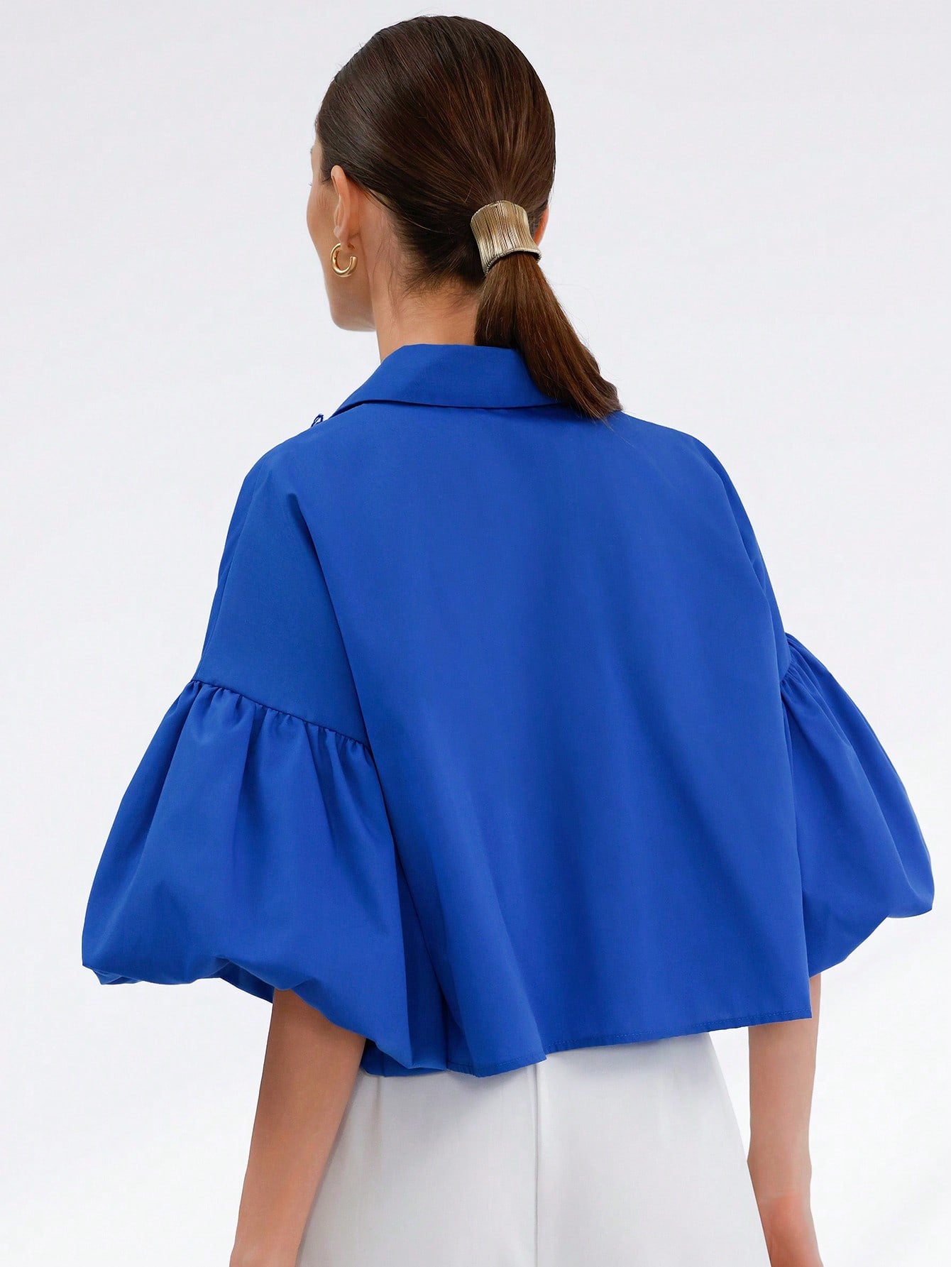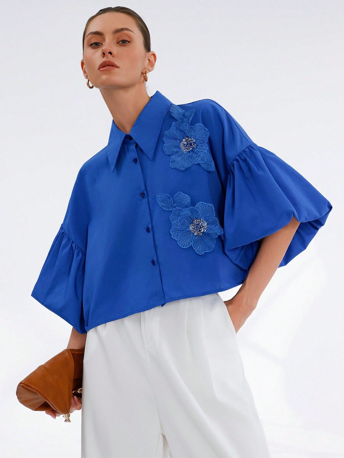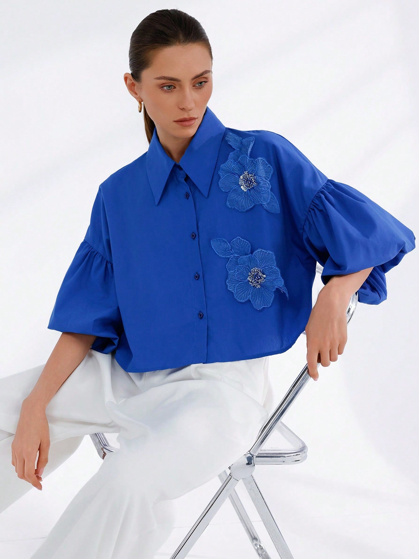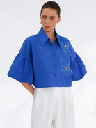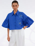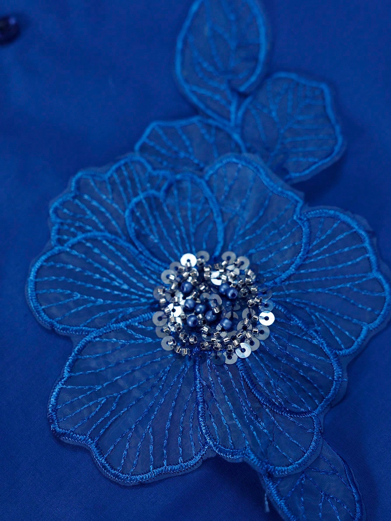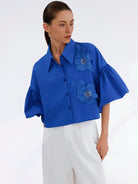 Aveloria Modichic Navy Blue High-End Design Elegant Versatile Lantern Sleeve Puff Sleeve Embroidered