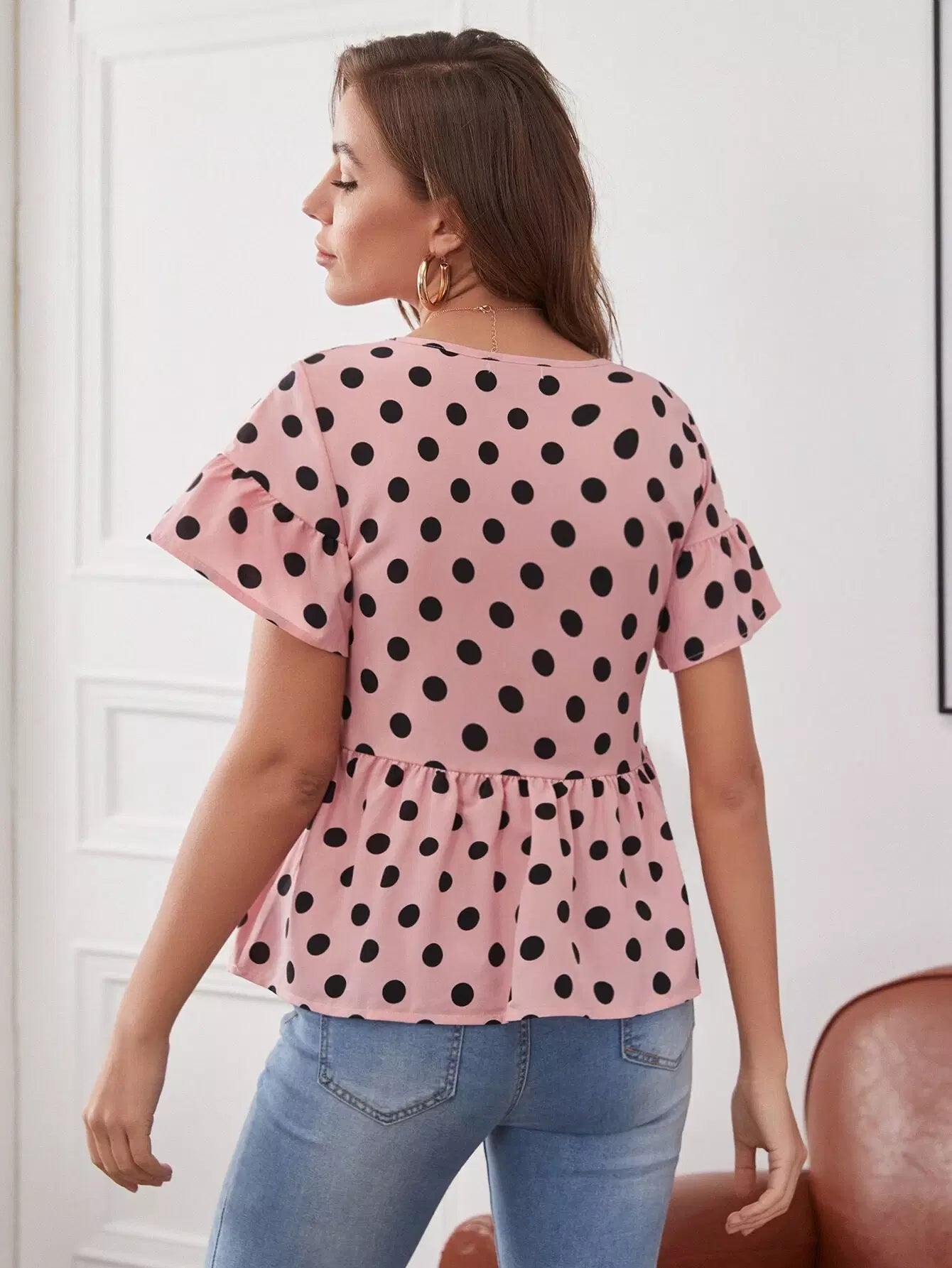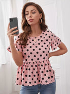 Bell Sleeve Polka Dot Peplum Top