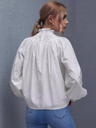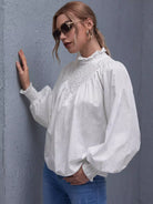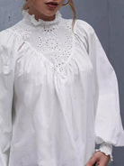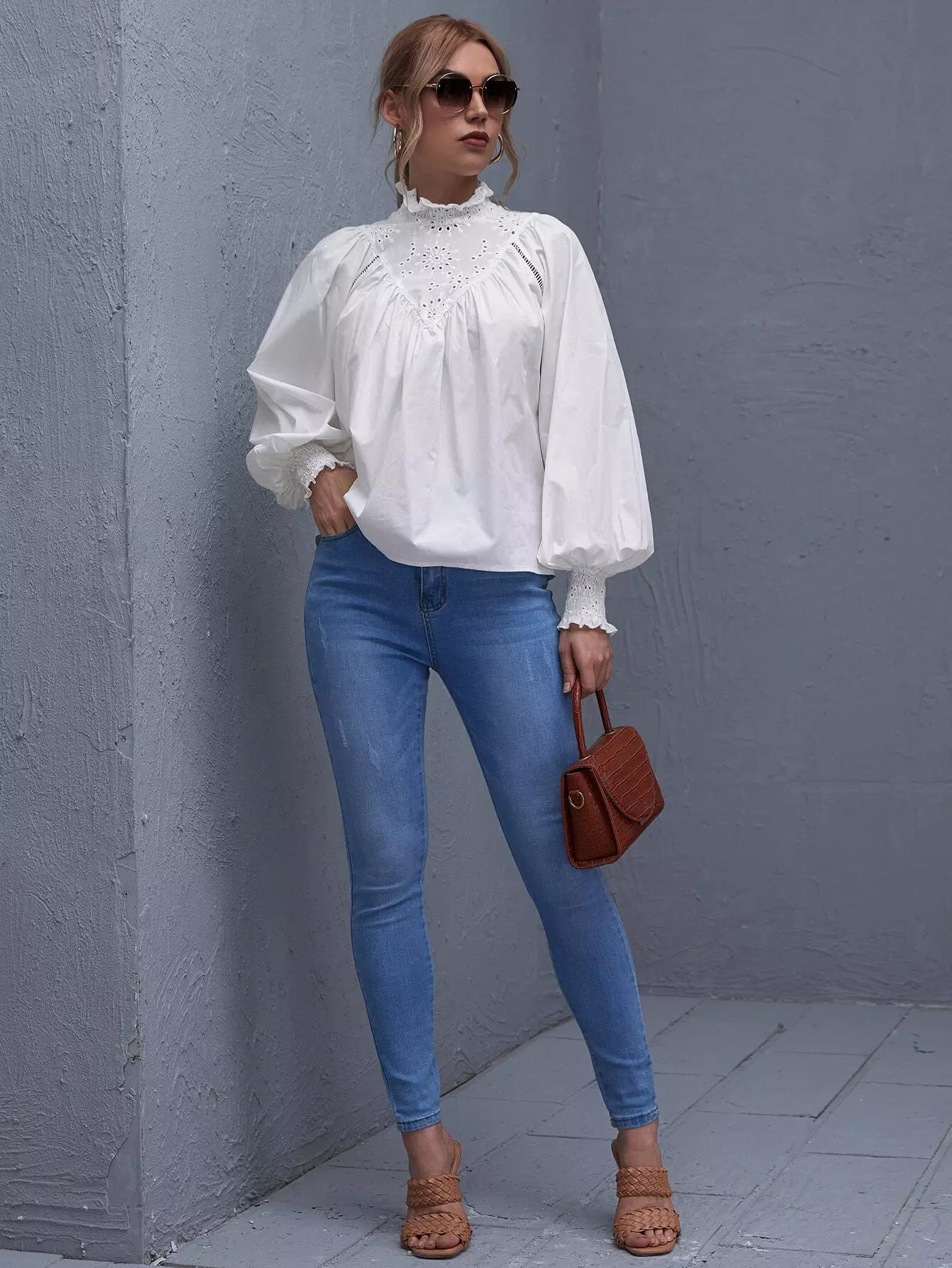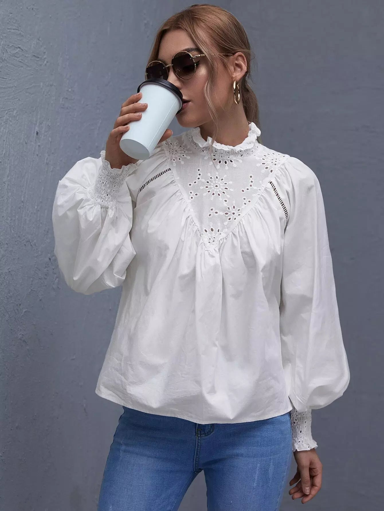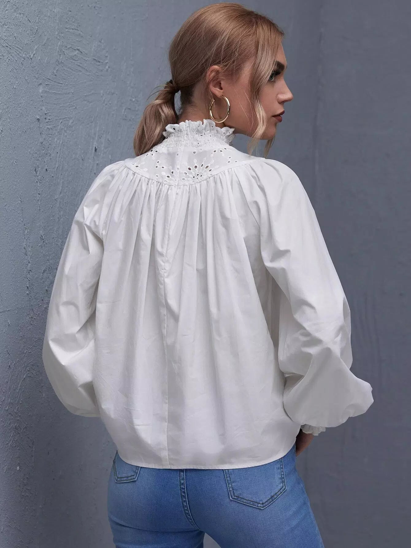 Bishop Sleeve Eyelet Embroidered Detail Top