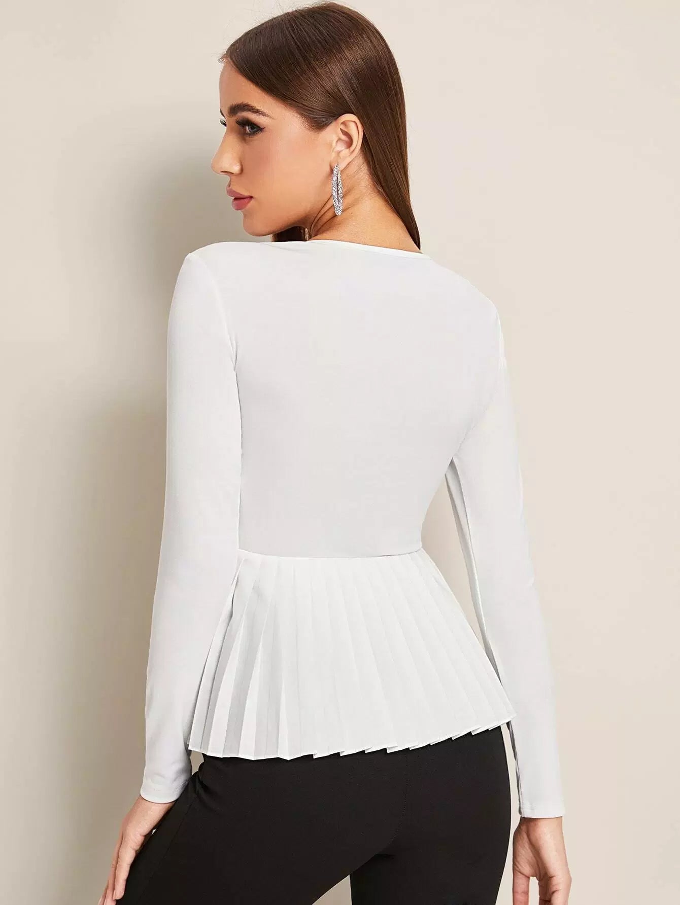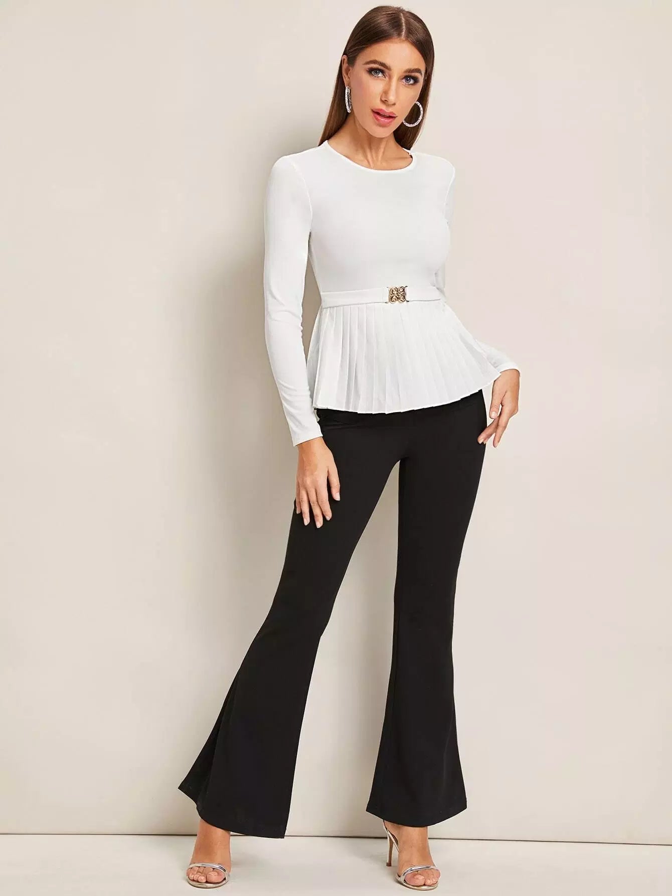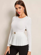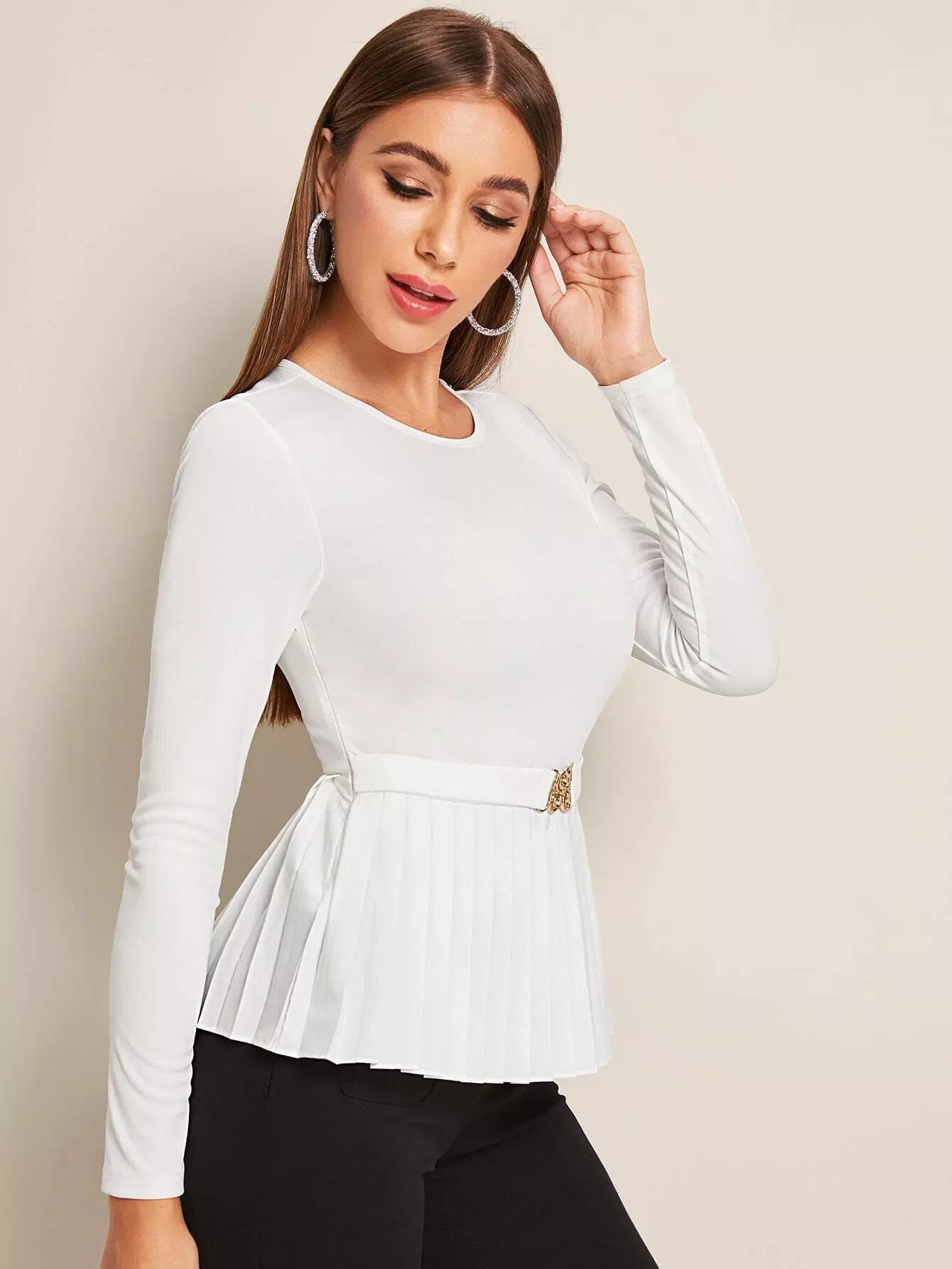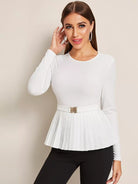 Buckle Front Pleated Hem Top Without Belt