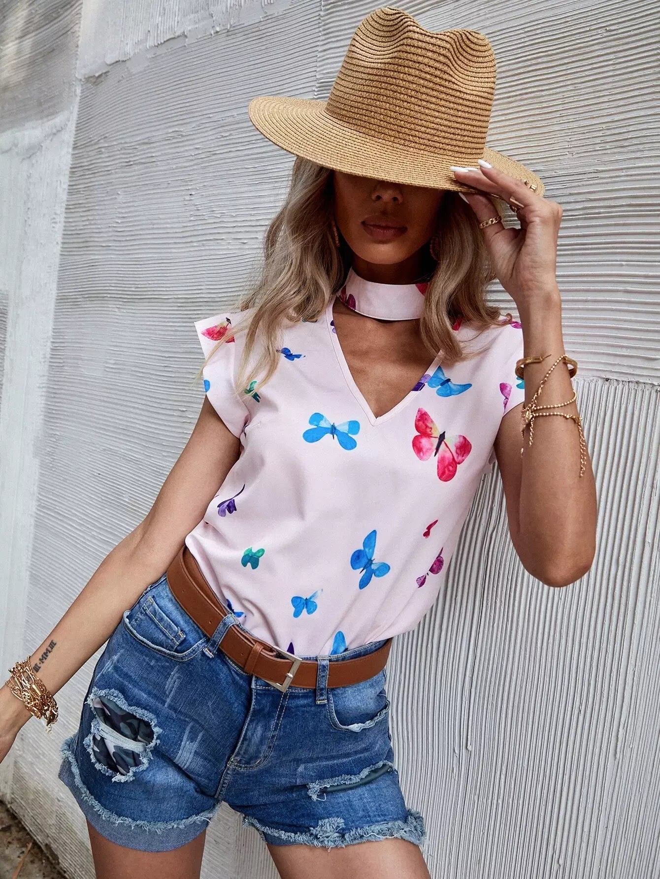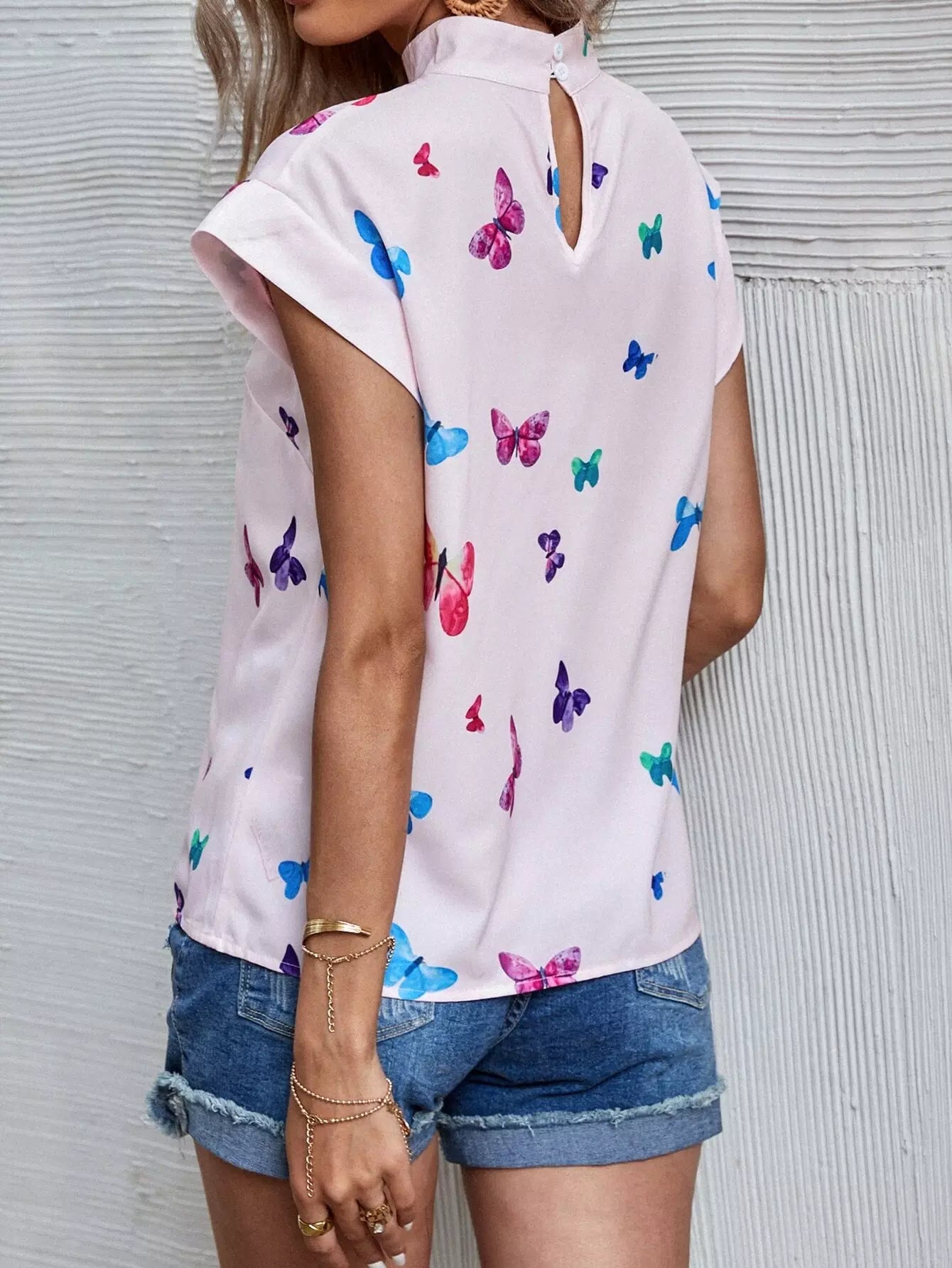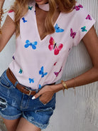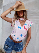 Butterfly Print Batwing Sleeve Blouse