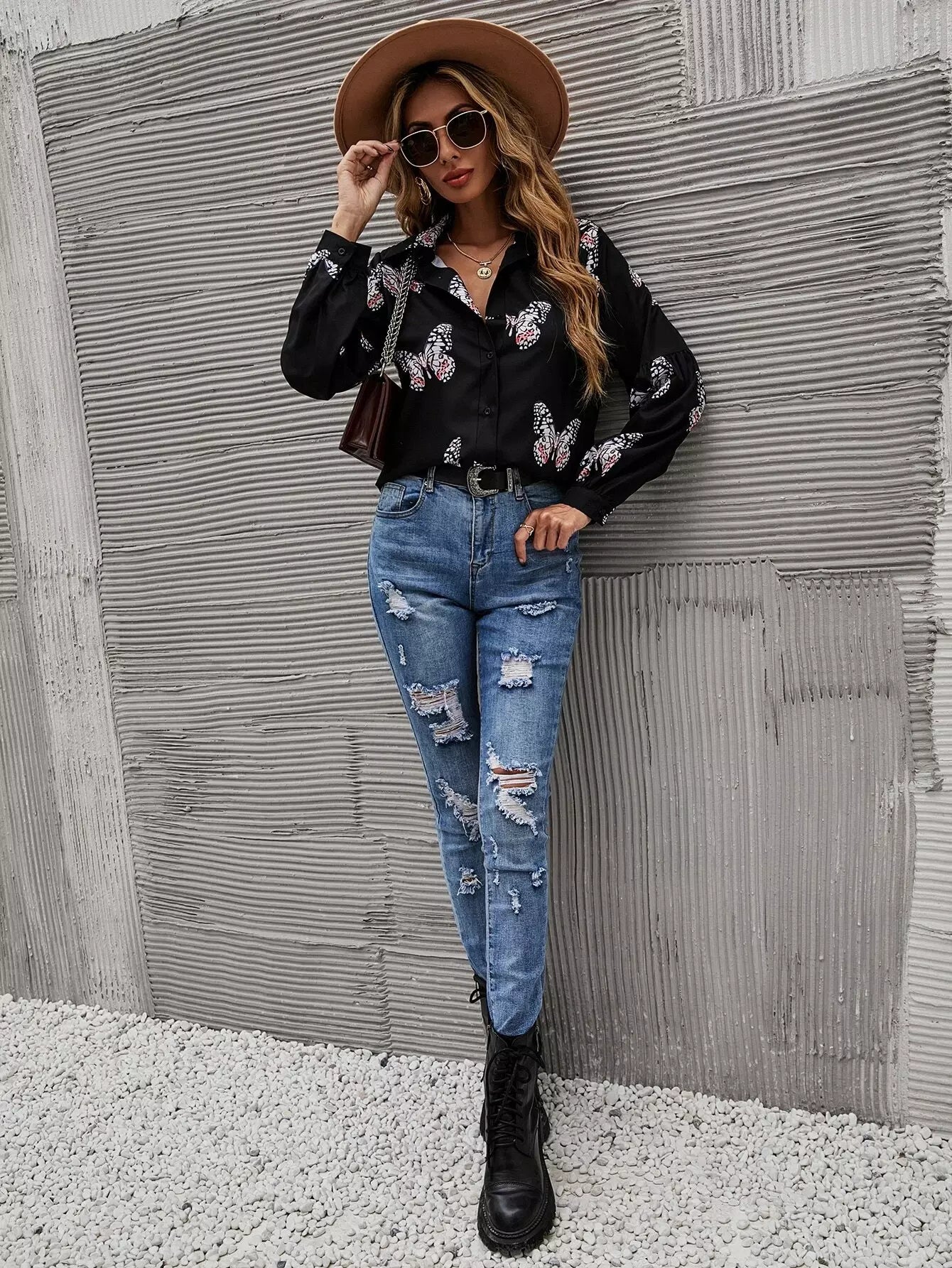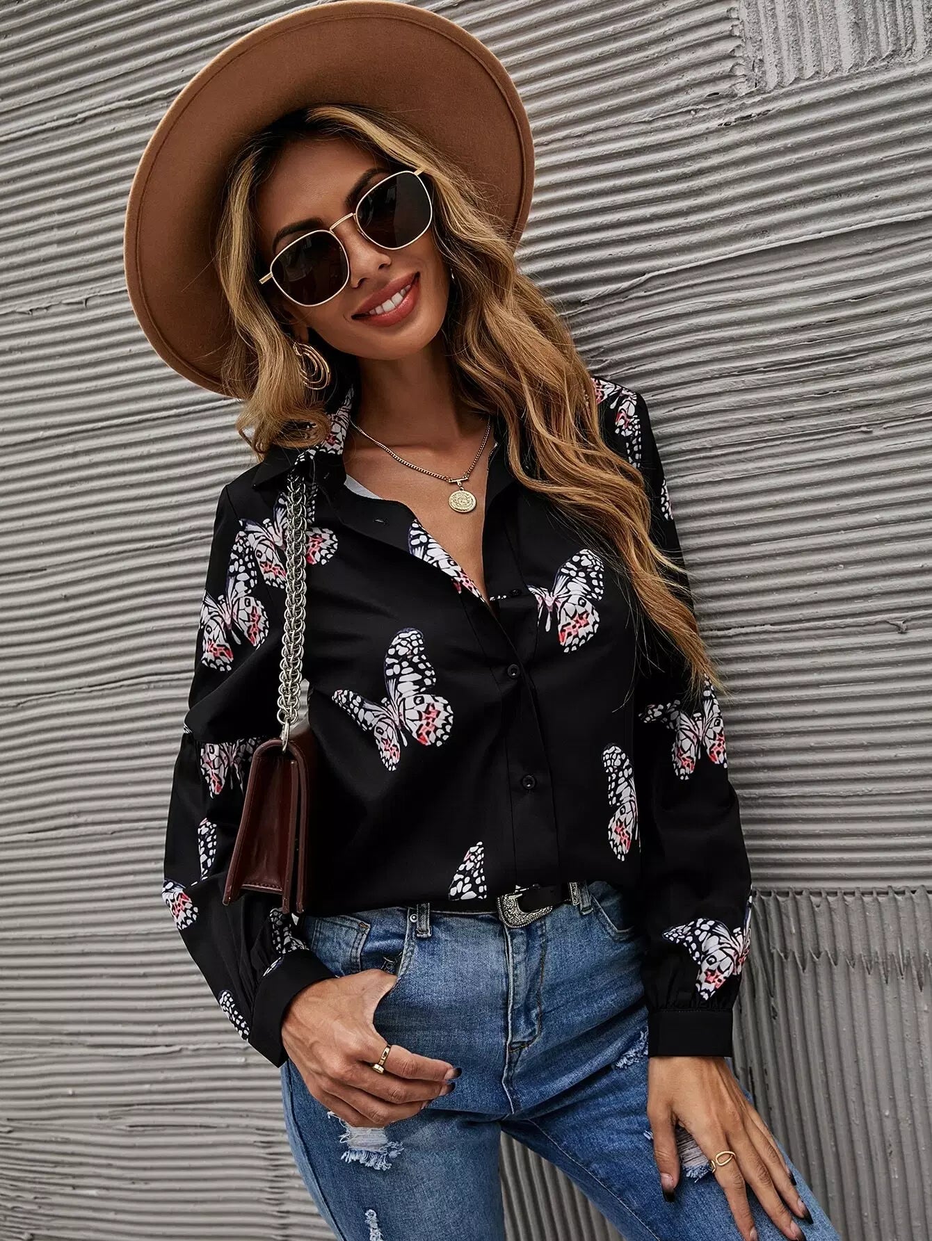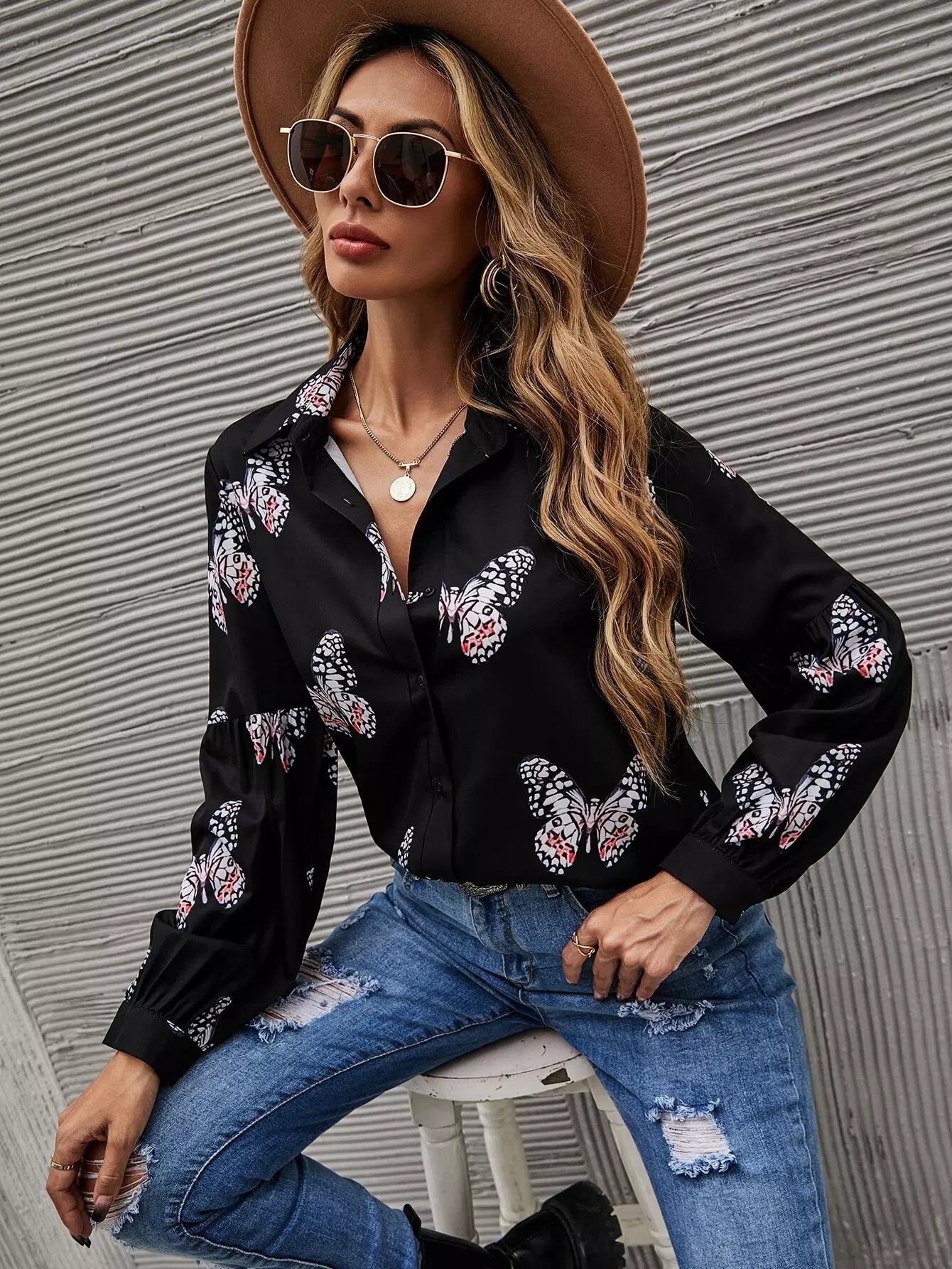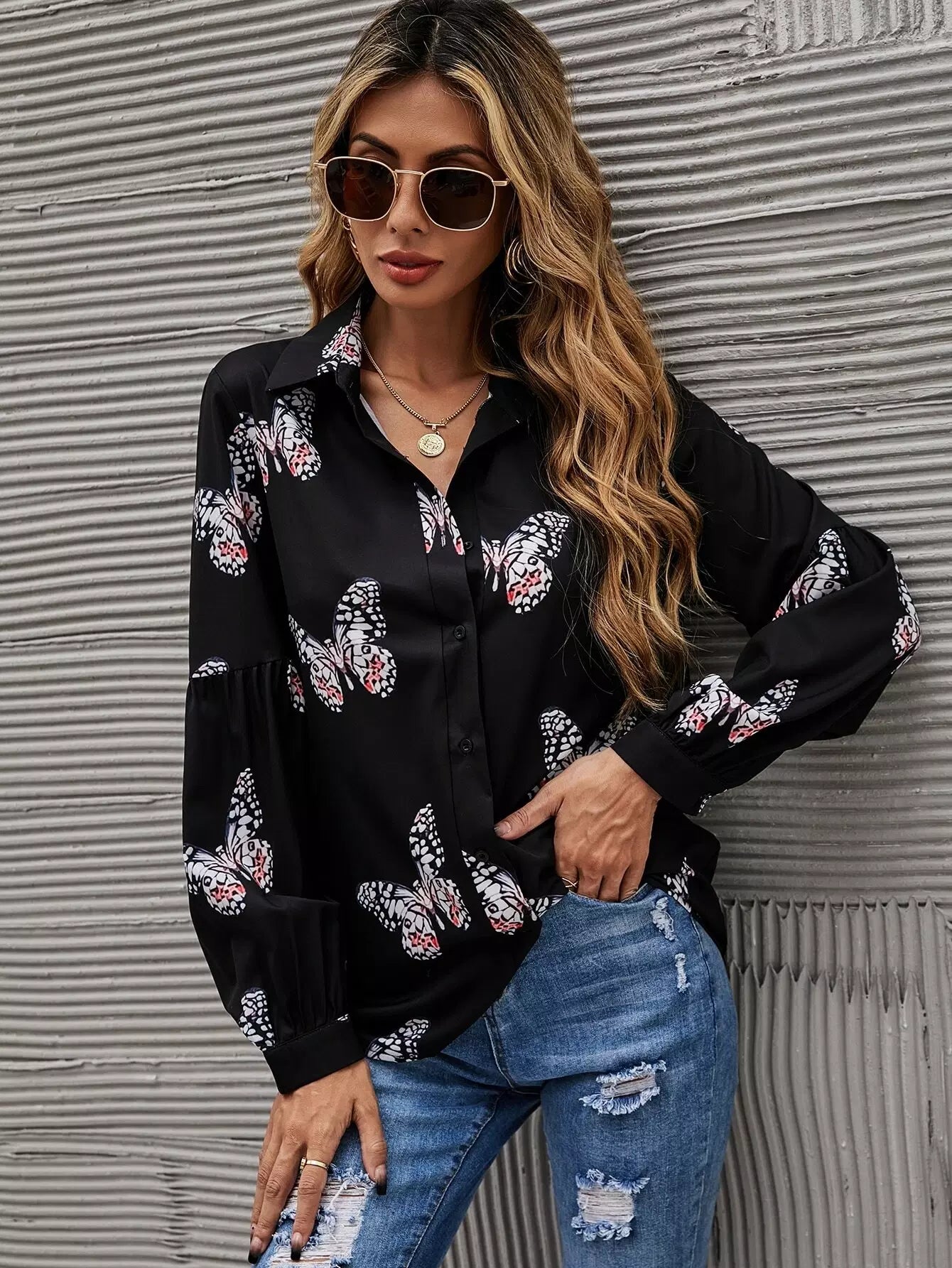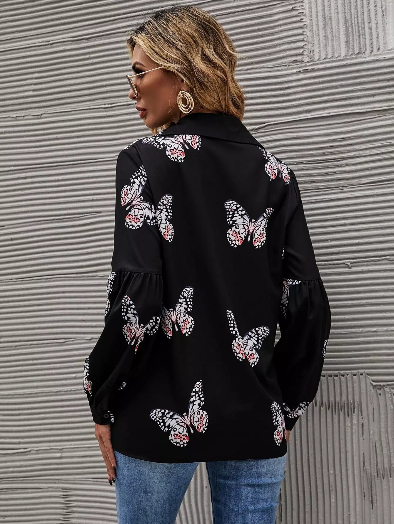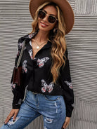 Butterfly Print Button Front Shirt