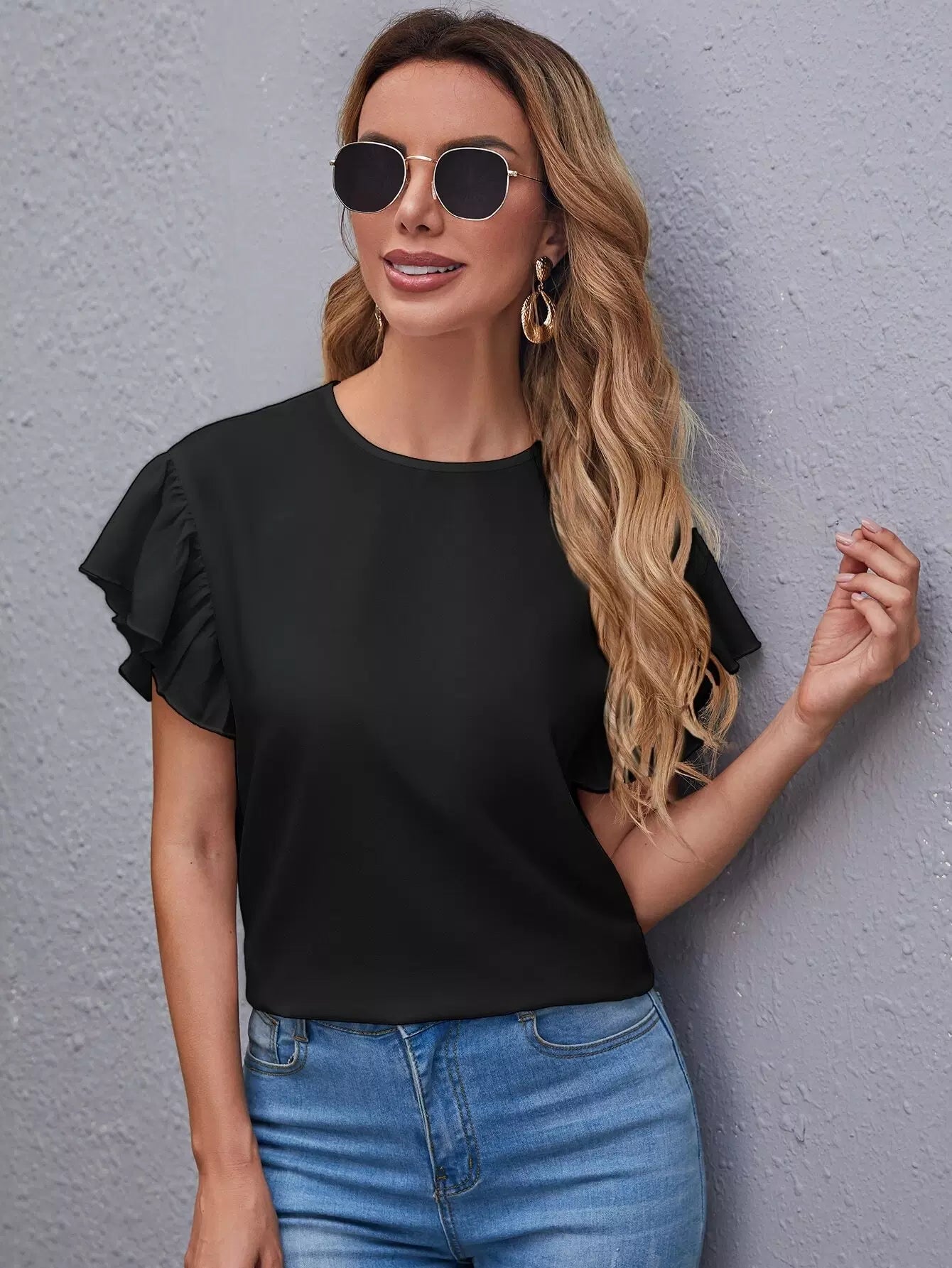 Butterfly Sleeve Solid Top