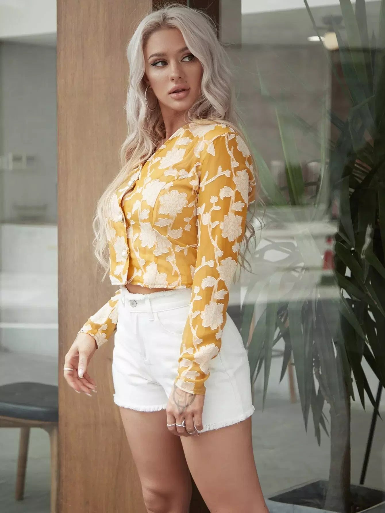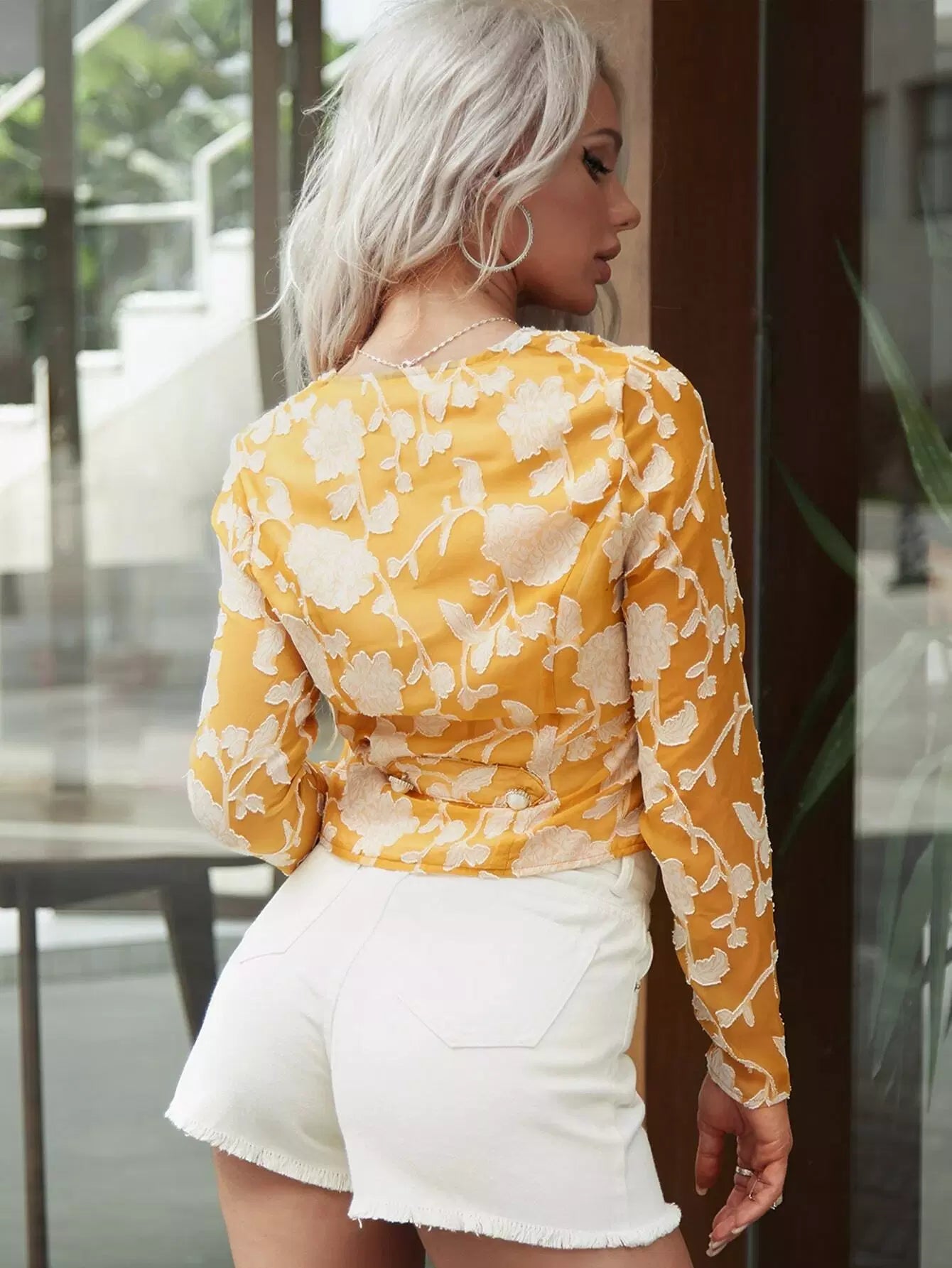 Button Front Jacquard Chiffon Top