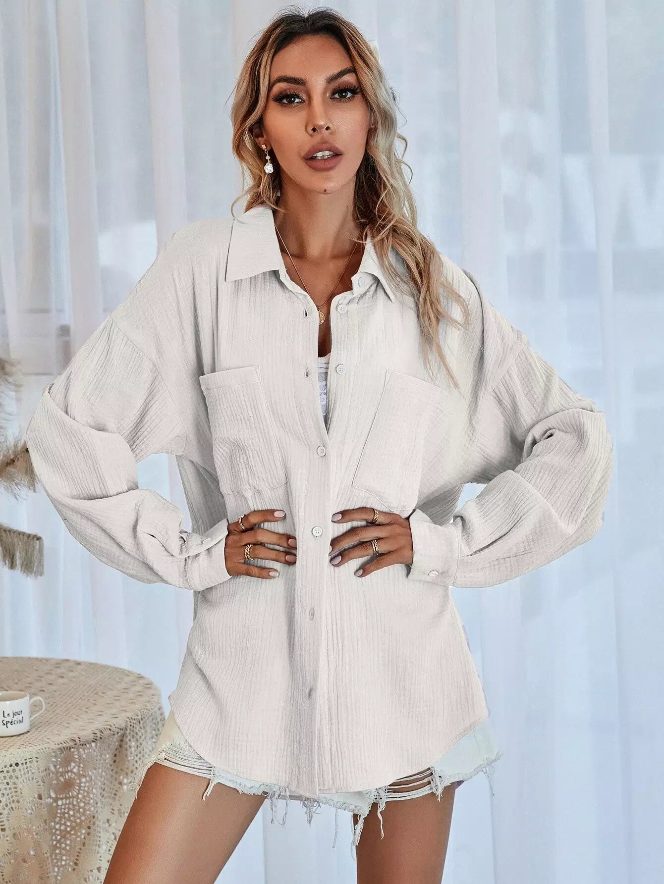 Button Through Drop Shoulder Blouse