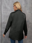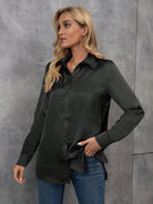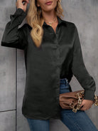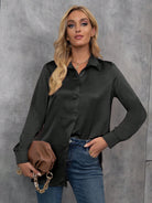 Calvaya Solid Button Front Satin Shirt,Long Sleeve Tops Fall Cloth For Women