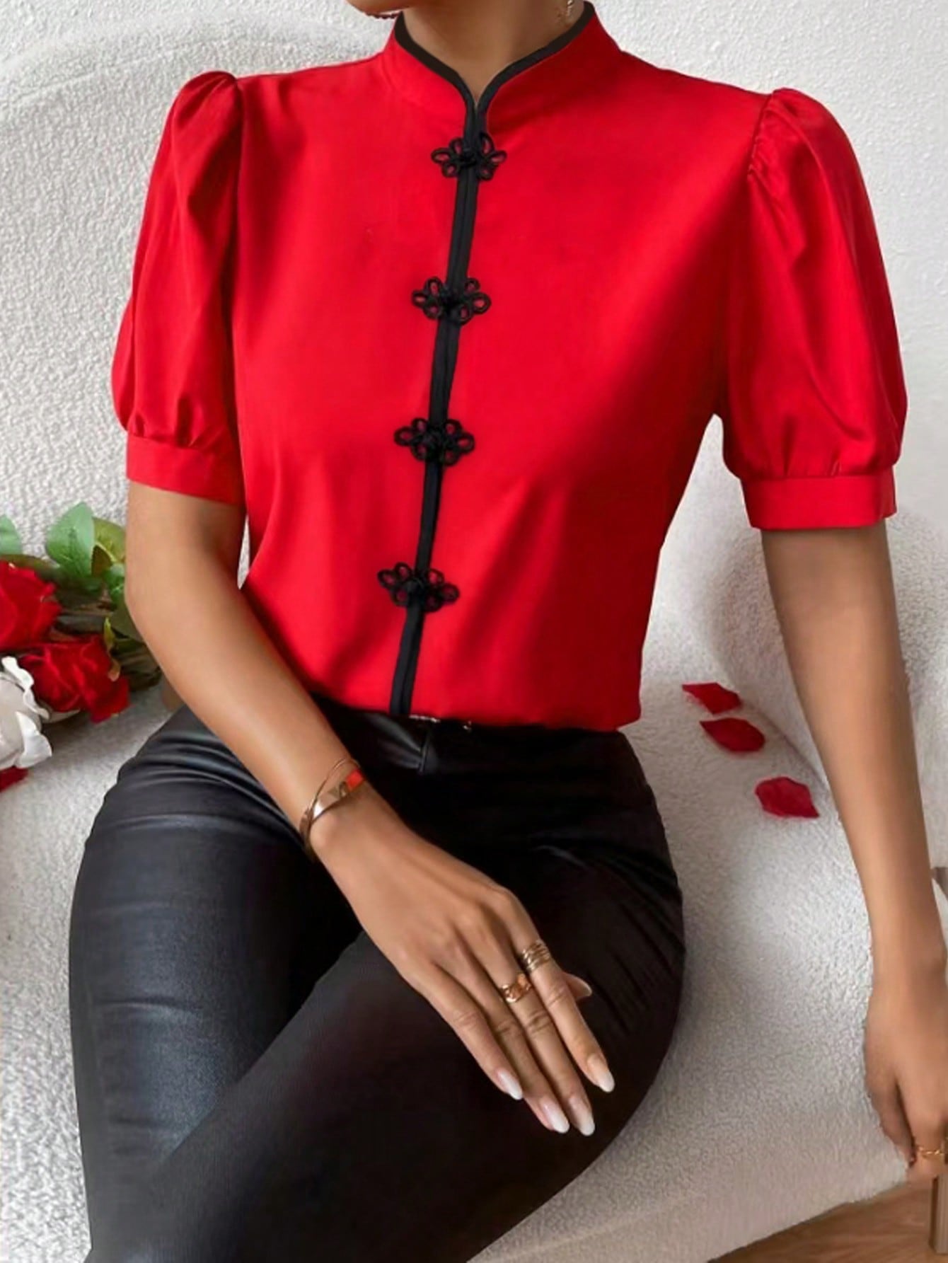 women Chiquease Chinese New Year Wide-Sleeve Red Shirt