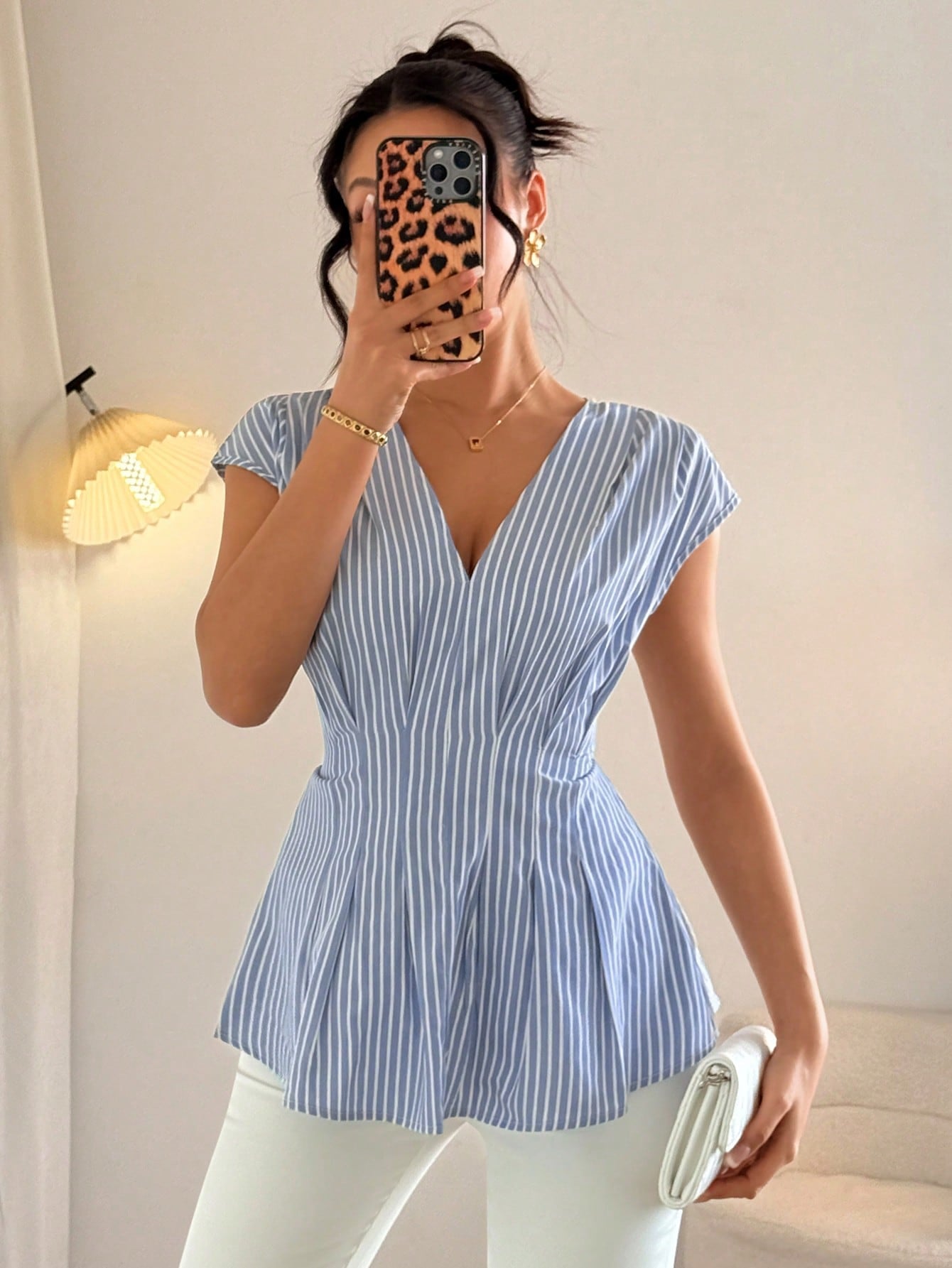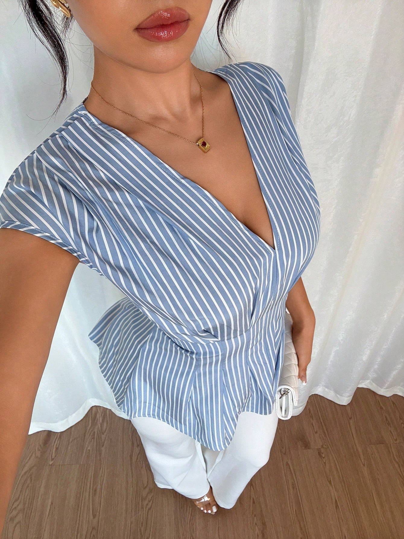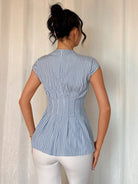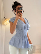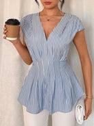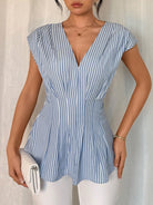 Chiquease Women's Striped Pleated Hem V-Neck Casual Elegant Fashion Blouse