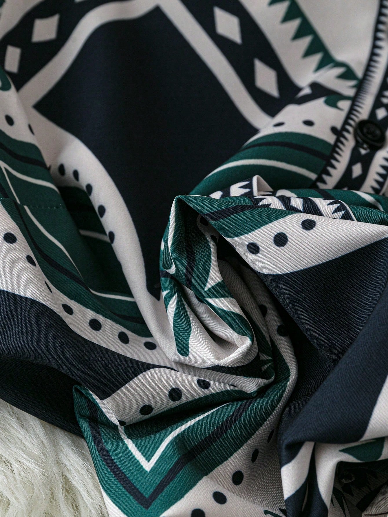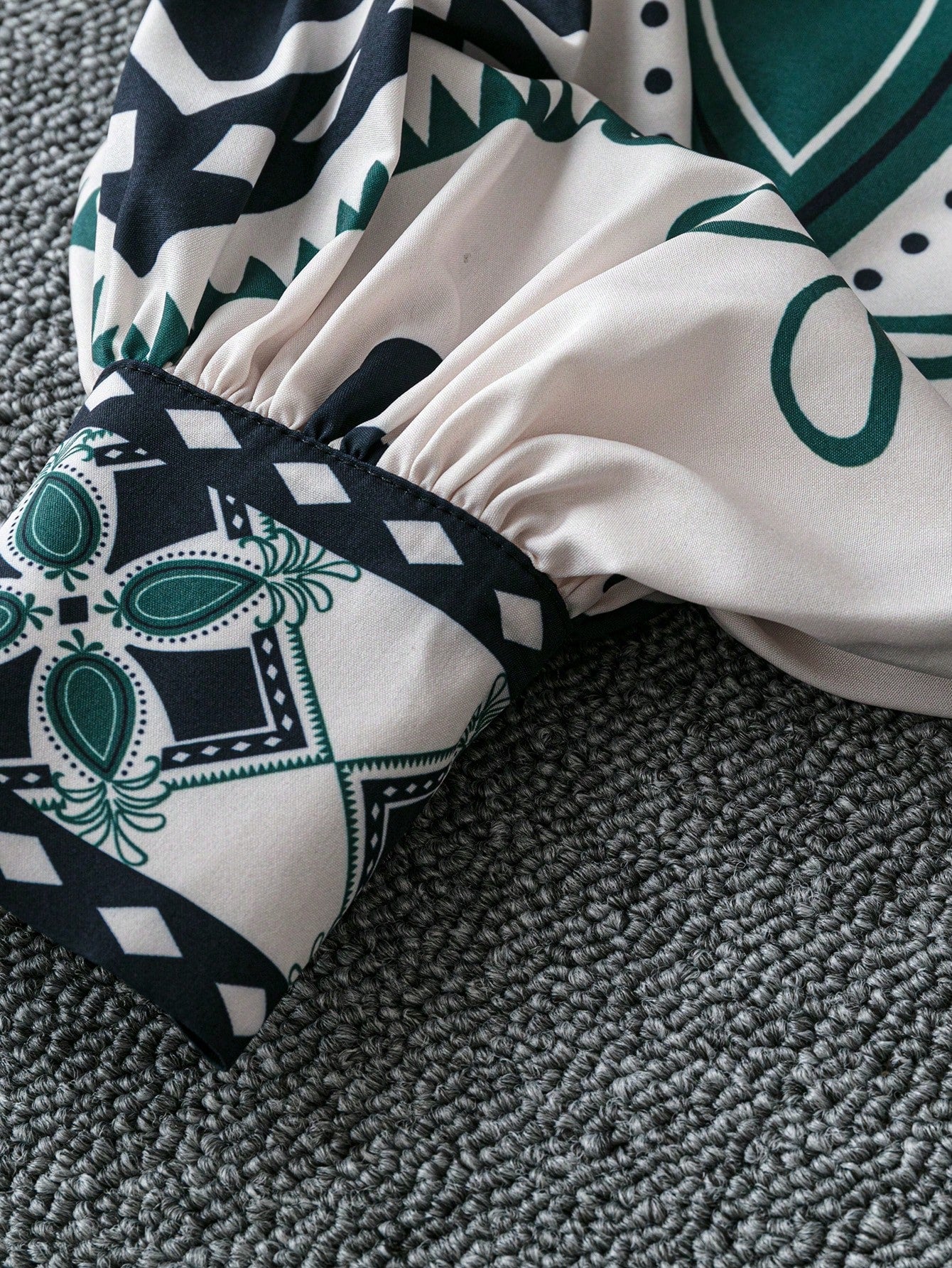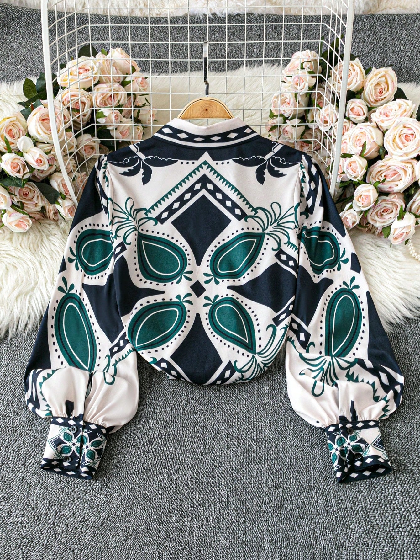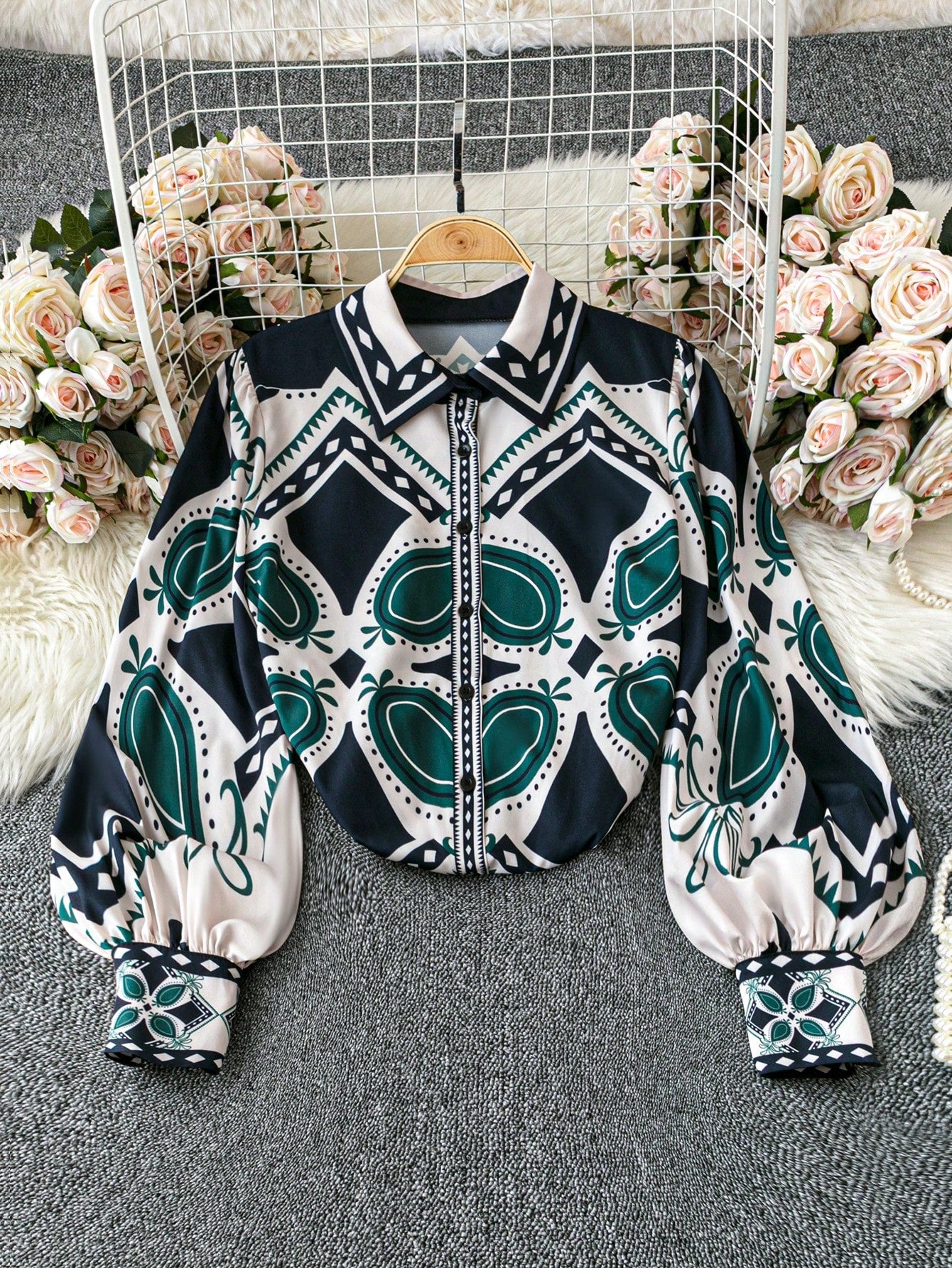 Clasi Women's Retro Floral Print Lantern Sleeve Blouse, Perfect For Vacation