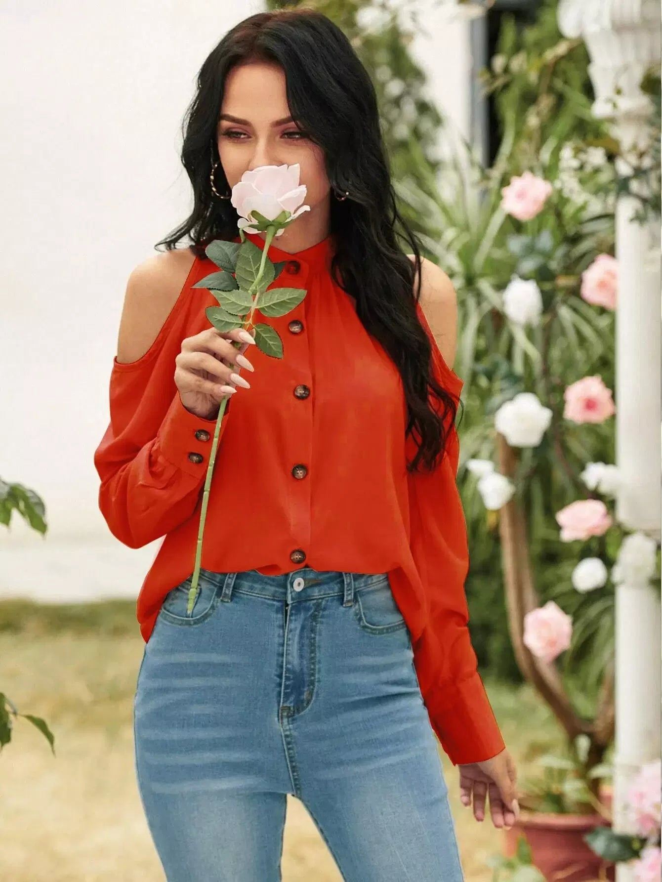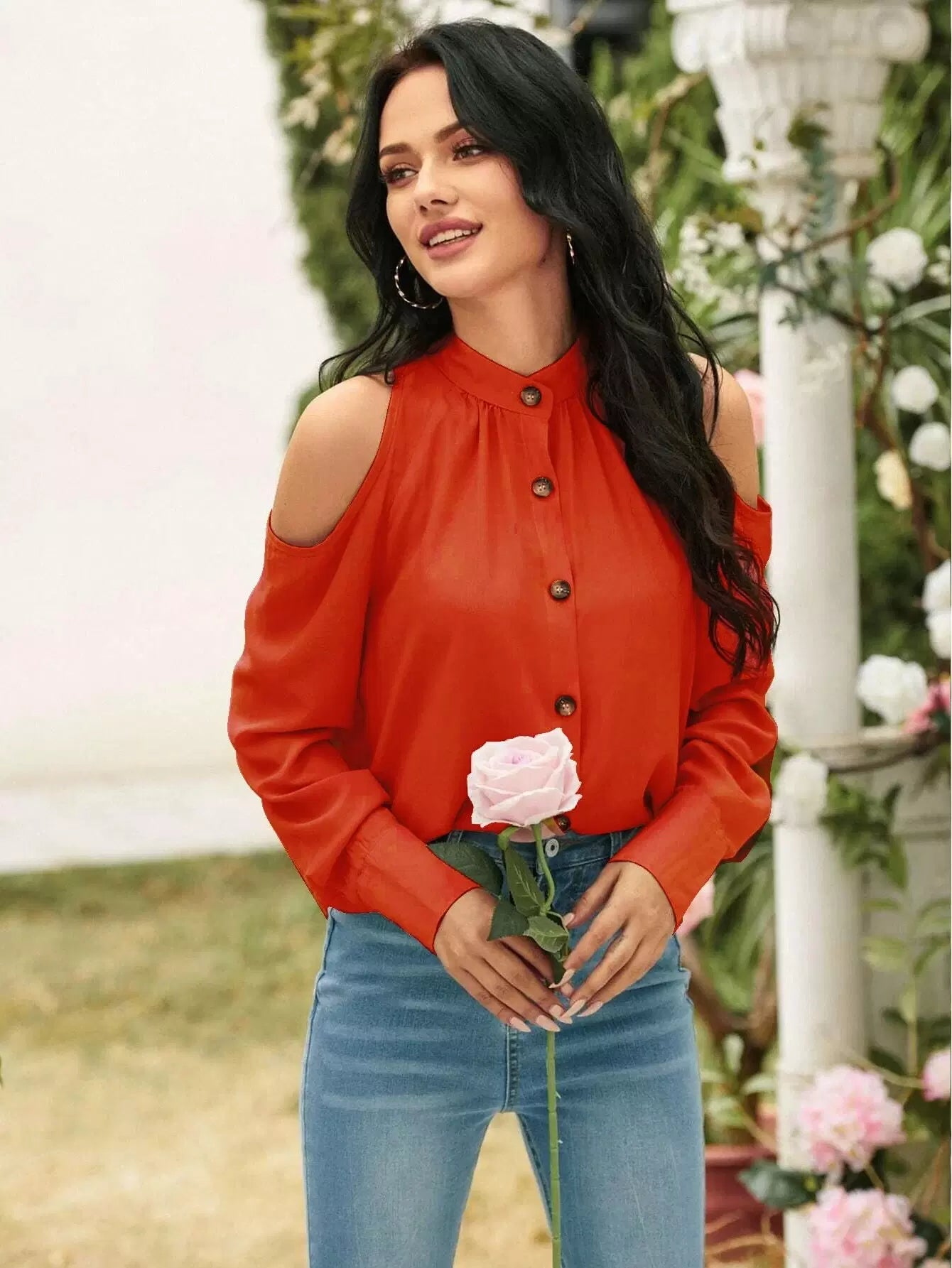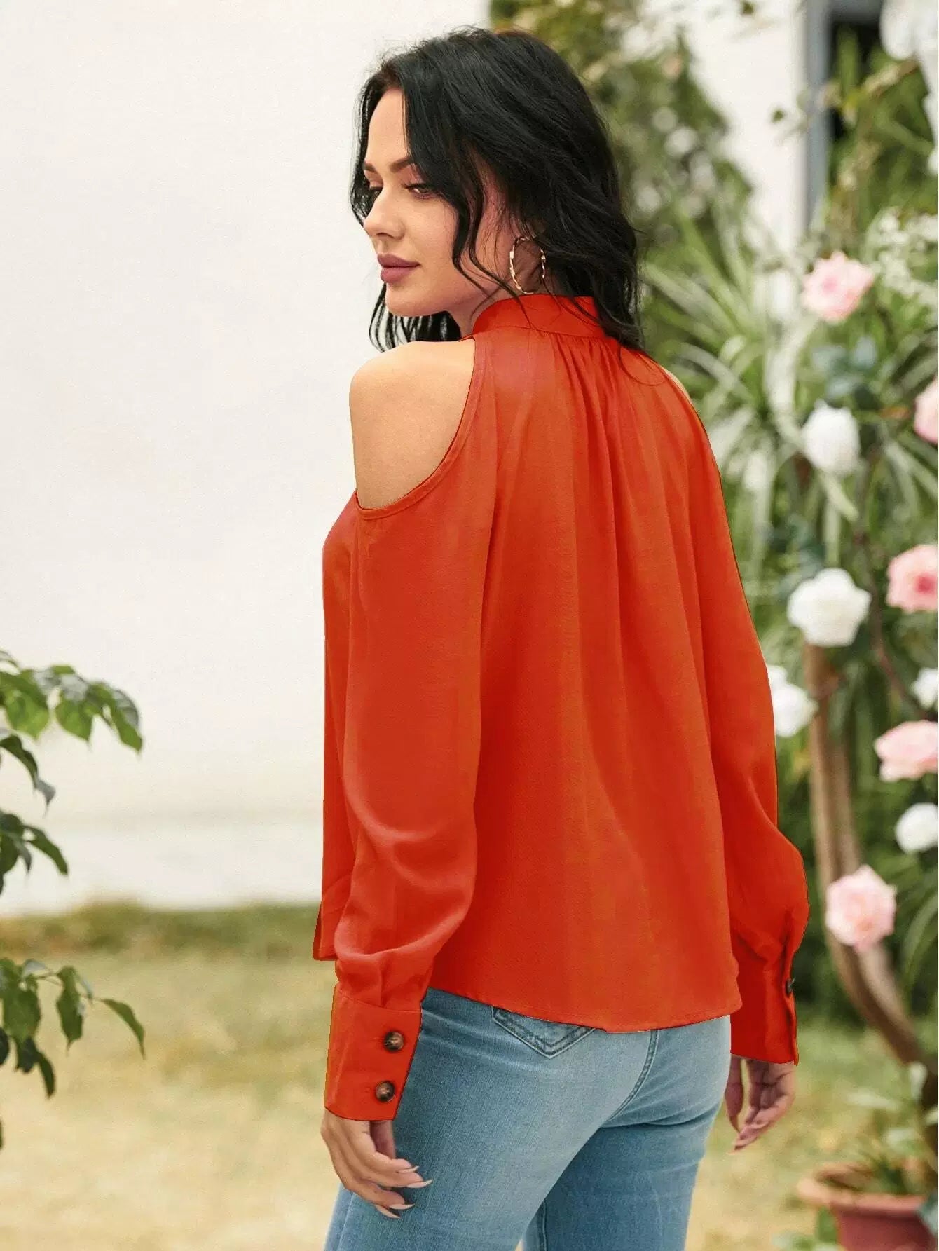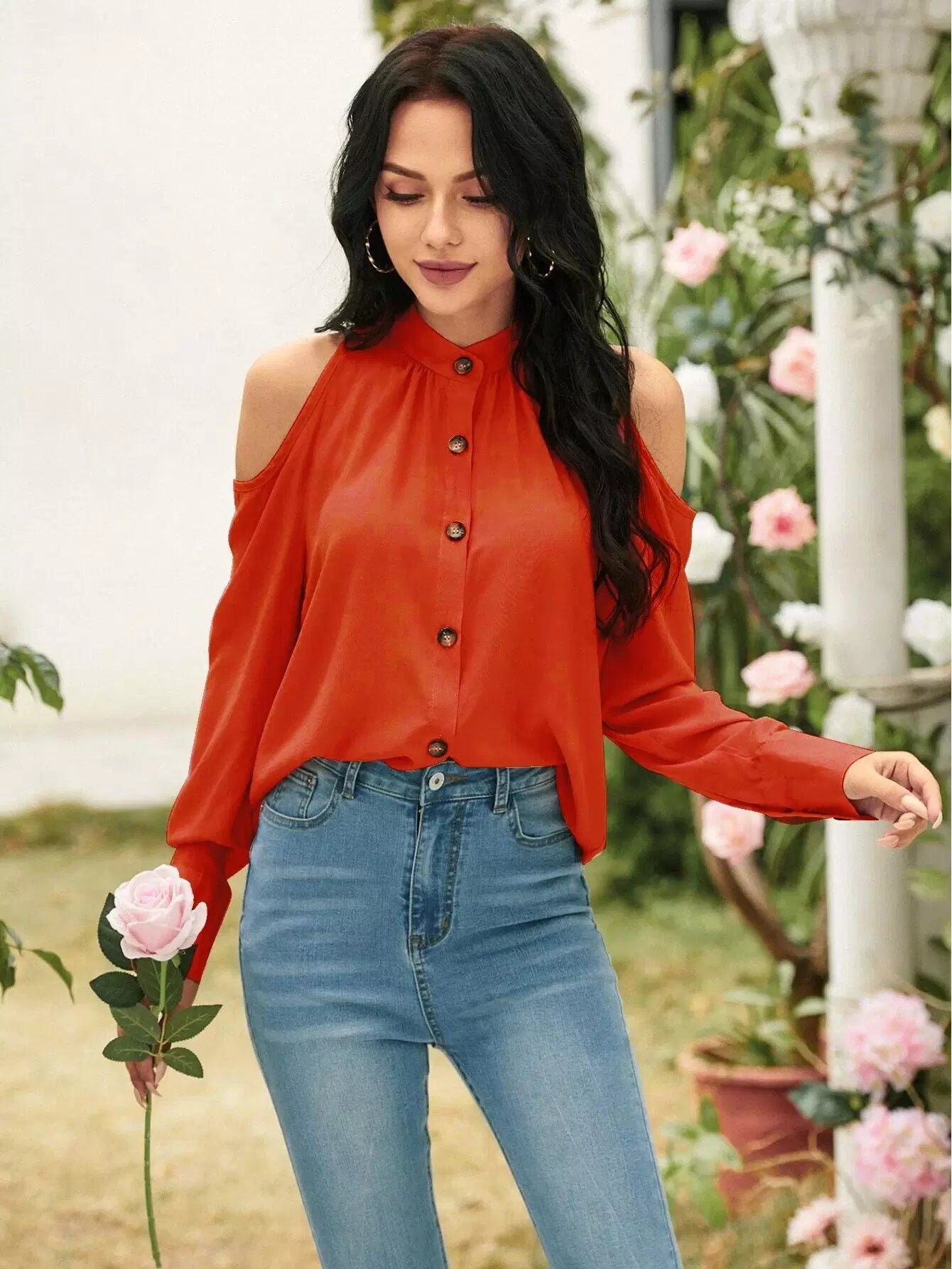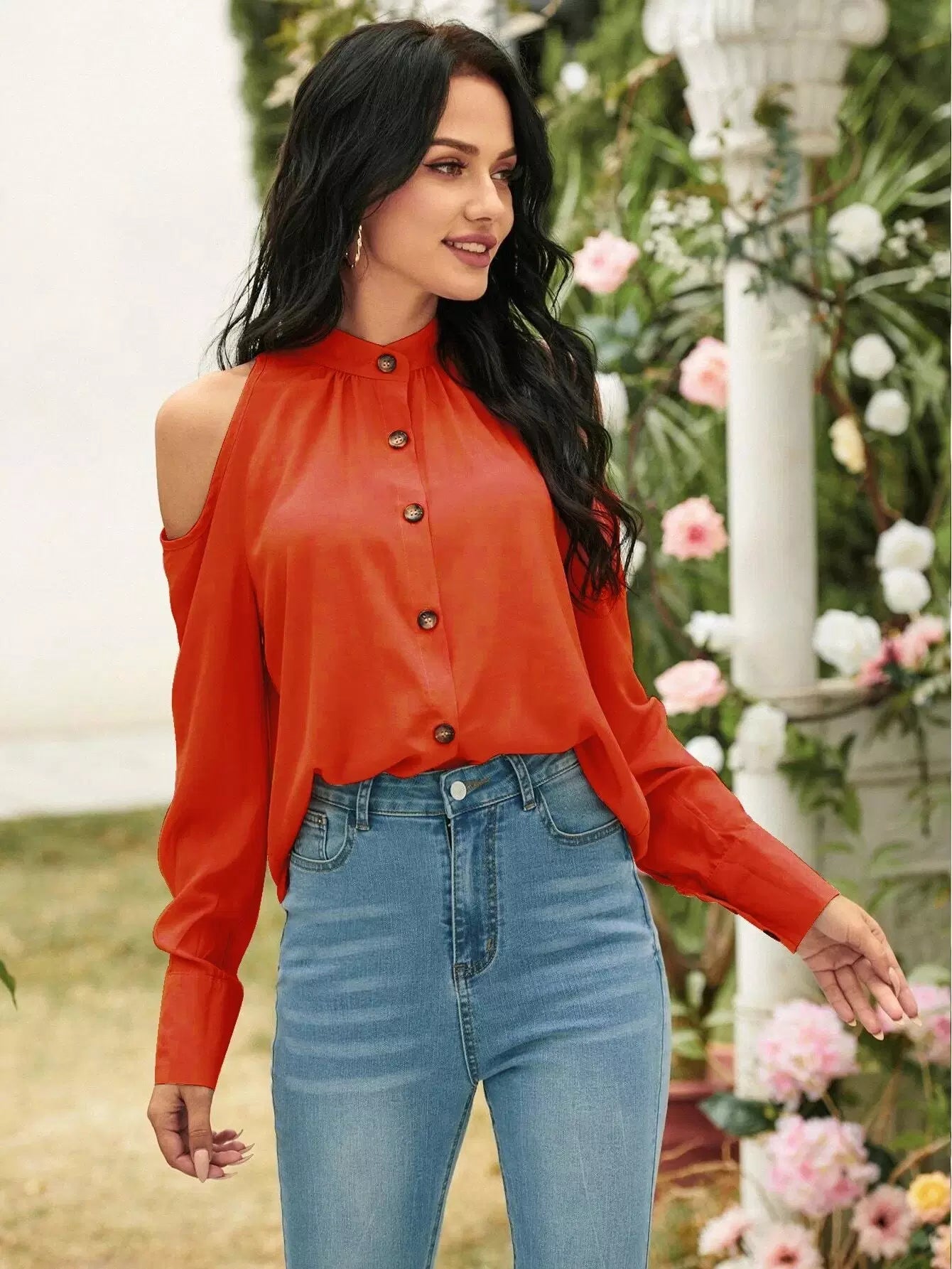 Cold Shoulder Button Front Blouse