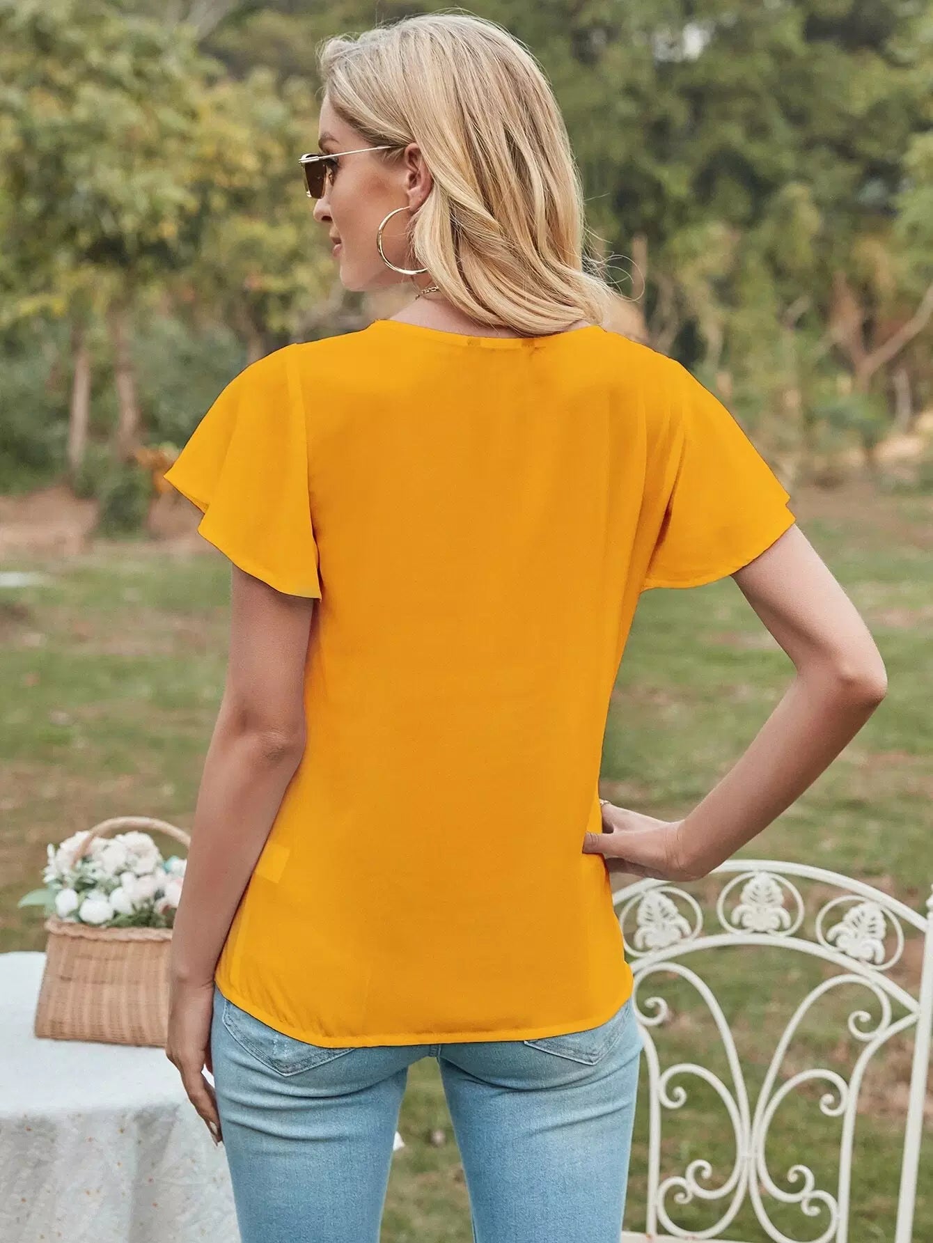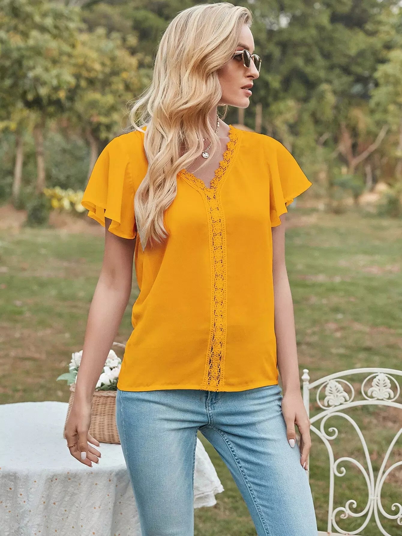 Women - Contrast Lace Butterfly Sleeve Blouse