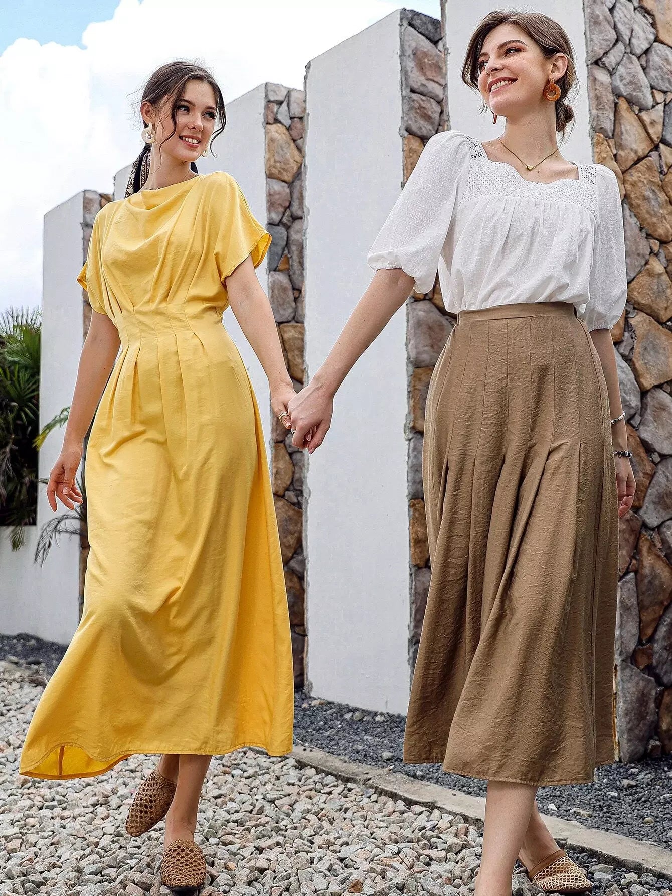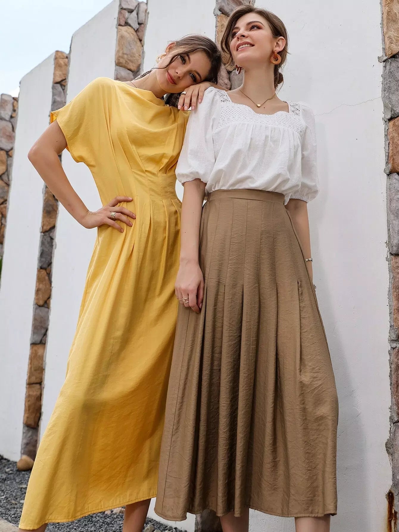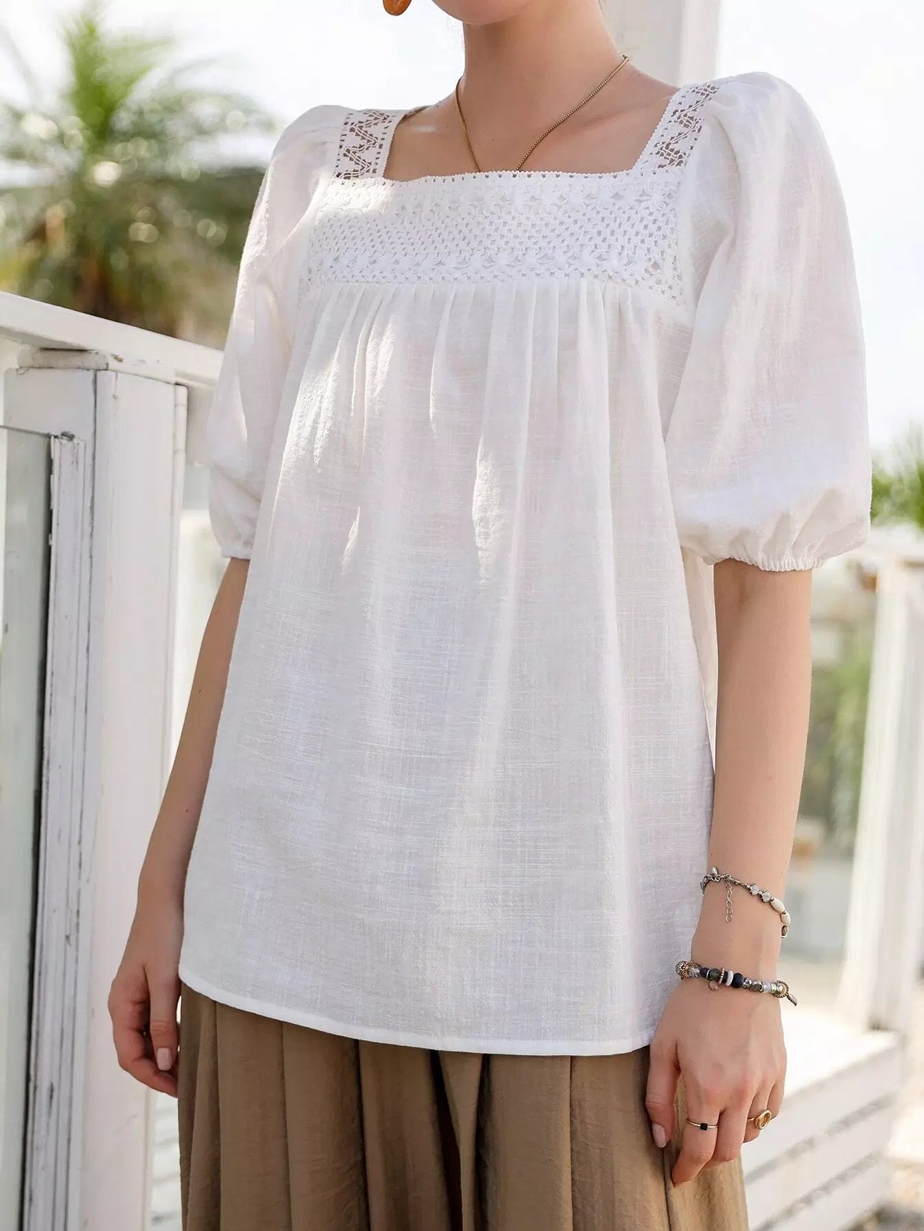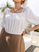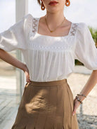 Contrast Lace Panel Square Neck Blouse