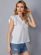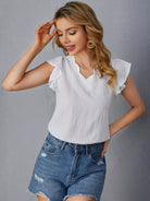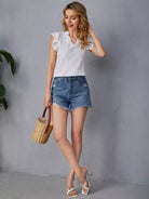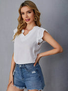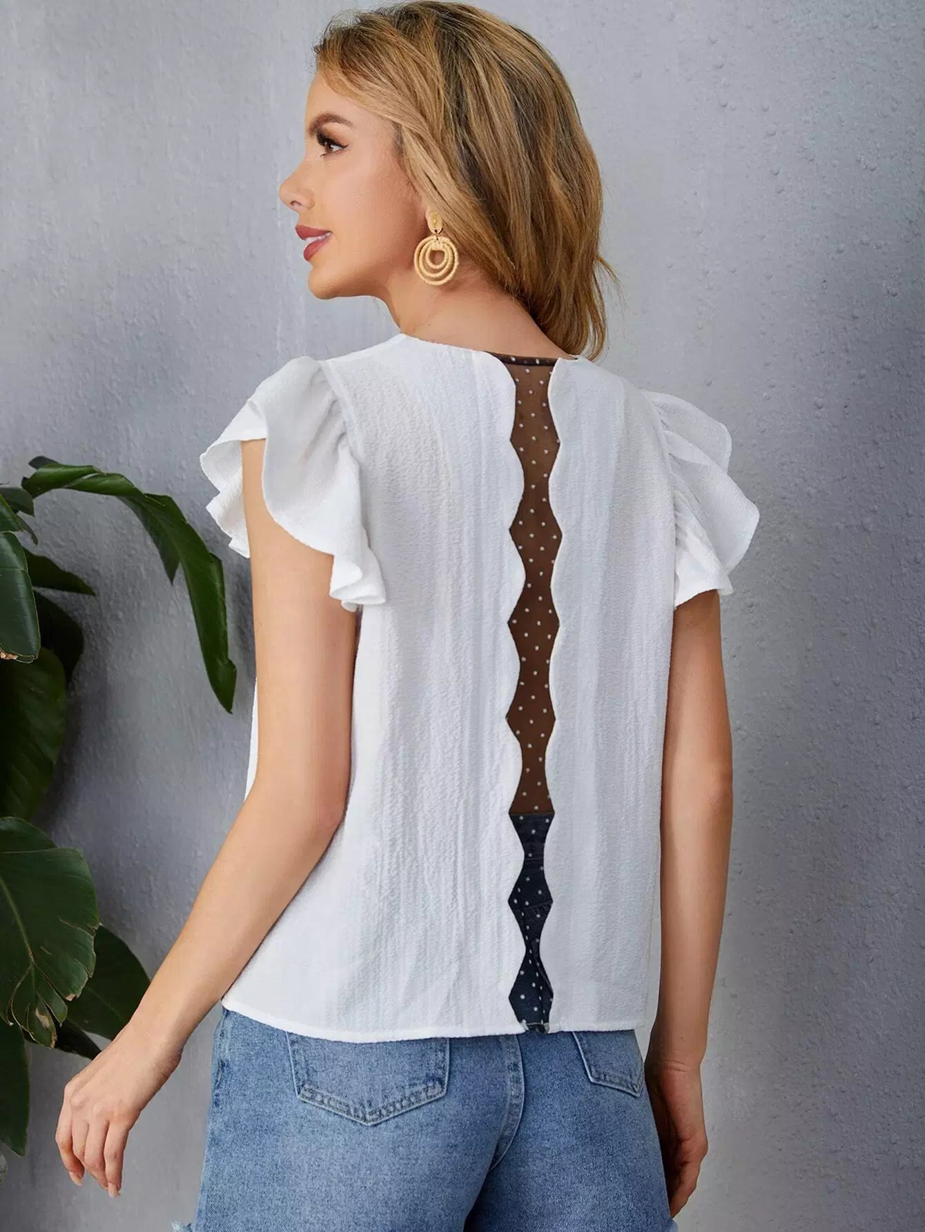 Contrast Mesh Ruffle Trim V-neck Top