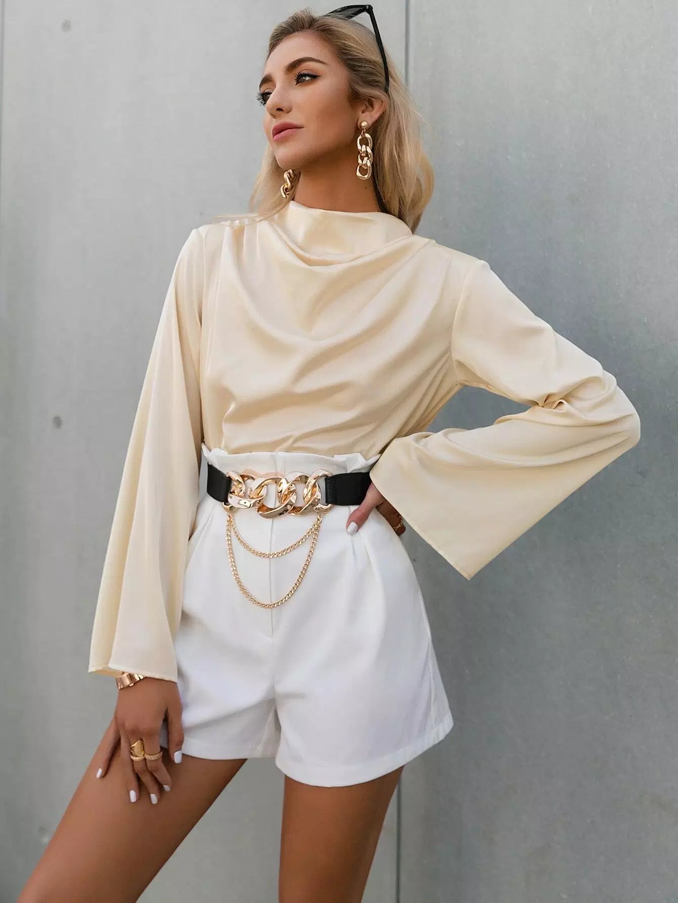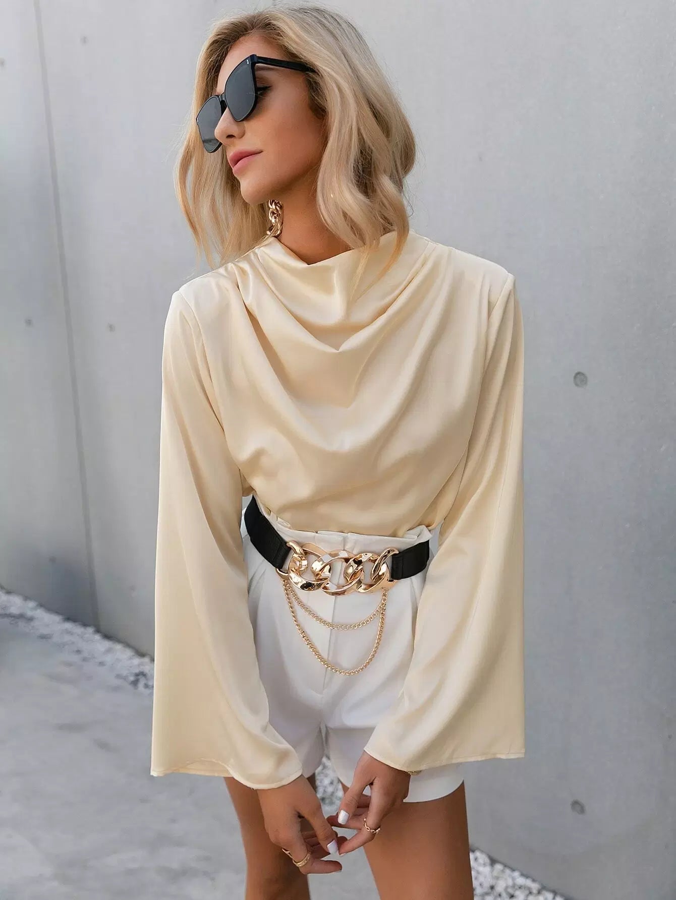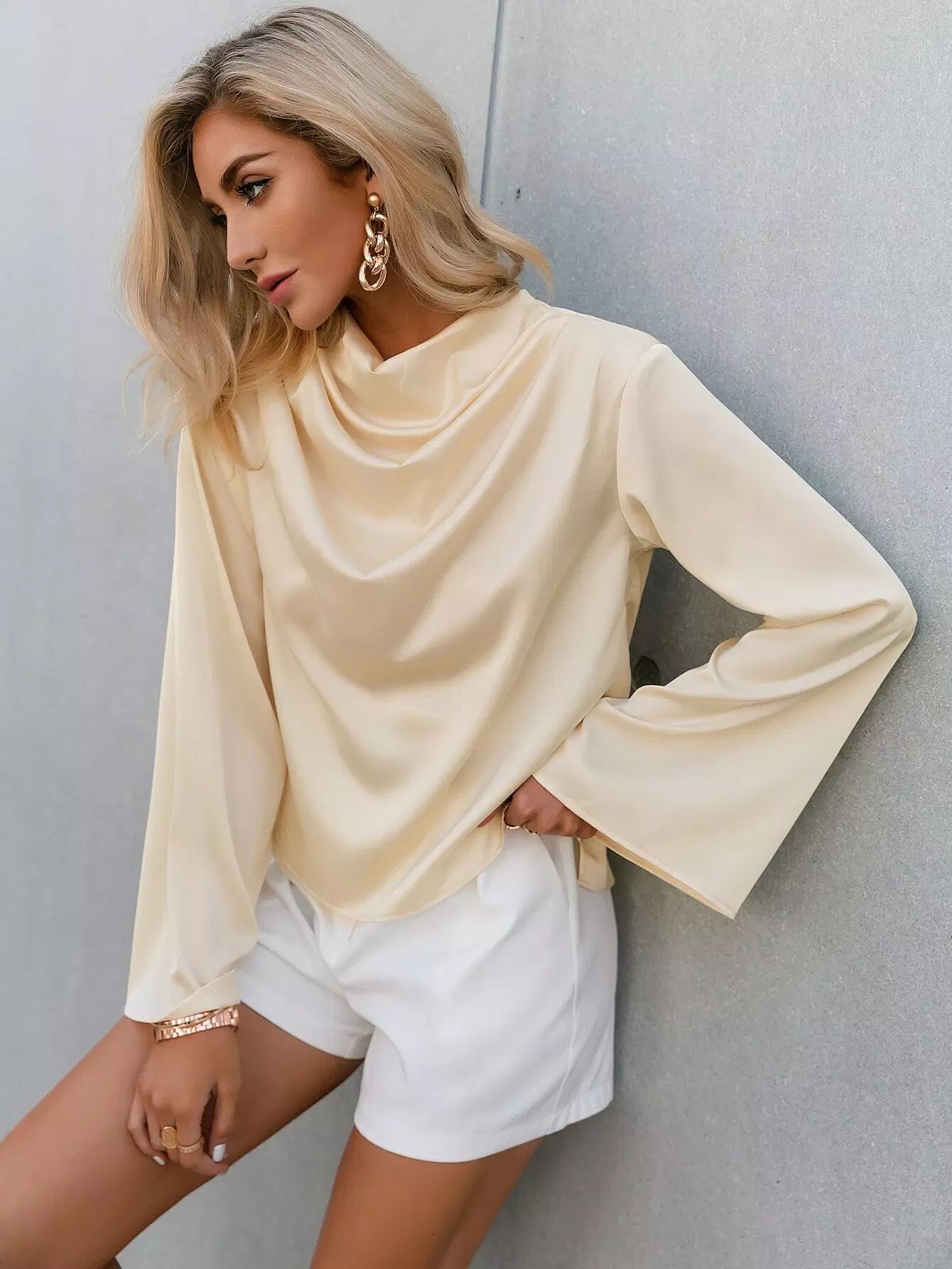 Cowl Neck Flounce Sleeve Top