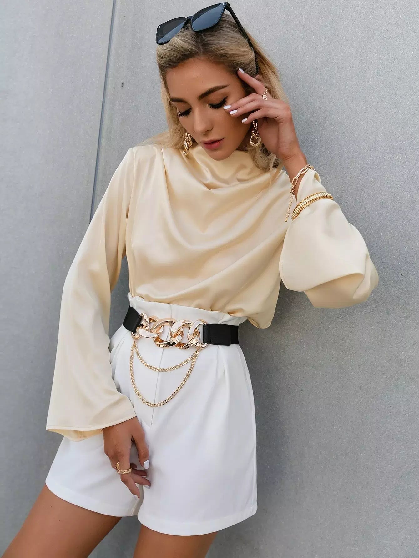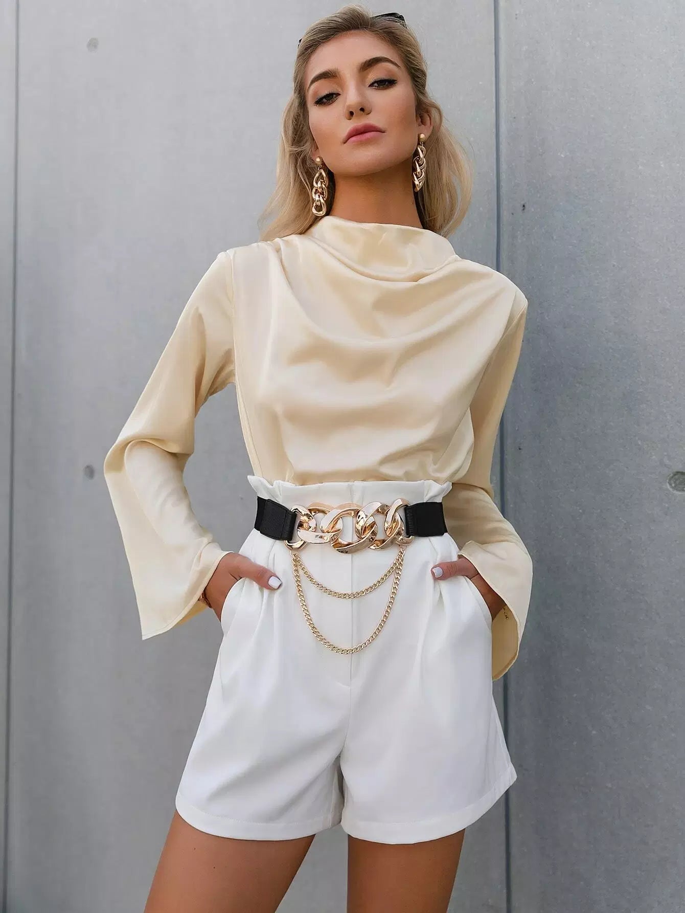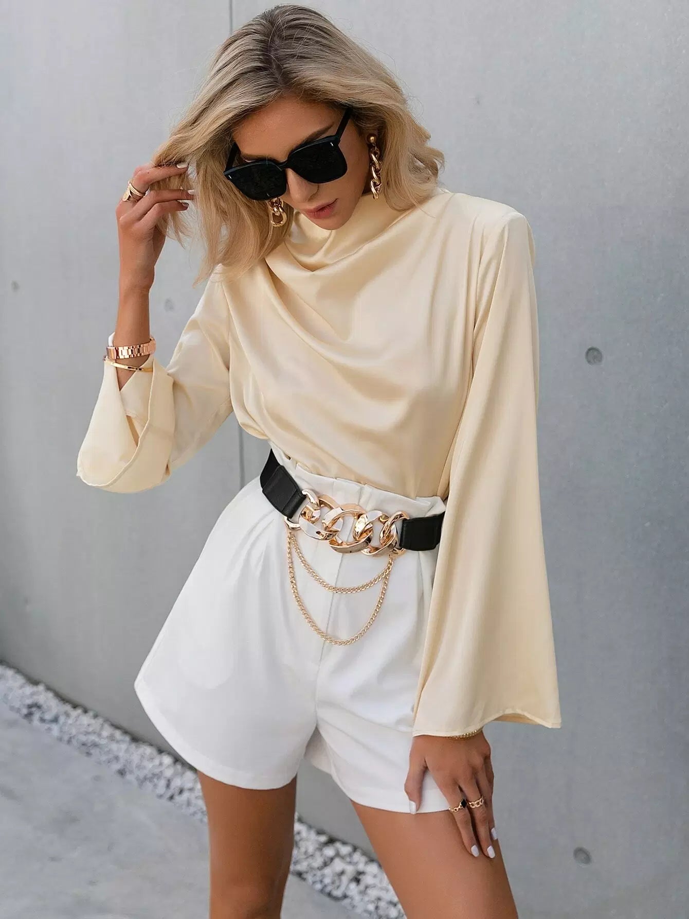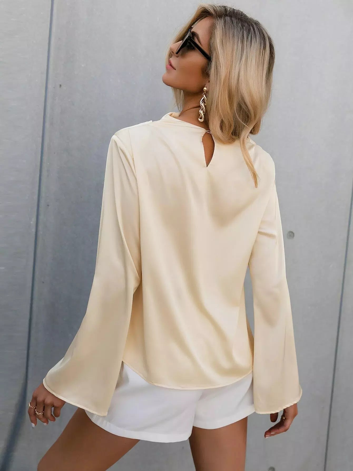 Cowl Neck Flounce Sleeve Top