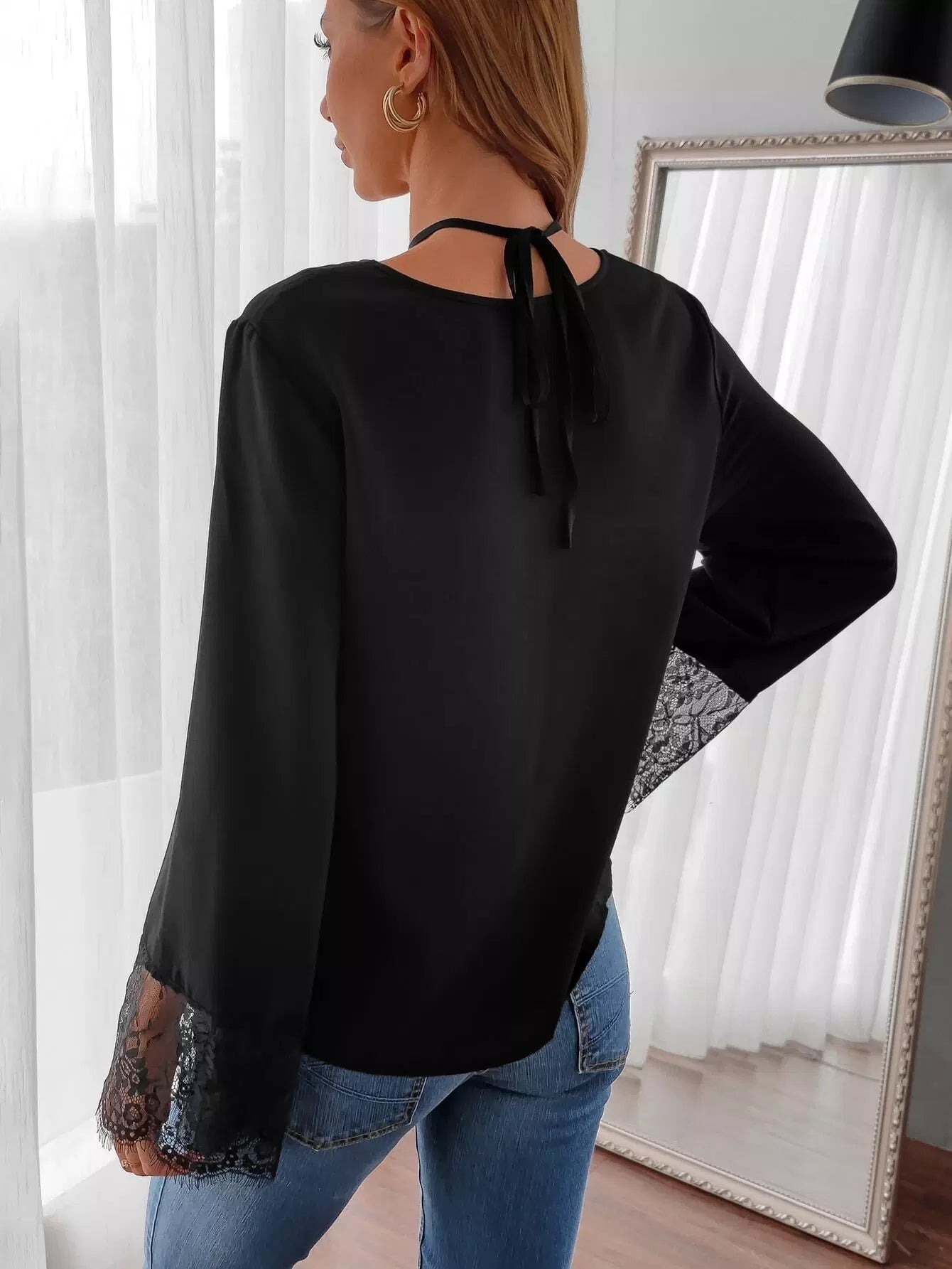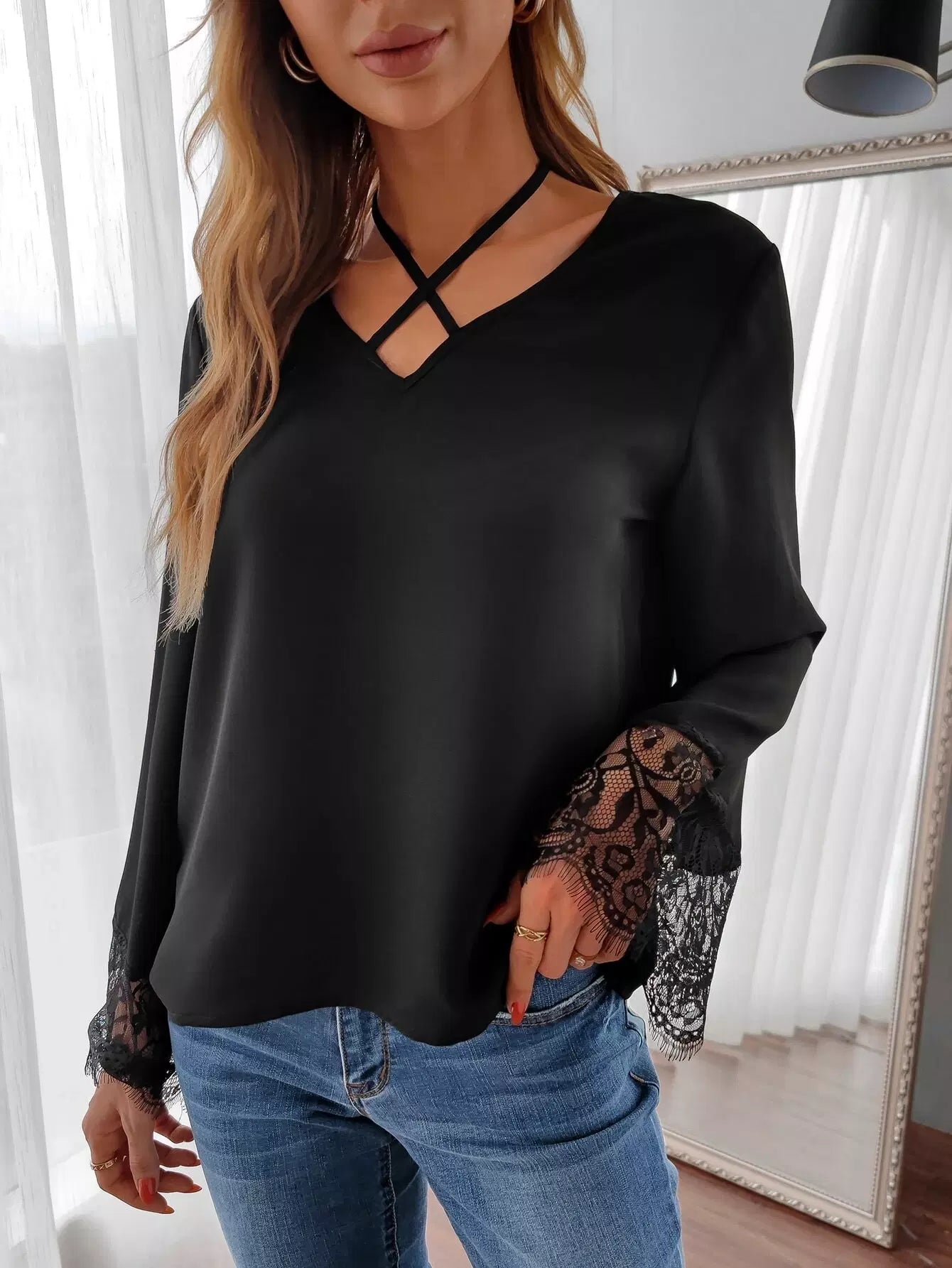 Criss Cross Flounce Sleeve Lace Cuff Blouse