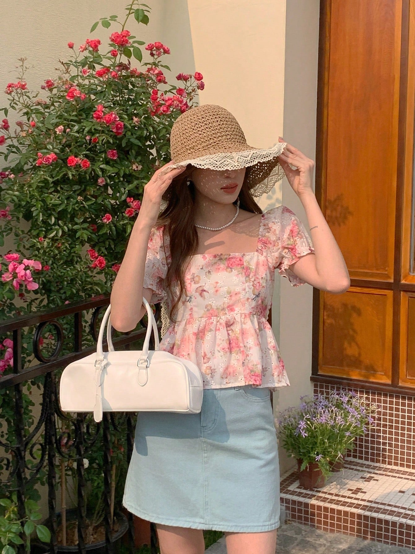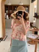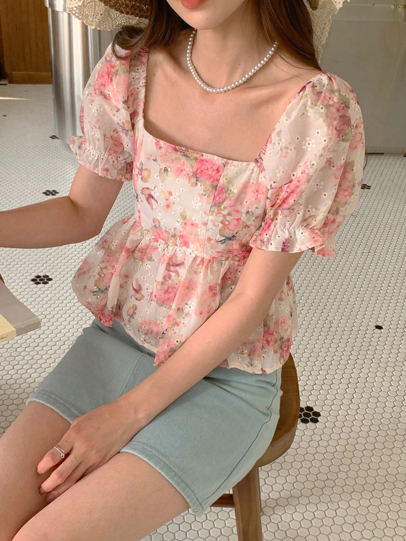 women DAZY Women's All-Over Floral Print Casual Short Sleeve Shirt