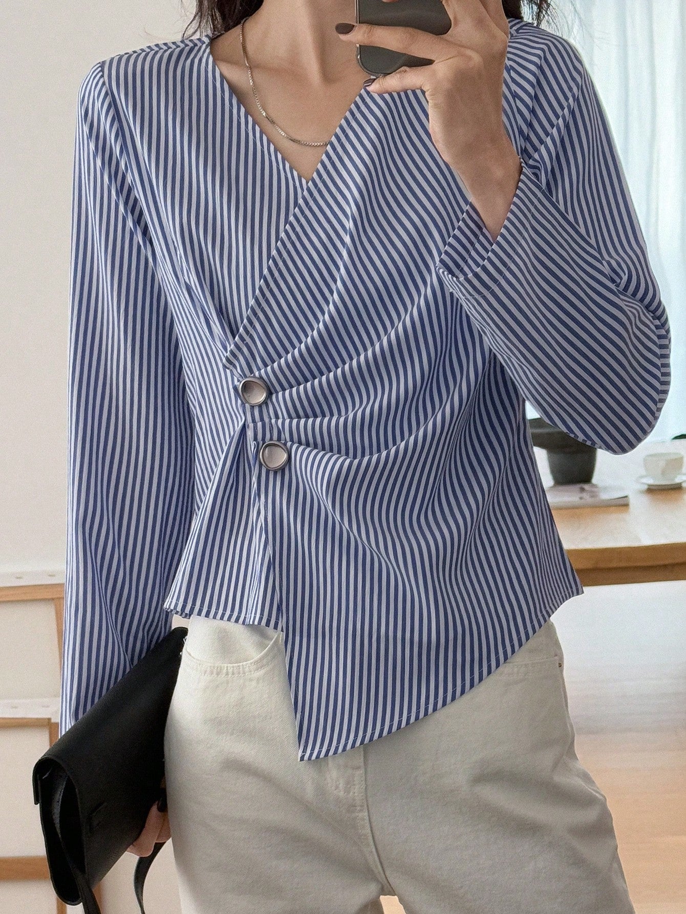 DAZY Women's Striped Waist Cinching Long Sleeve Blouse, Latest Summer Design,Fall Clothes