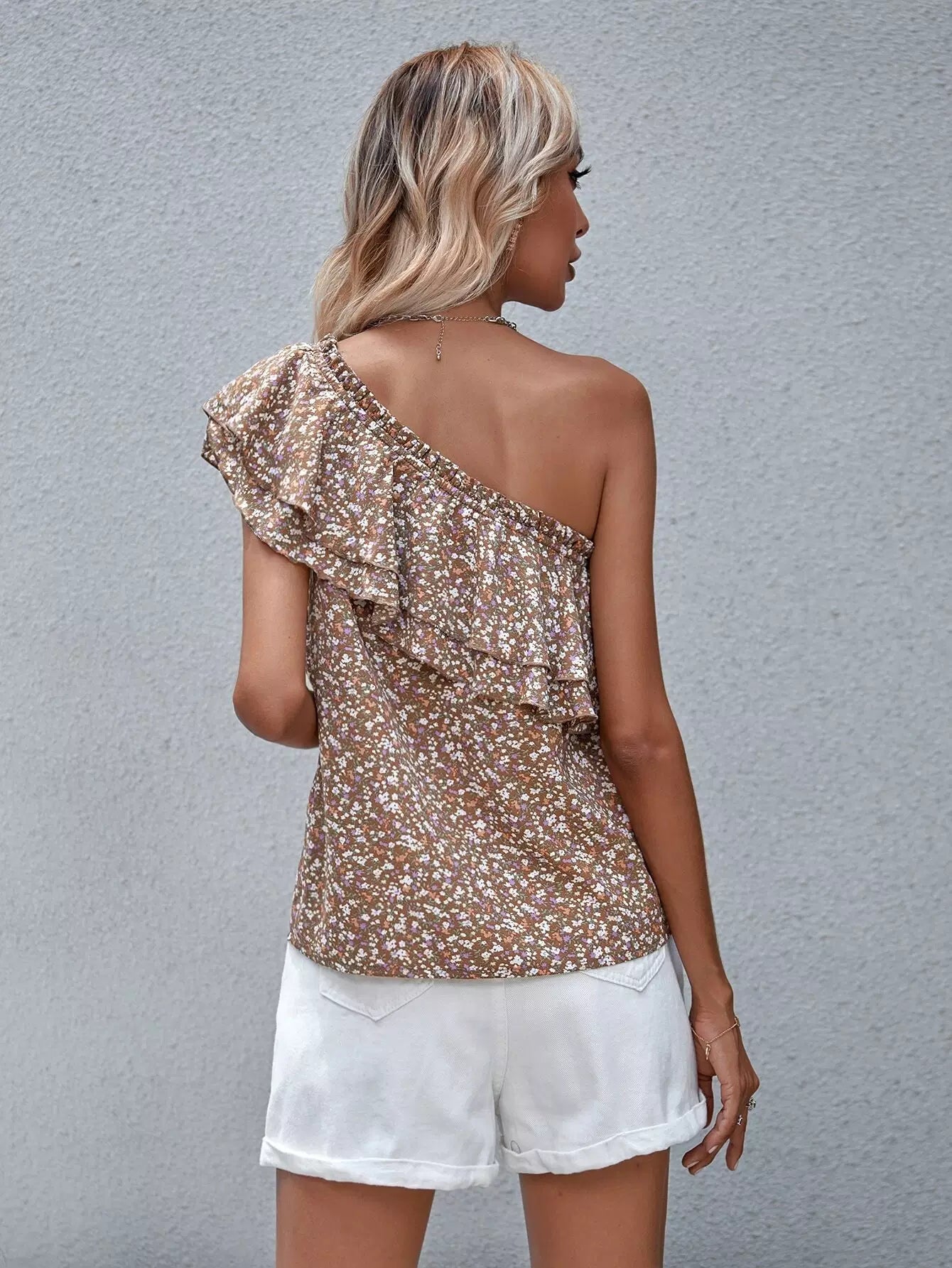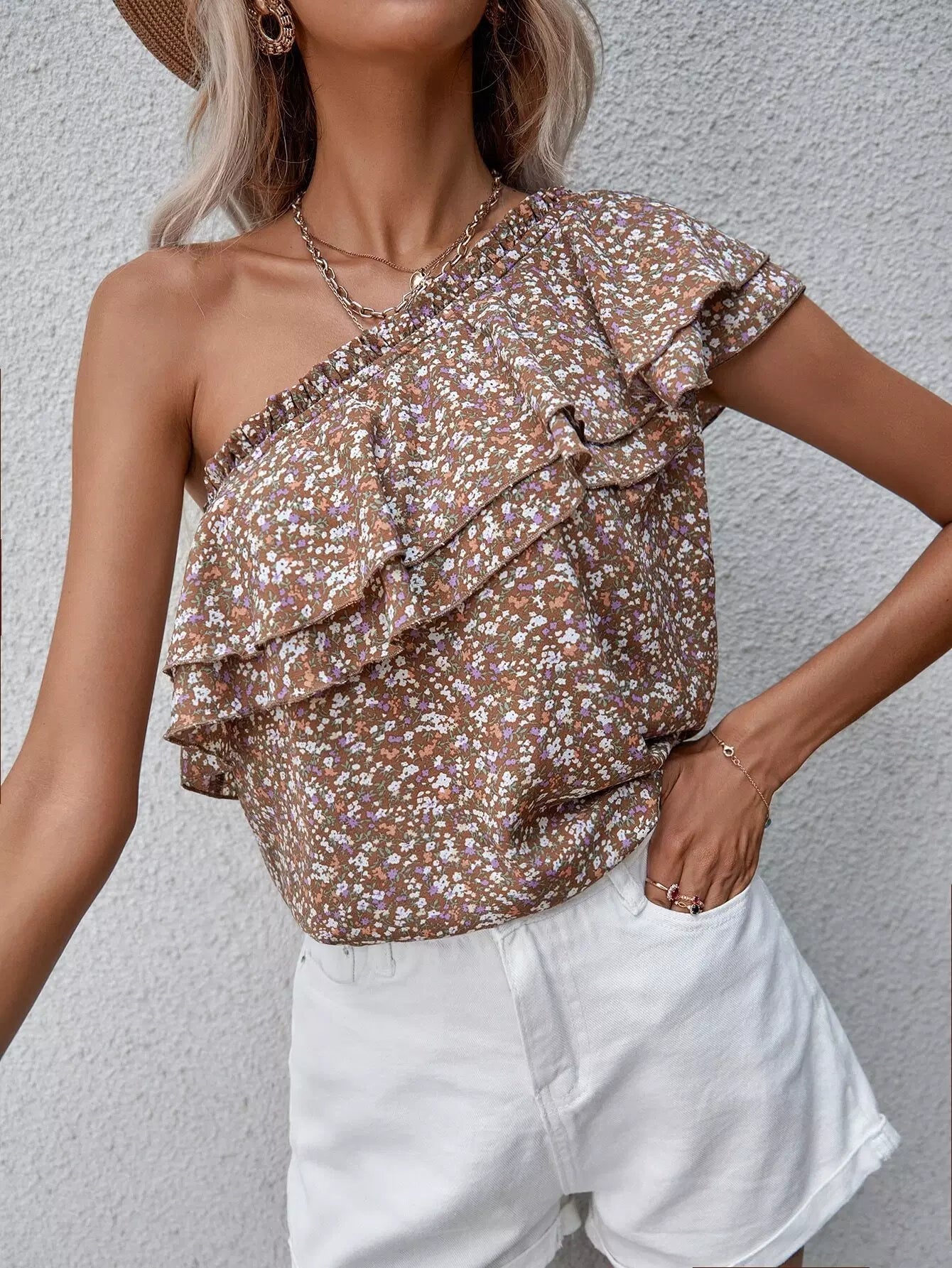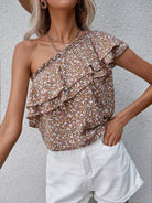 Ditsy Floral Layered One Shoulder Blouse