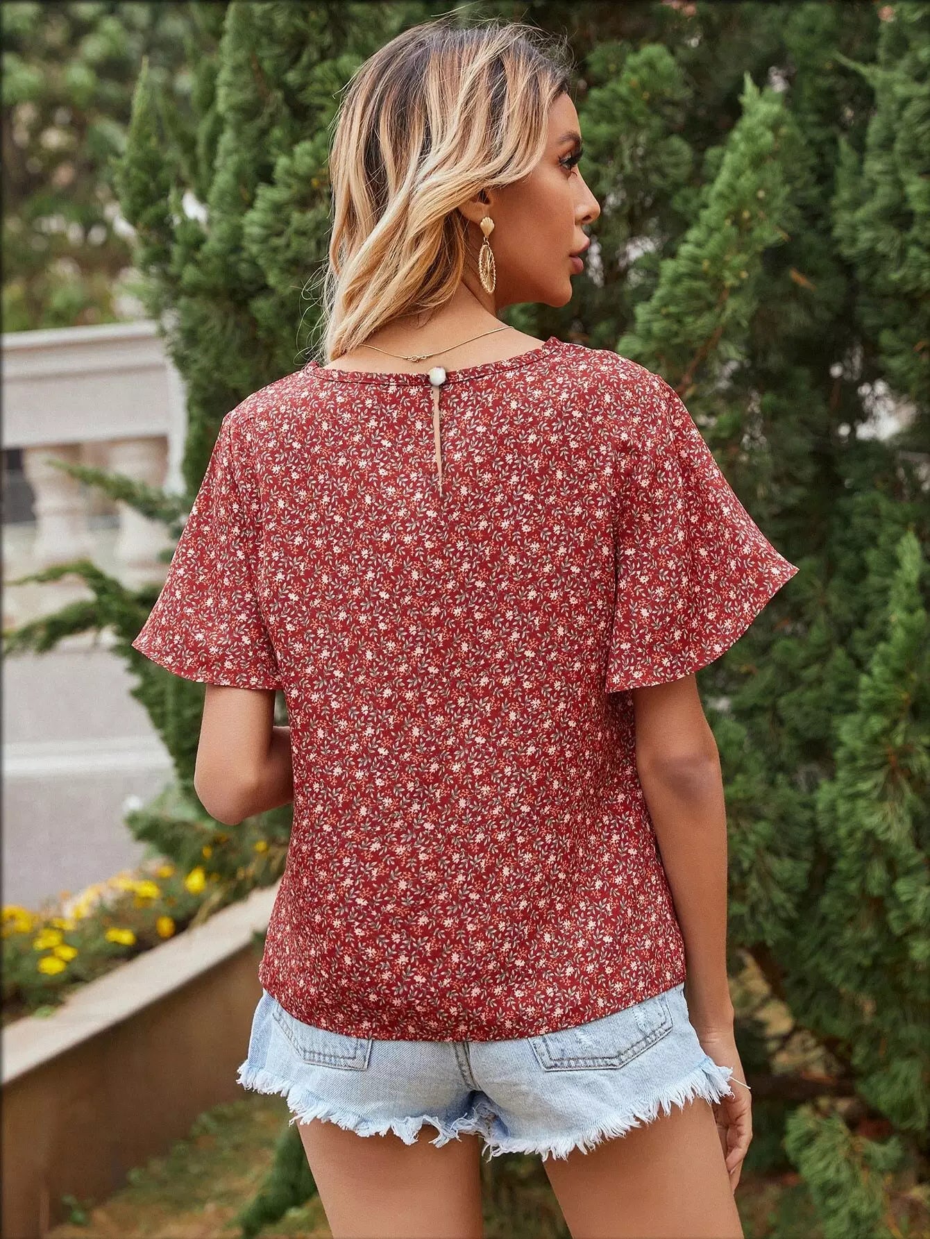Ditsy Floral Print Butterfly Sleeve Blouse