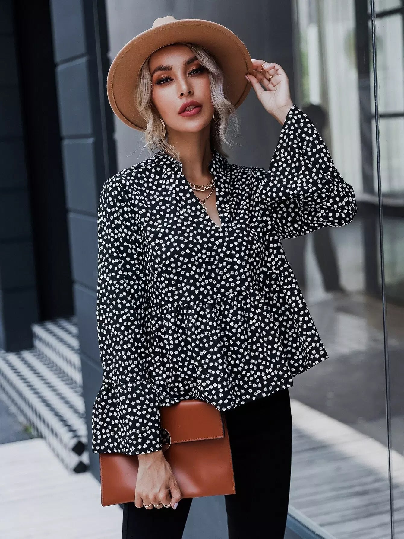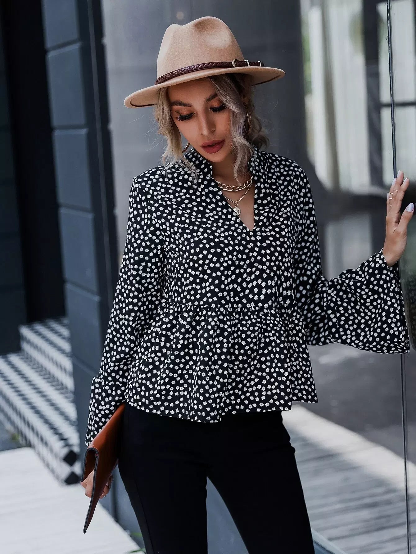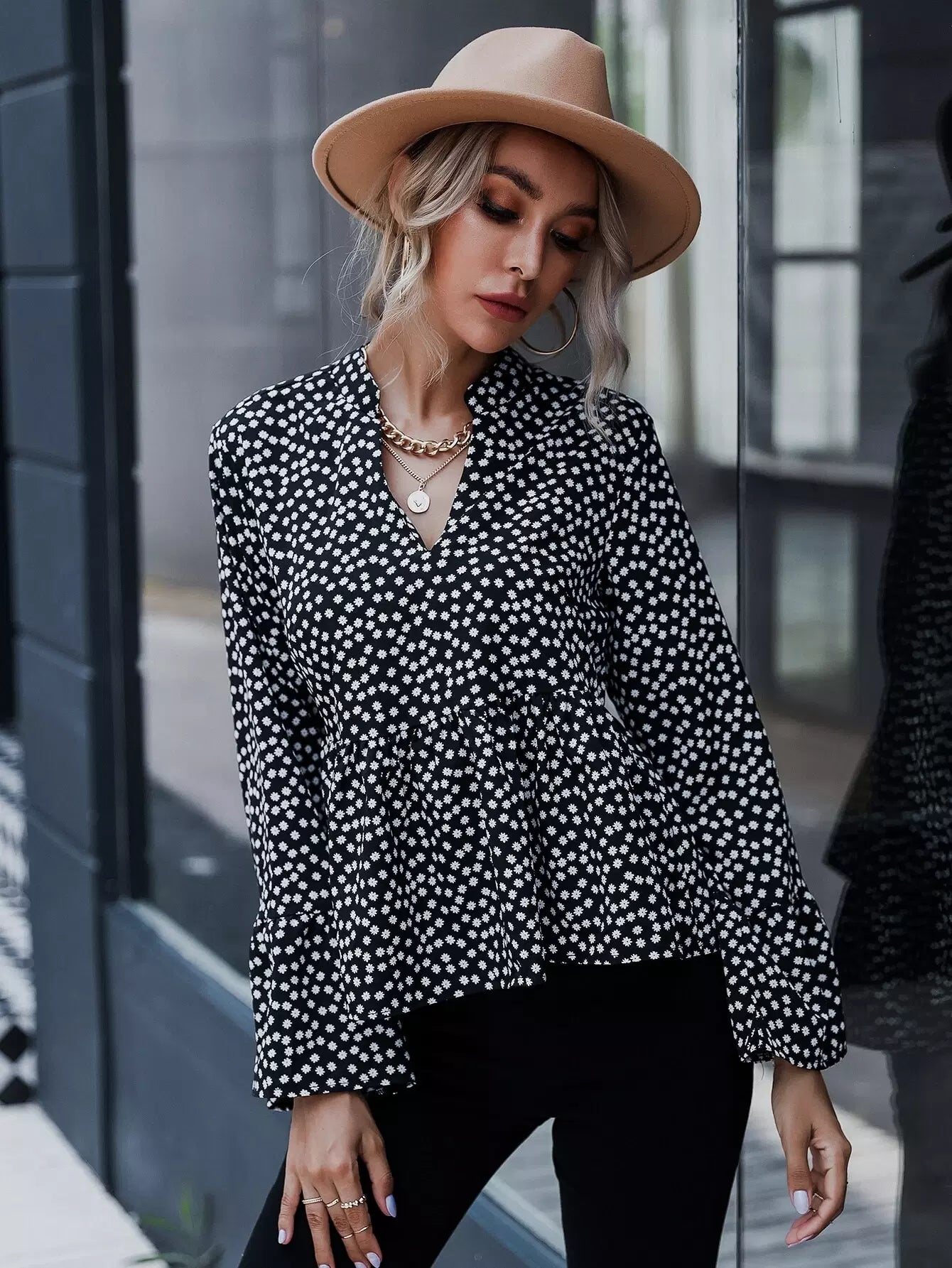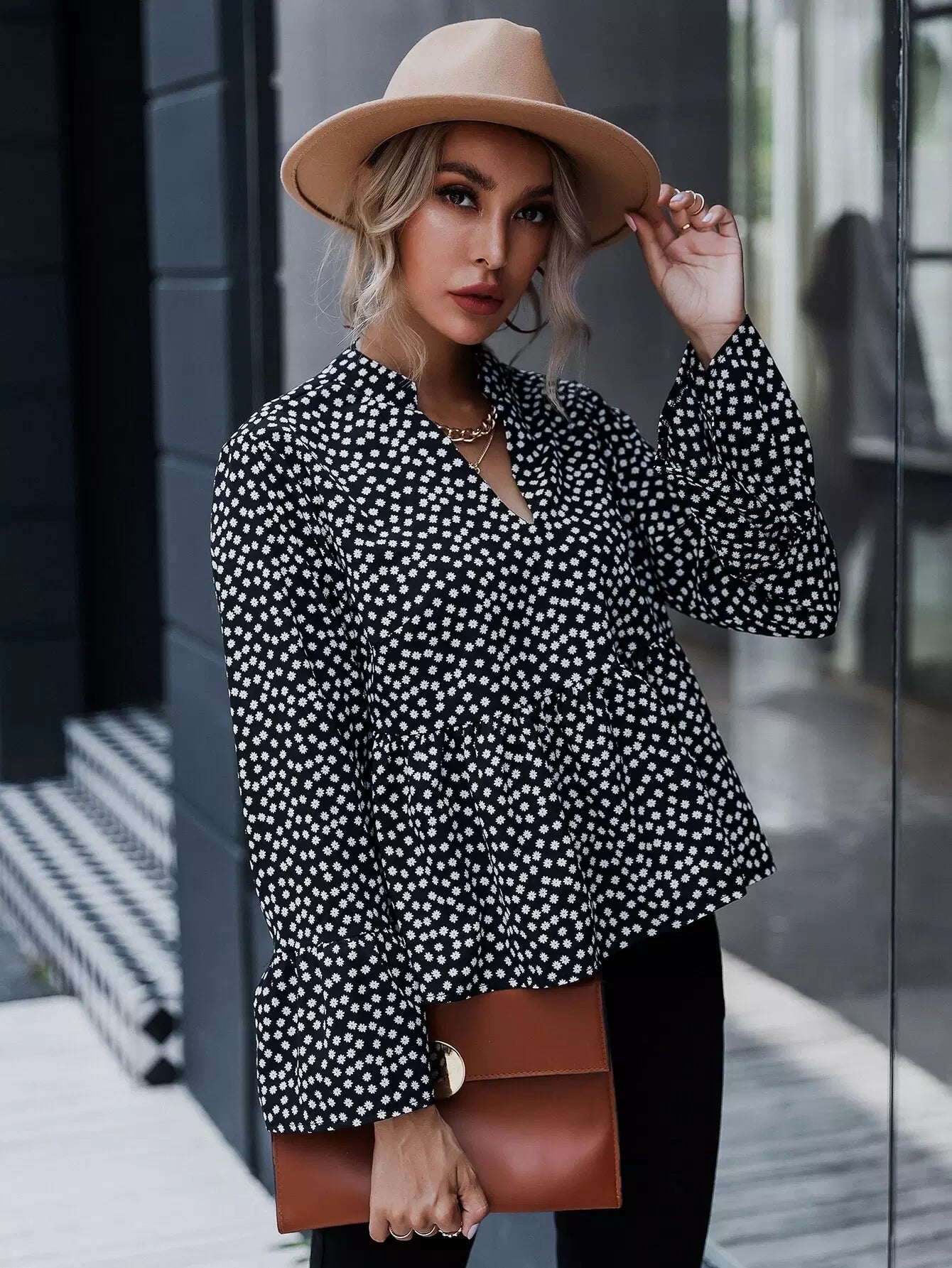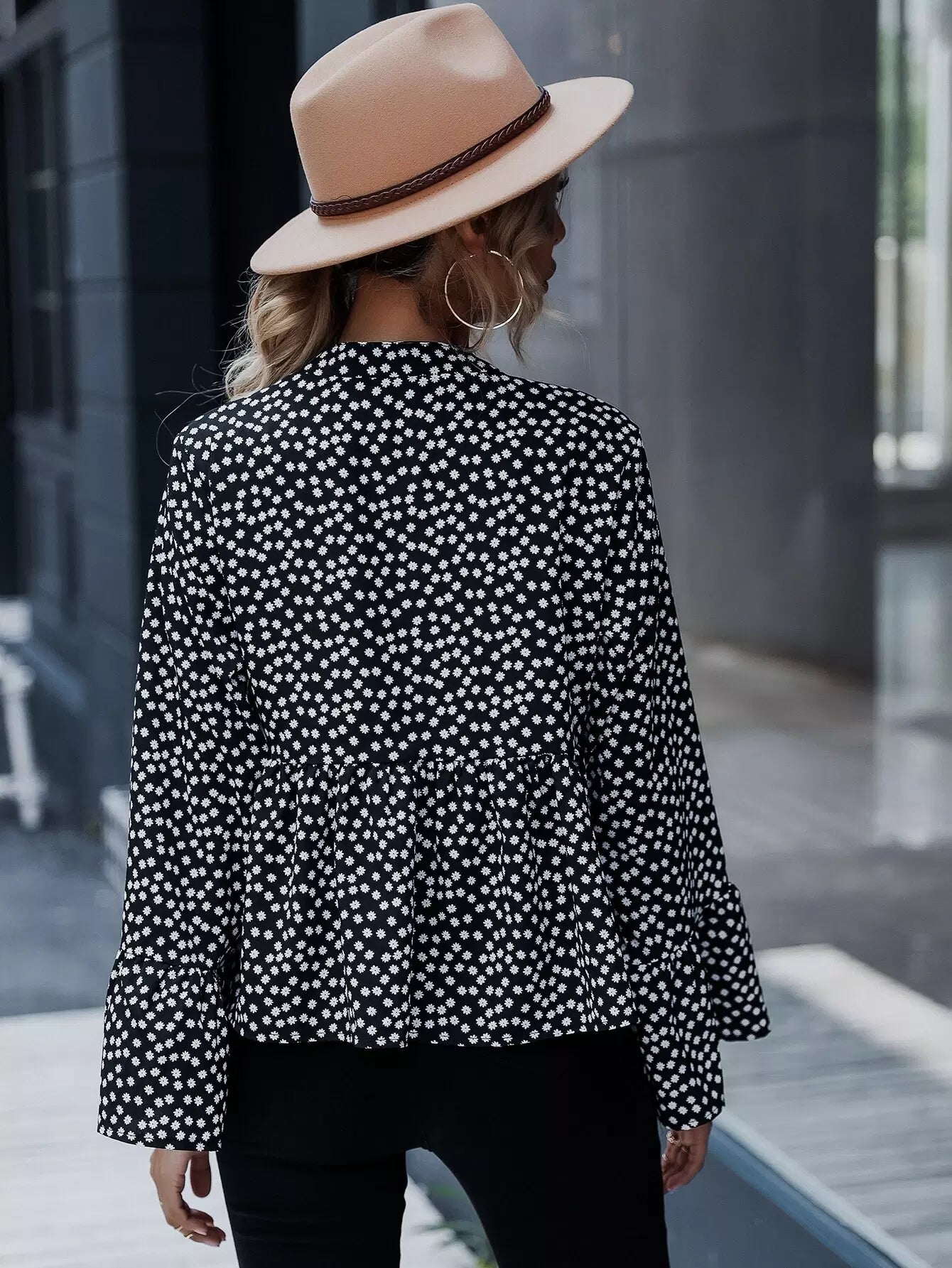 Ditsy Floral Print Peplum Top