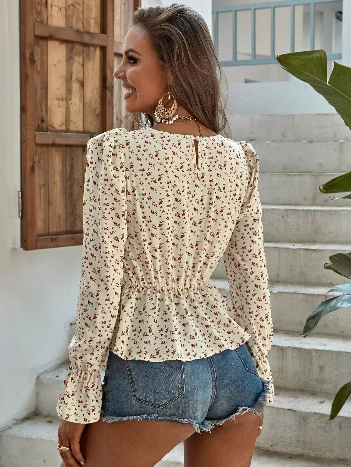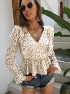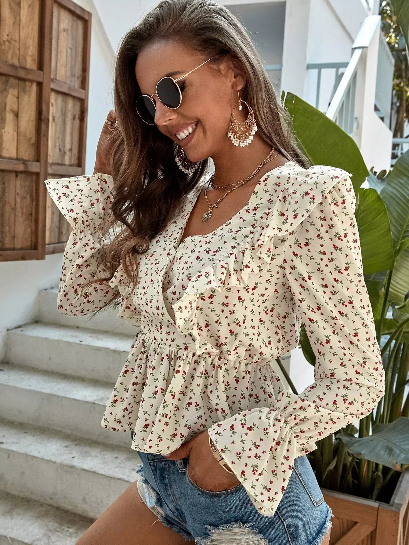 Ditsy Floral Ruffle Hem Surplice Blouse