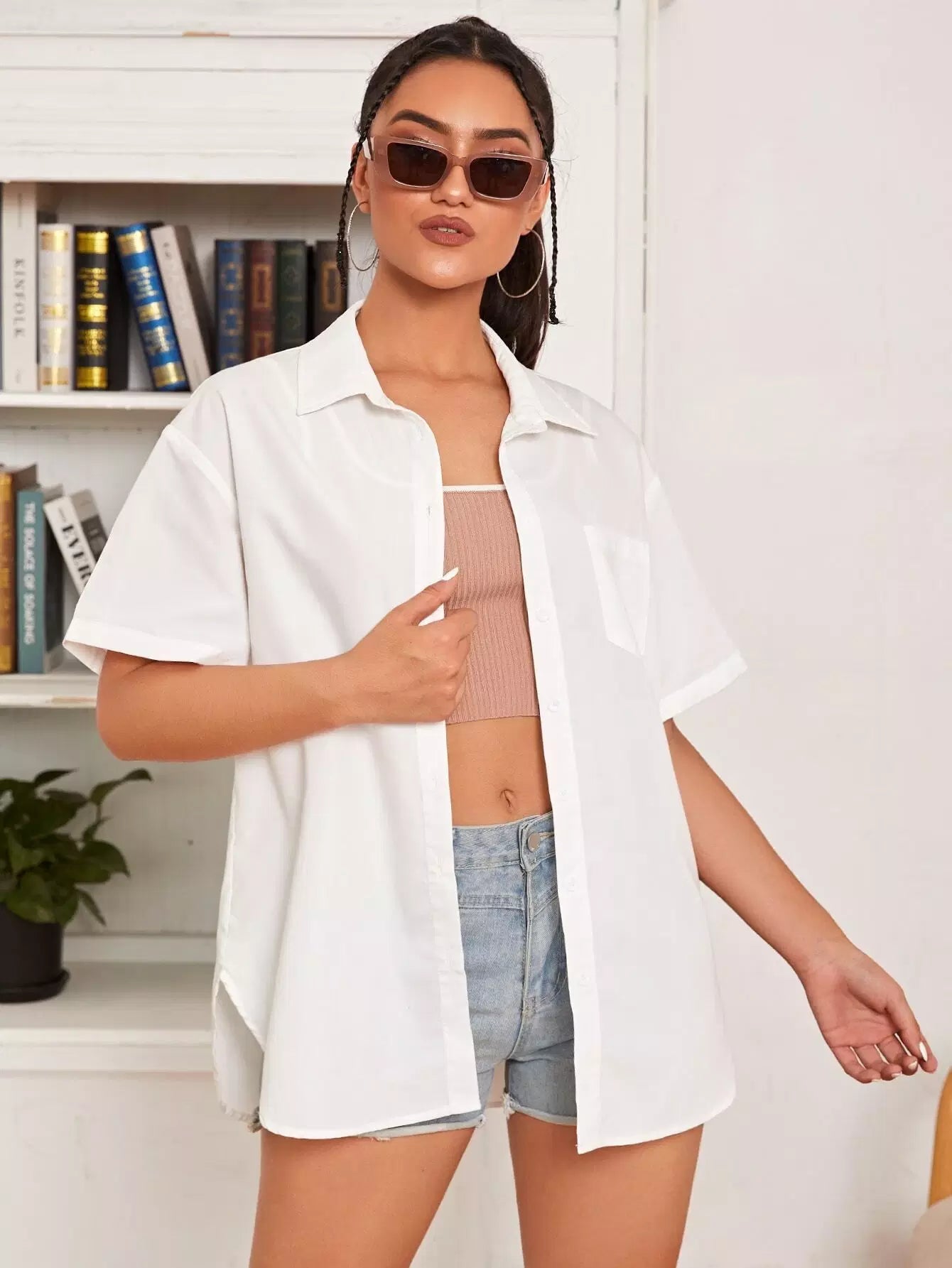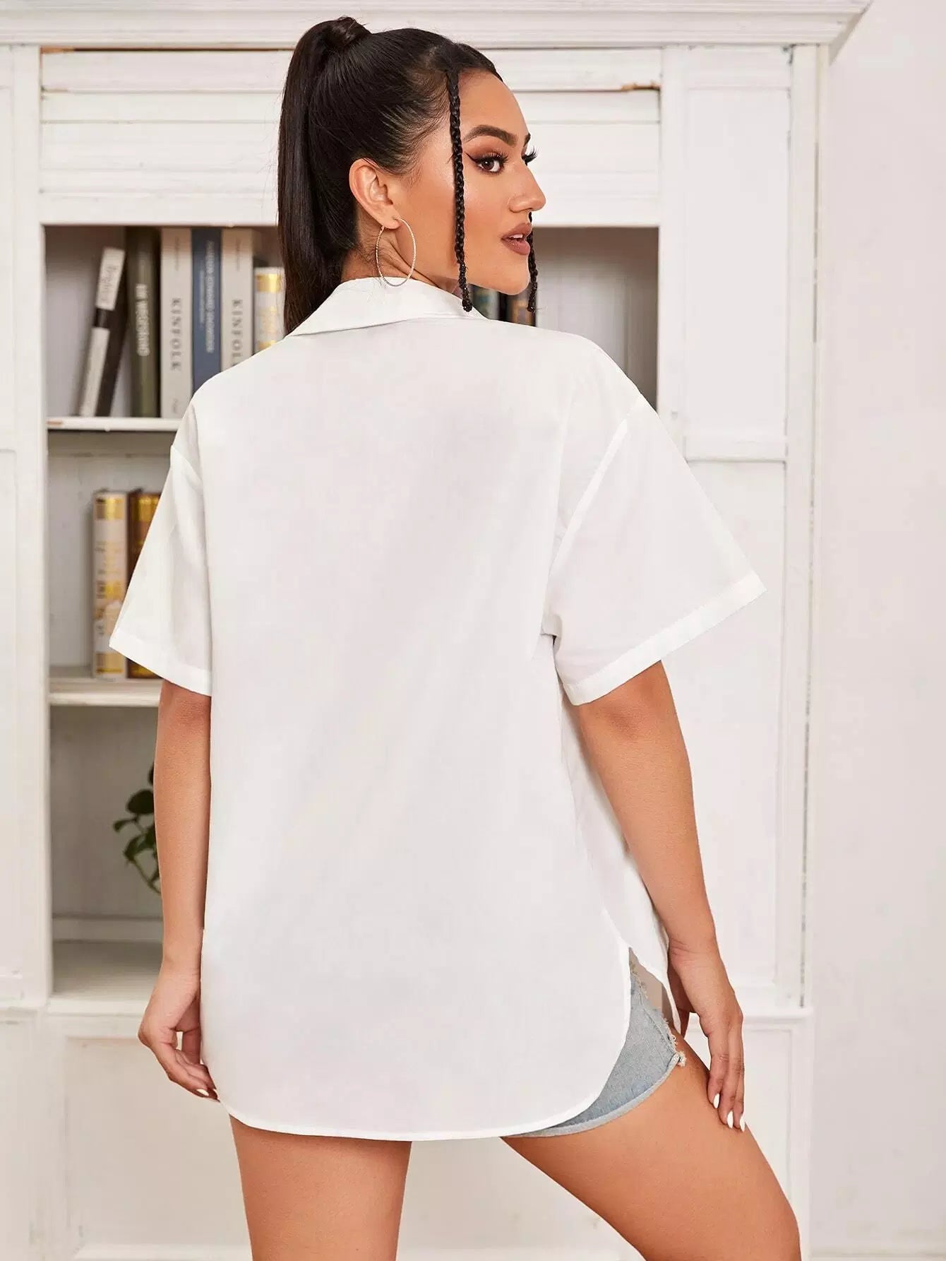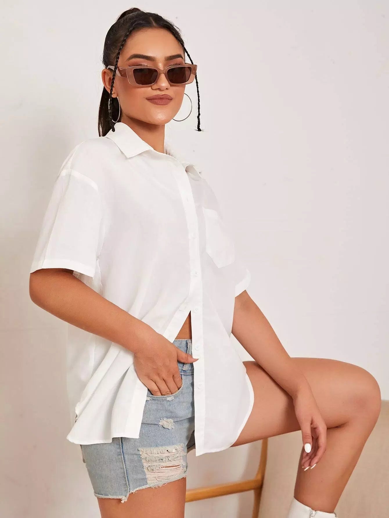 Women - Drop Shoulder Patch Pocket Solid Blouse