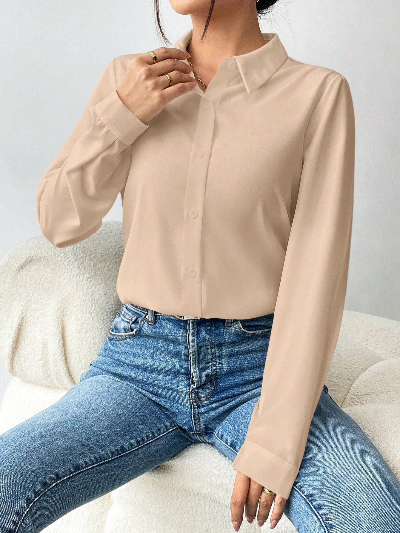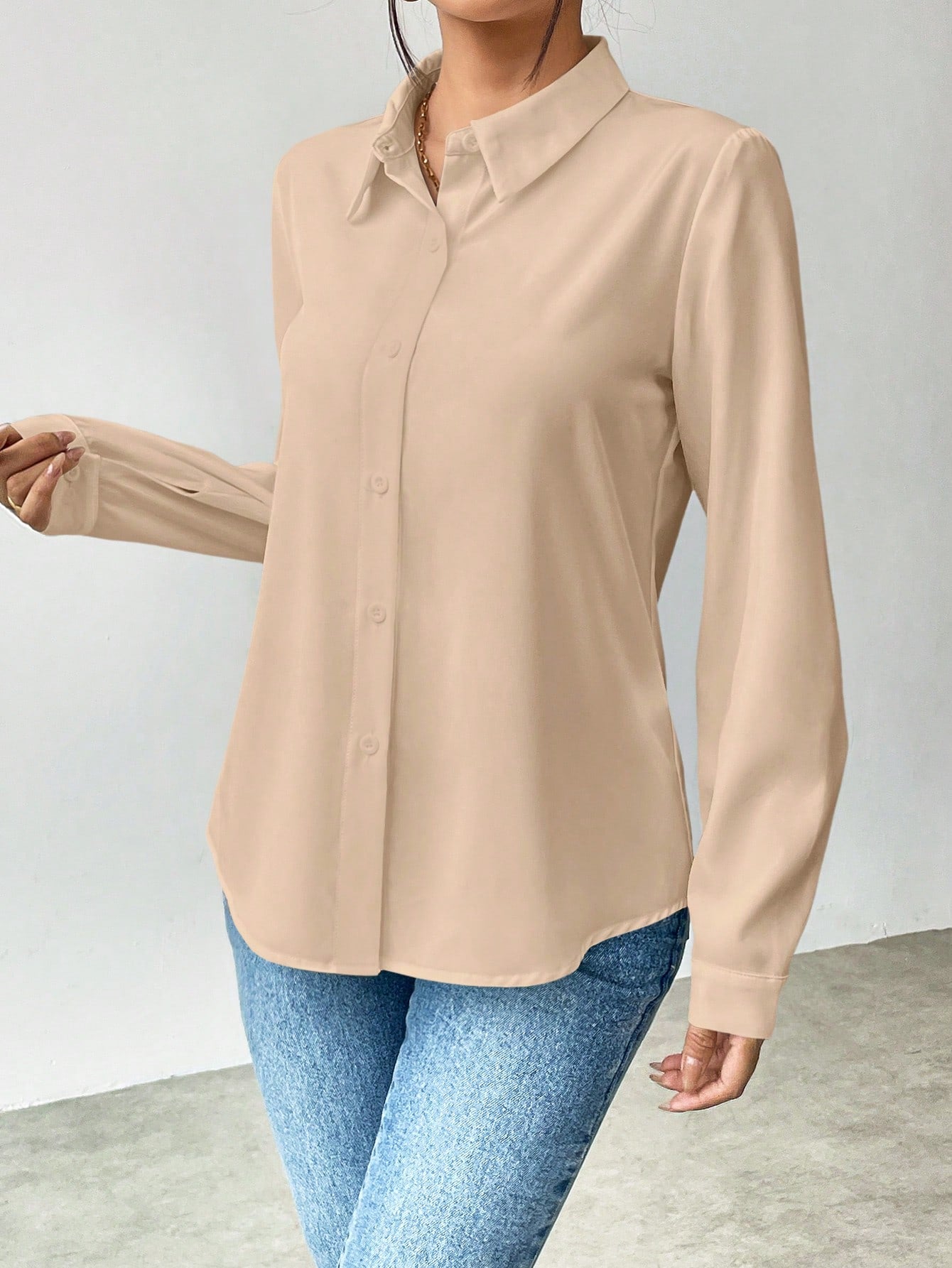 Elenzga Women Plain Casual Daily Simple Spring And Summer Shirt